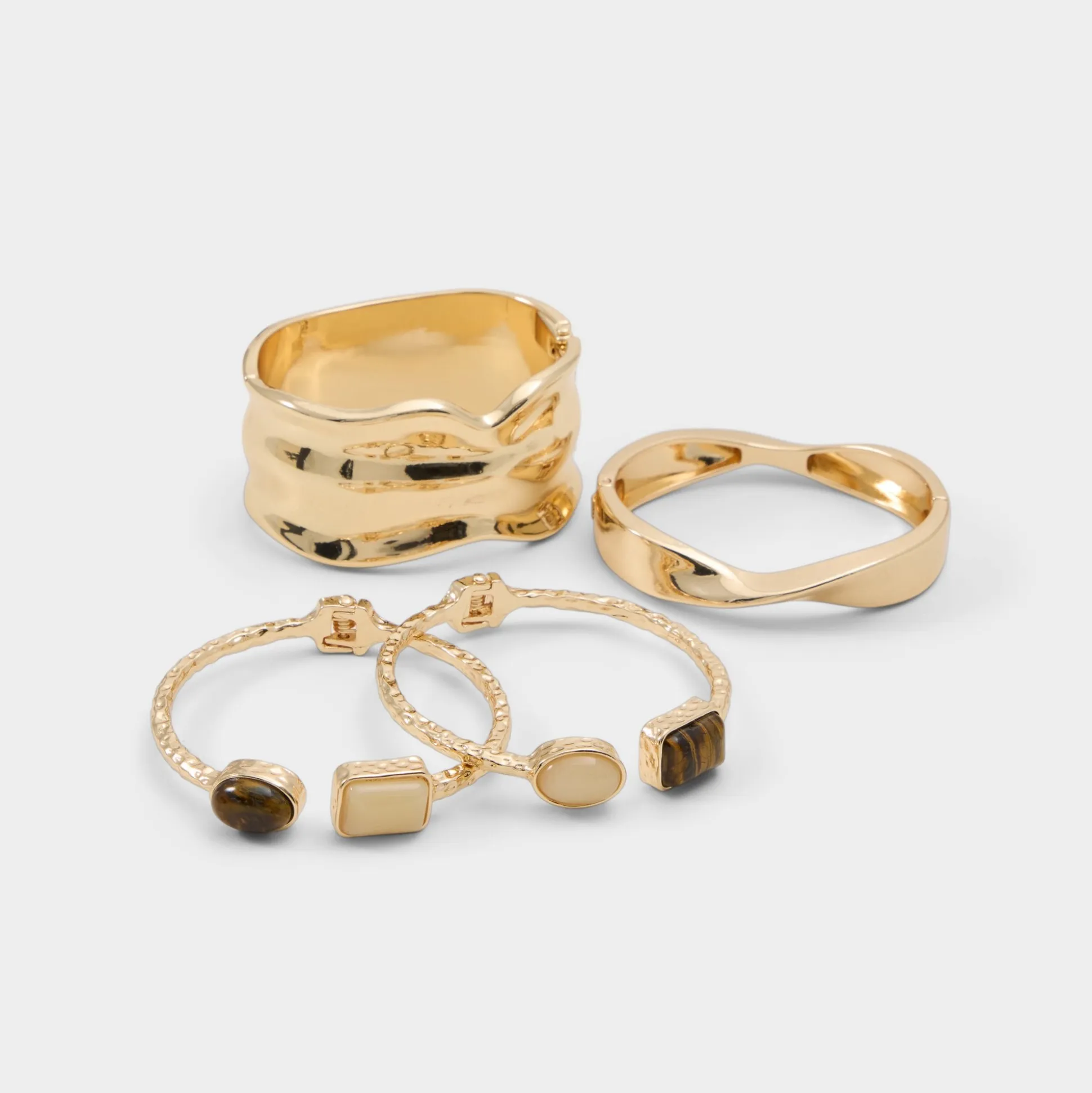 Escape into elegance with the Zaraya ring stack, your passport to effortless sophistication. Layer these gleaming gold-detailed rings adorned with shimmering stones for a look that captures the carefree spirit of sun-soaked getaways. Mix and match to create your perfect vacation aesthetic—whether you’re lounging beachside or dancing under the stars. Each piece catches the light beautifully, adding just the right touch of glamour to any resort ensemble.