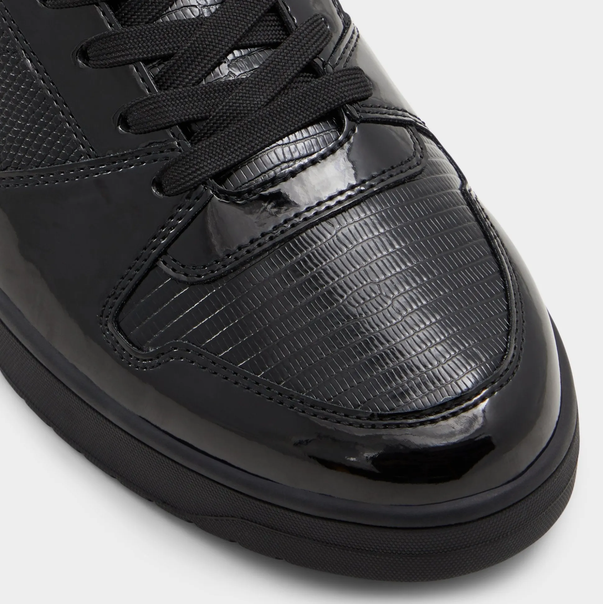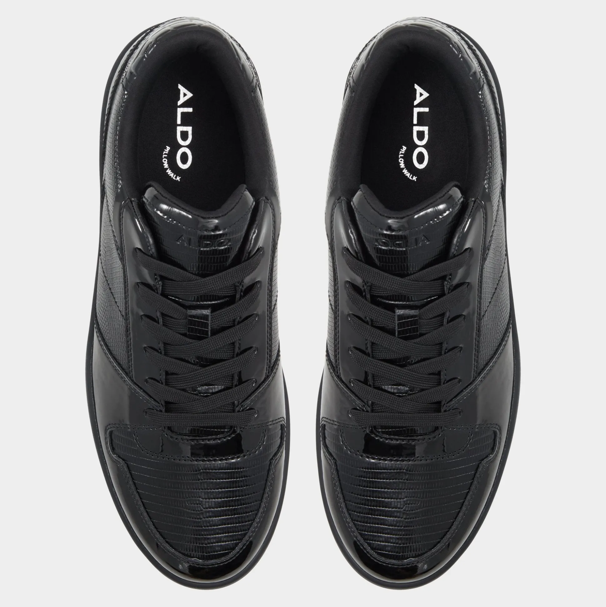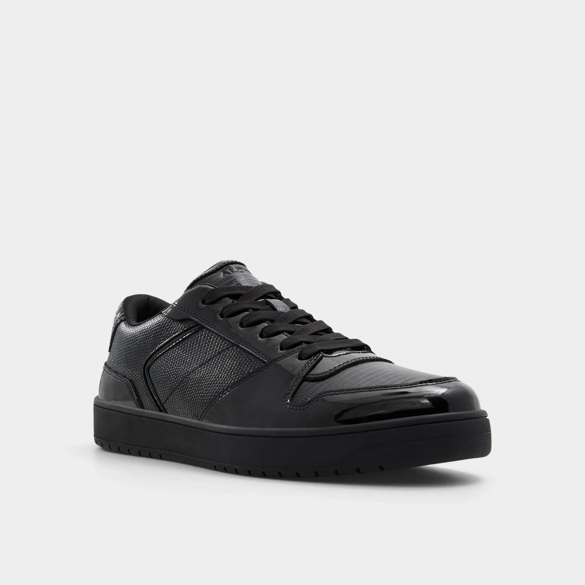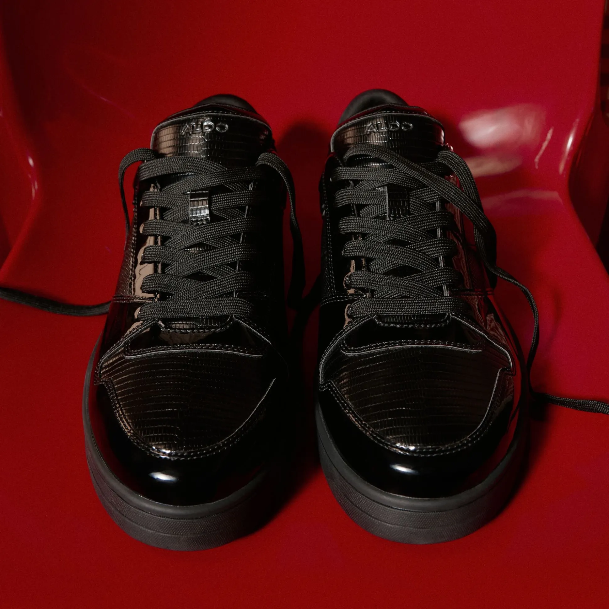Midnight-black panels shift between gloss and grain textures in this low-top, with a striking design element that elevates the look while a cupsole steadies steps from commutes to skate sessions. Anchor cargos at galleries or charcoal joggers on flights—the tonal finish whispers cool confidence for city days and weekend getaways.