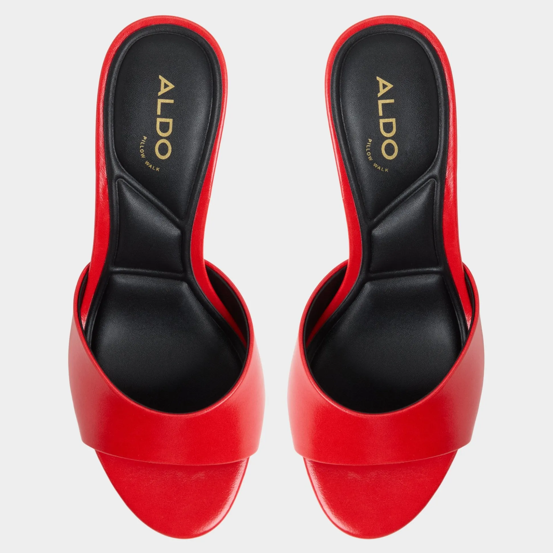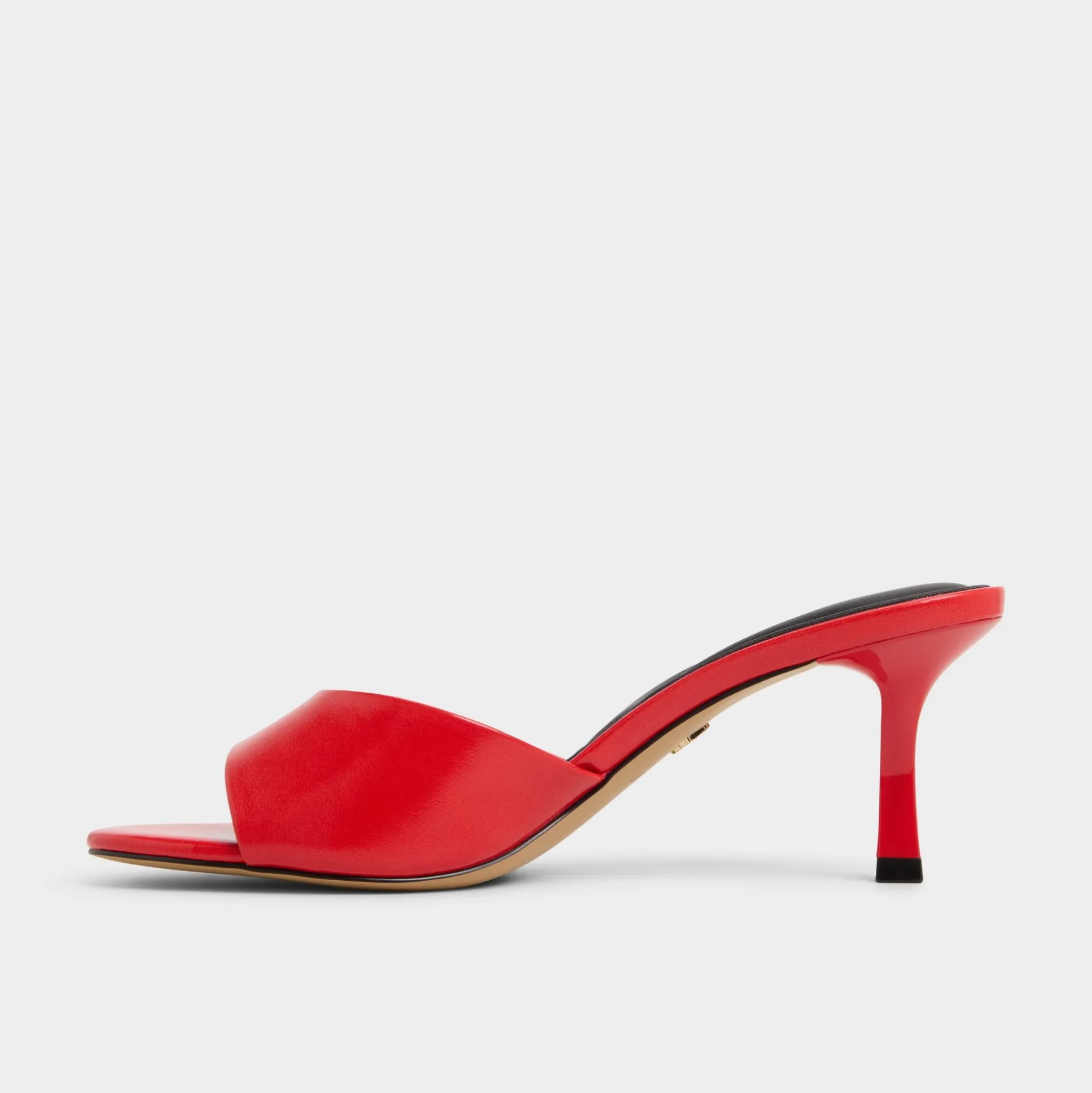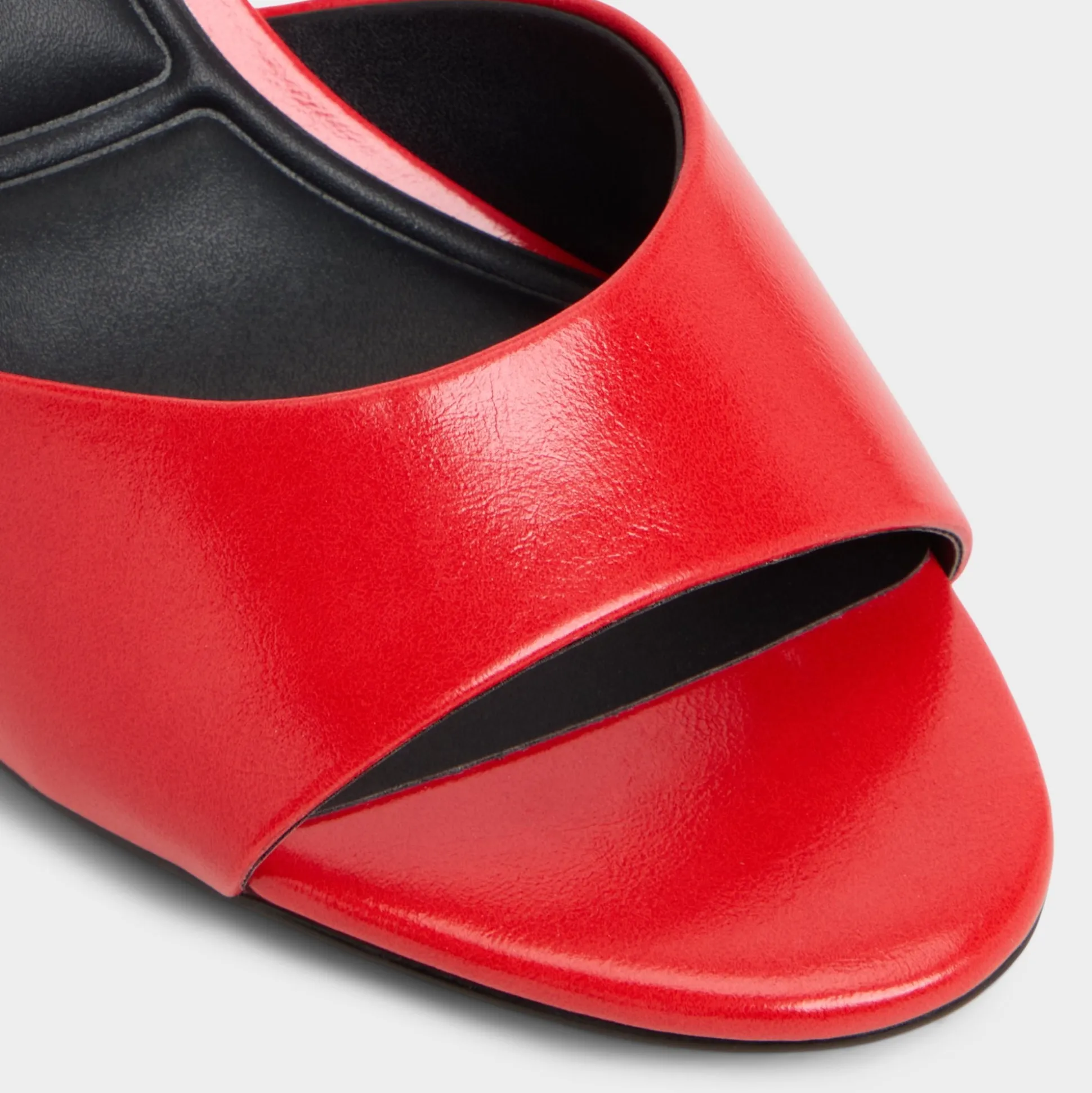 Fire-red leather curves across the foot, meeting a cushioned square footbed and a poised stiletto heel that turns each step into a confident flicker of energy. Pair with cropped suiting for gallery openings, or slide on with a slinky slip dress when late-night tapas calls for effortless allure.
