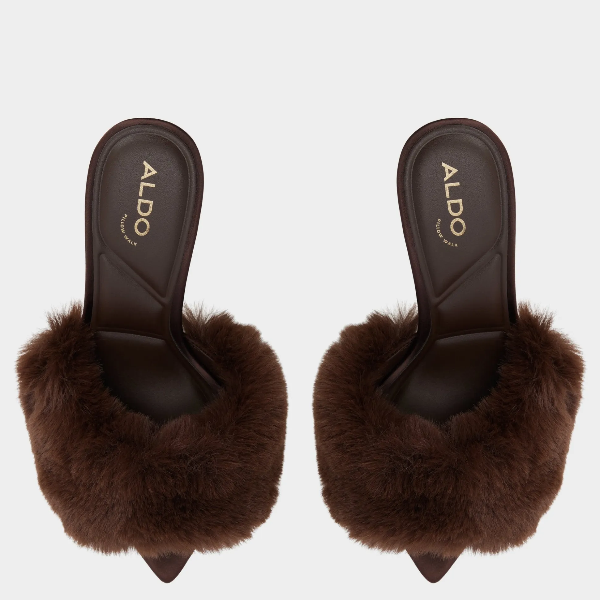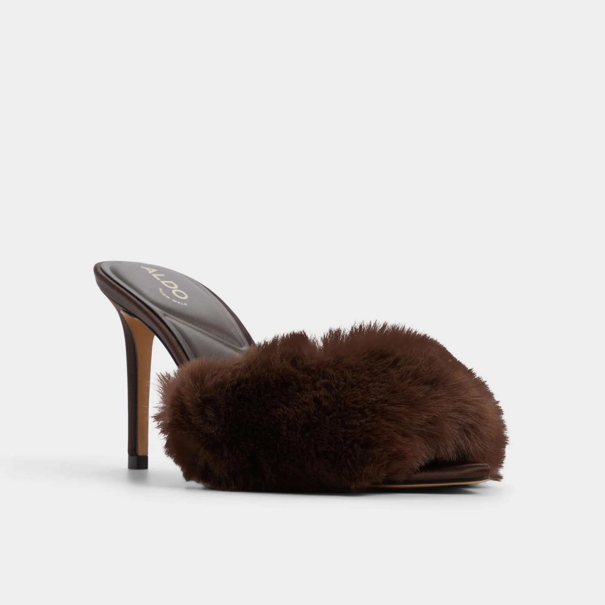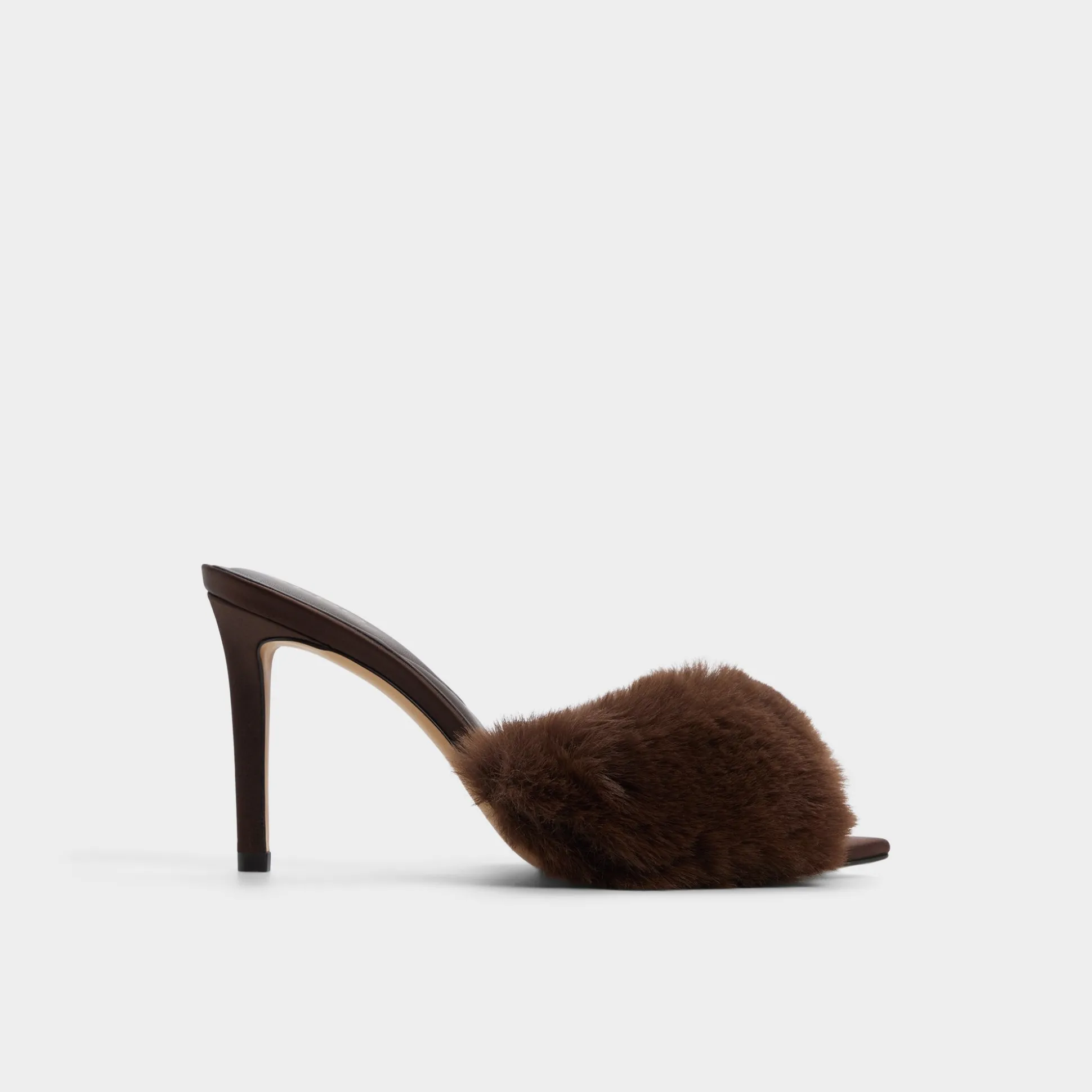 Faux fur covers the vamp of this sleek stiletto mule, offering movie-night softness while the sculpted heel provides instant elongation, making slip-ons feel like a private red-carpet moment. Pair with tailored trousers for rooftop martinis, or switch to a slinky slip dress when house parties call for photo-booth glamour.