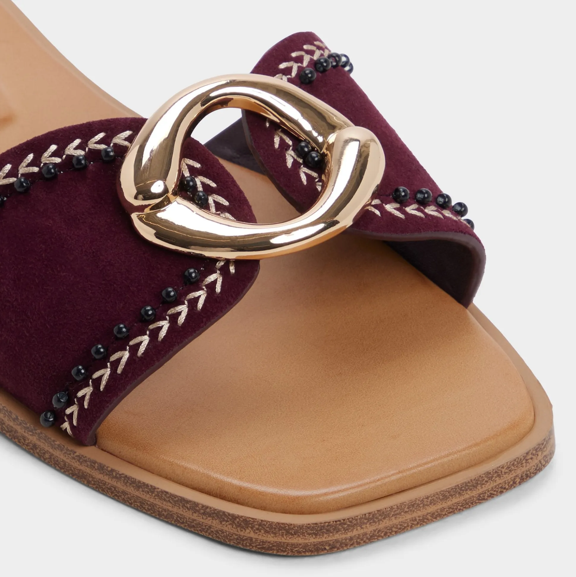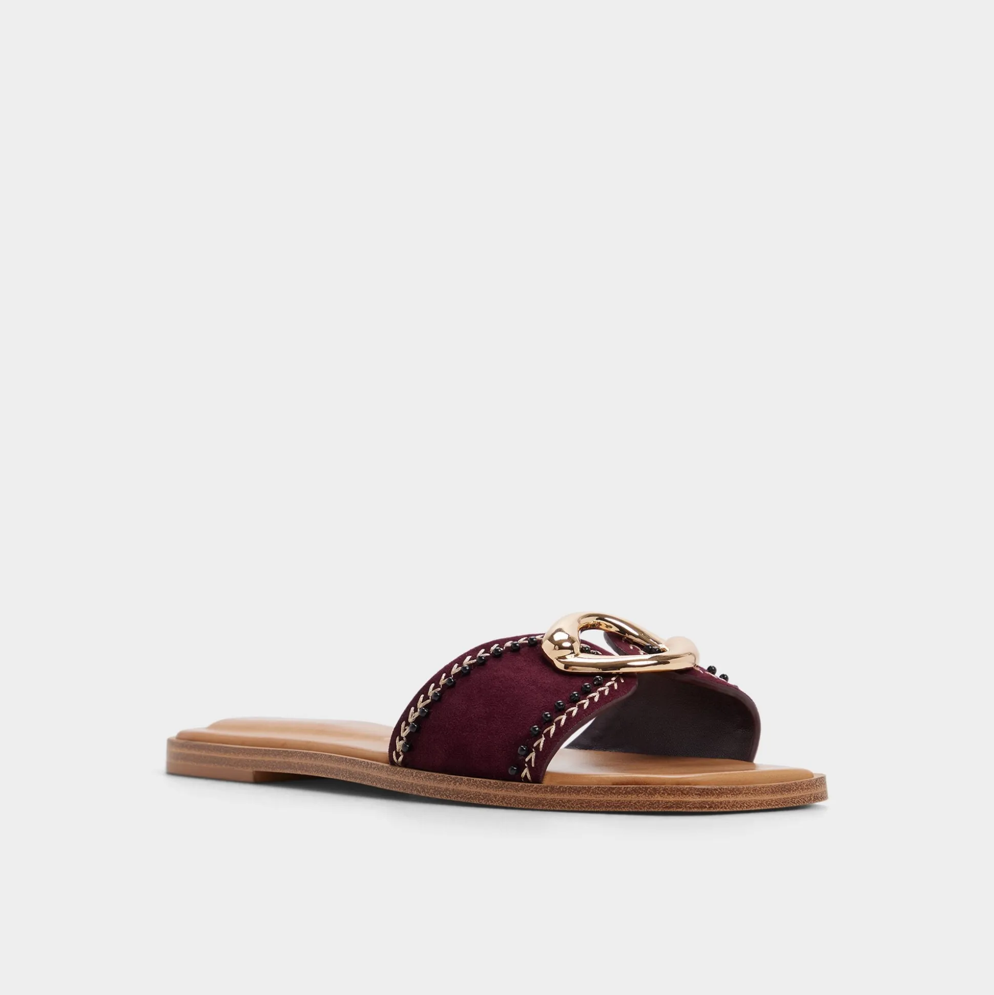 The Biggin flat sandal in rich burgundy pairs timeless style with practical comfort. Gold hardware adds a touch of polish, making it ideal for vacation days—from beach walks to casual dinners. Easy to pack, effortless to wear.