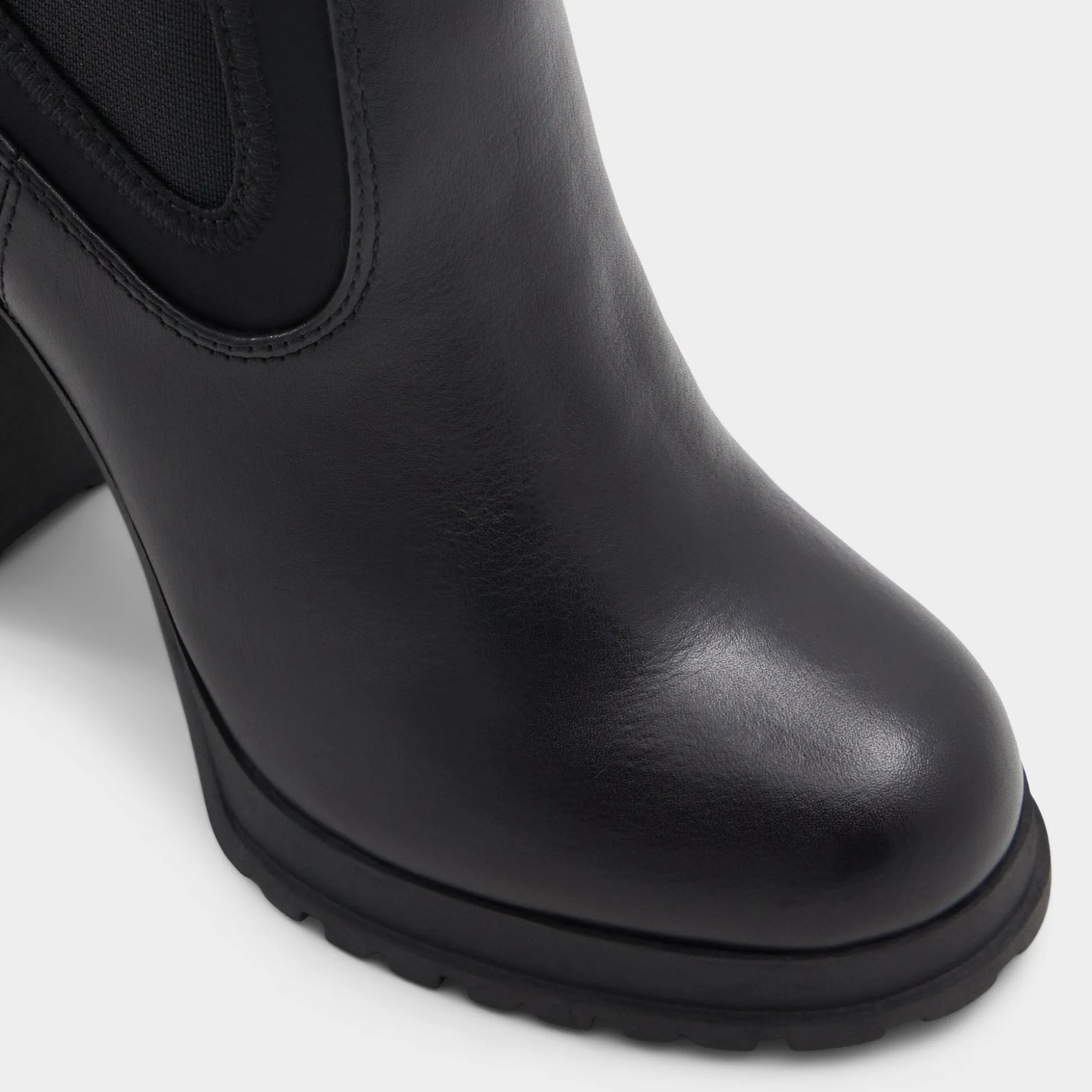 A sky-reaching block heel meets a grippy lug sole in this sleek leather Chelsea boot, giving city-stomping nerve while stretch side panels keep the pull-on fit smooth and drama-free. Pair with cropped flares for office brainstorms, or anchor a slip dress when after-dark concerts call for extra edge.