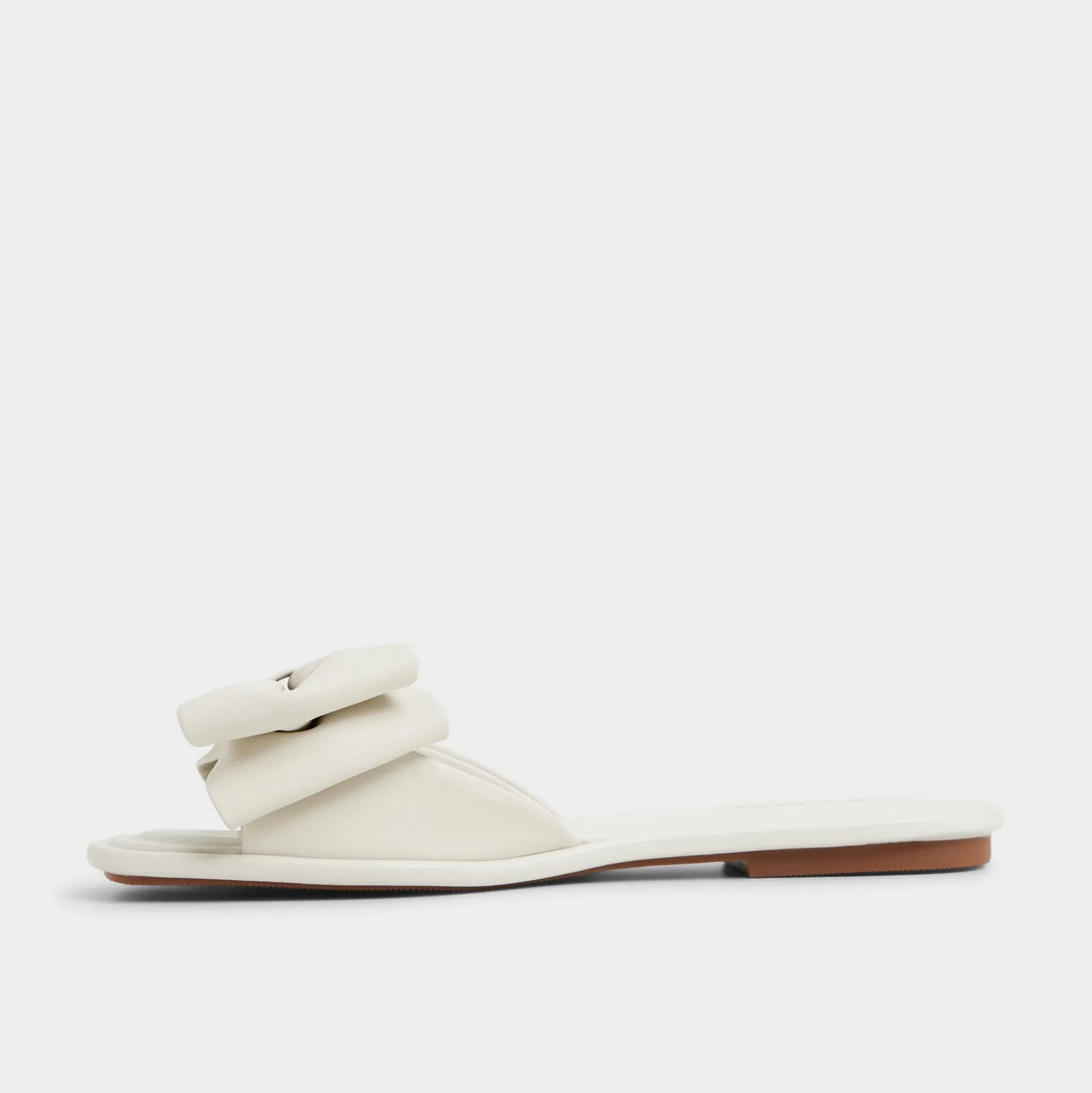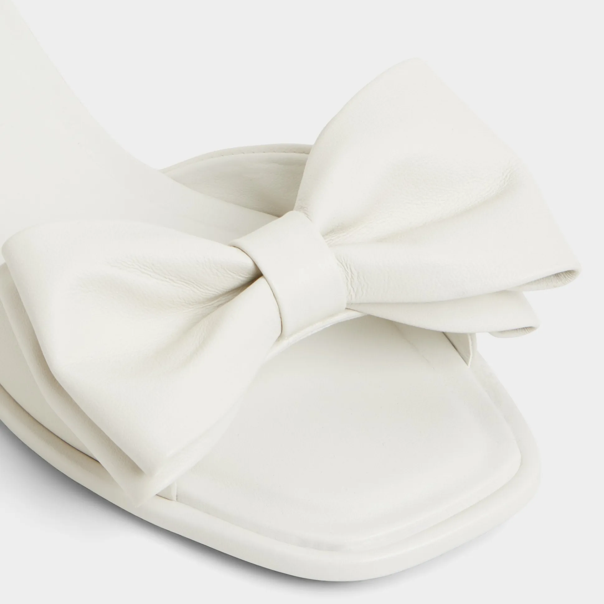 Cloud-soft leather slide with a sculpted bow across the upper elevates a clean square-toe silhouette into a wearable moment of quiet, everyday confidence you reach for again and again. Pair with cropped denim for cafe runs, or ground a linen maxi for seaside dinners and moonlit strolls, making every step feel effortless and ready for anything.