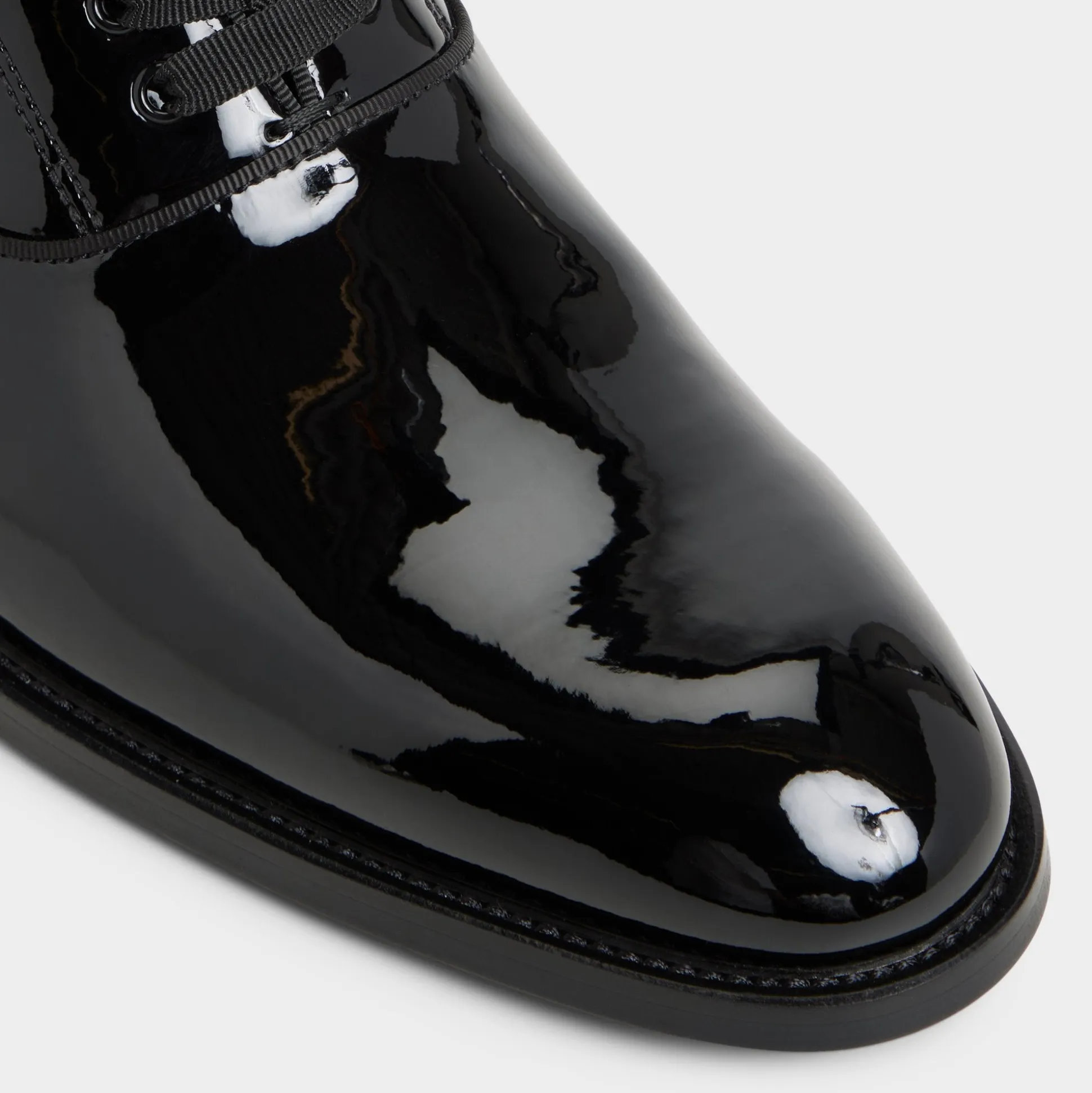 Glossy patent leather shapes this Oxford’s clean silhouette, pairing an almond toe with a supple sole that moves with every step, lending street-smart polish to workdays and after-hours alike. Team it with charcoal tailoring for client dinners, or dress it with dark wool trousers for gala nights—shine speaks volumes.