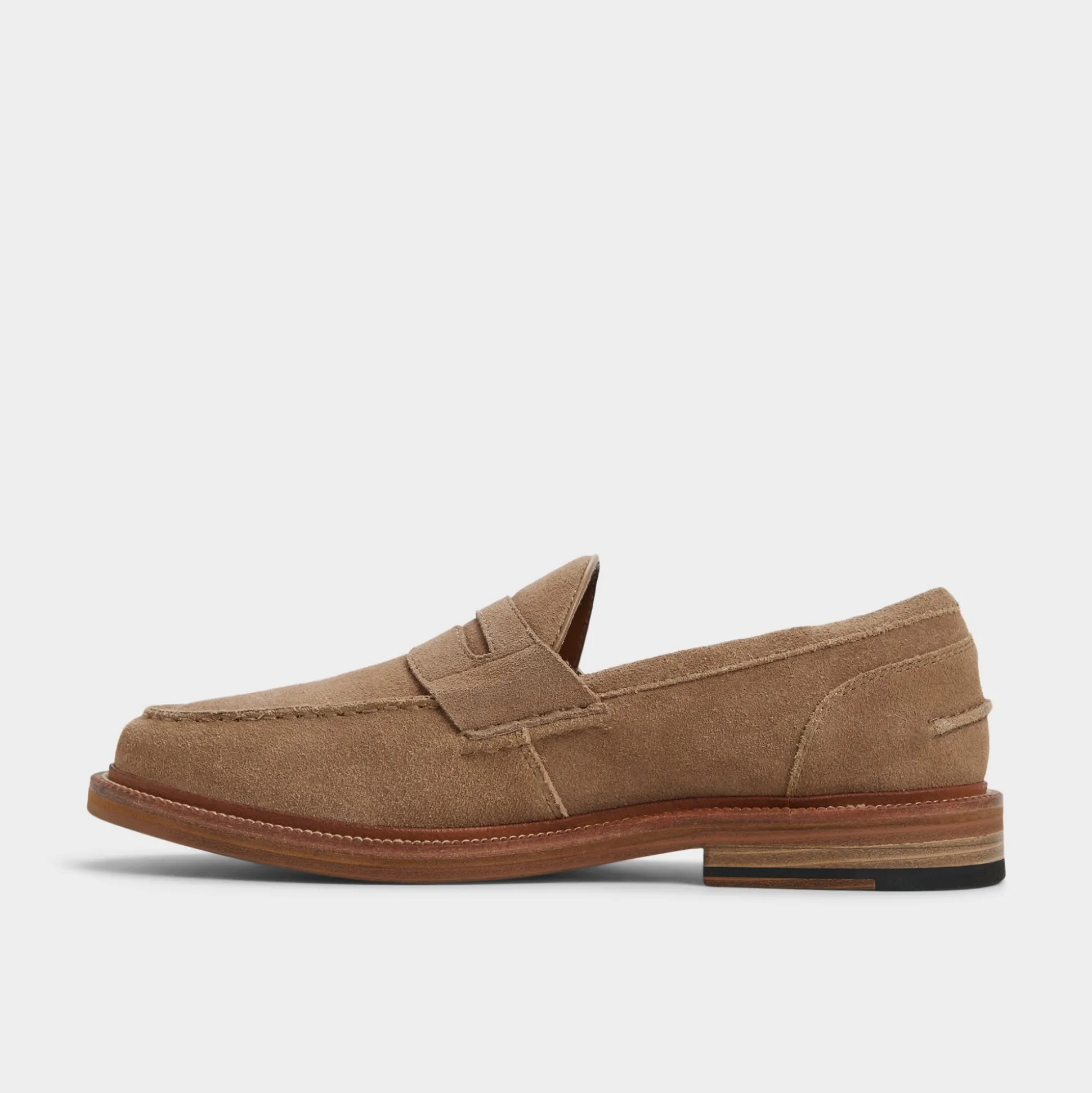 Buttery beige suede meets a smooth leather sole for laid-back luxury in this penny loafer, with moc stitching and a gently stacked heel providing comfort from the get-go. Pair with slim khaki chinos for terrace lunches or dress up a navy suit for client meetings-the subtle tone ensures every step is thoughtful.