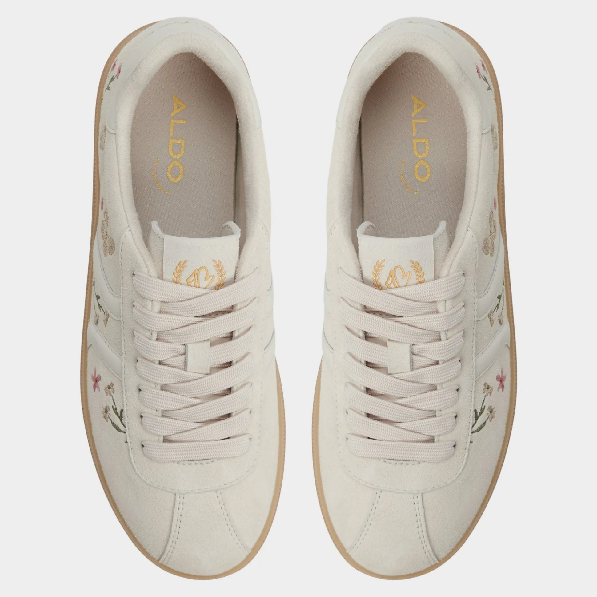 Garden-party embroidery dances across supple leather on a retro cup-sole sneaker, while cloud-soft padding lets you glide through city doors and coffee runs with easy, confident steps from desk to dusk. Pair with cropped dungarees for weekend markets, or choose a flowy midi when patio brunch drifts toward twilight walks.