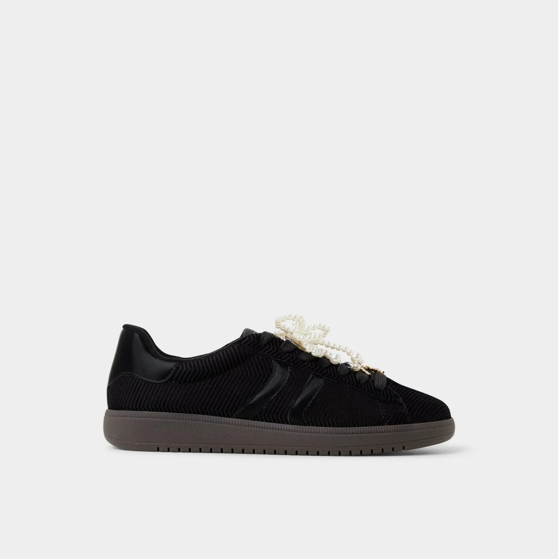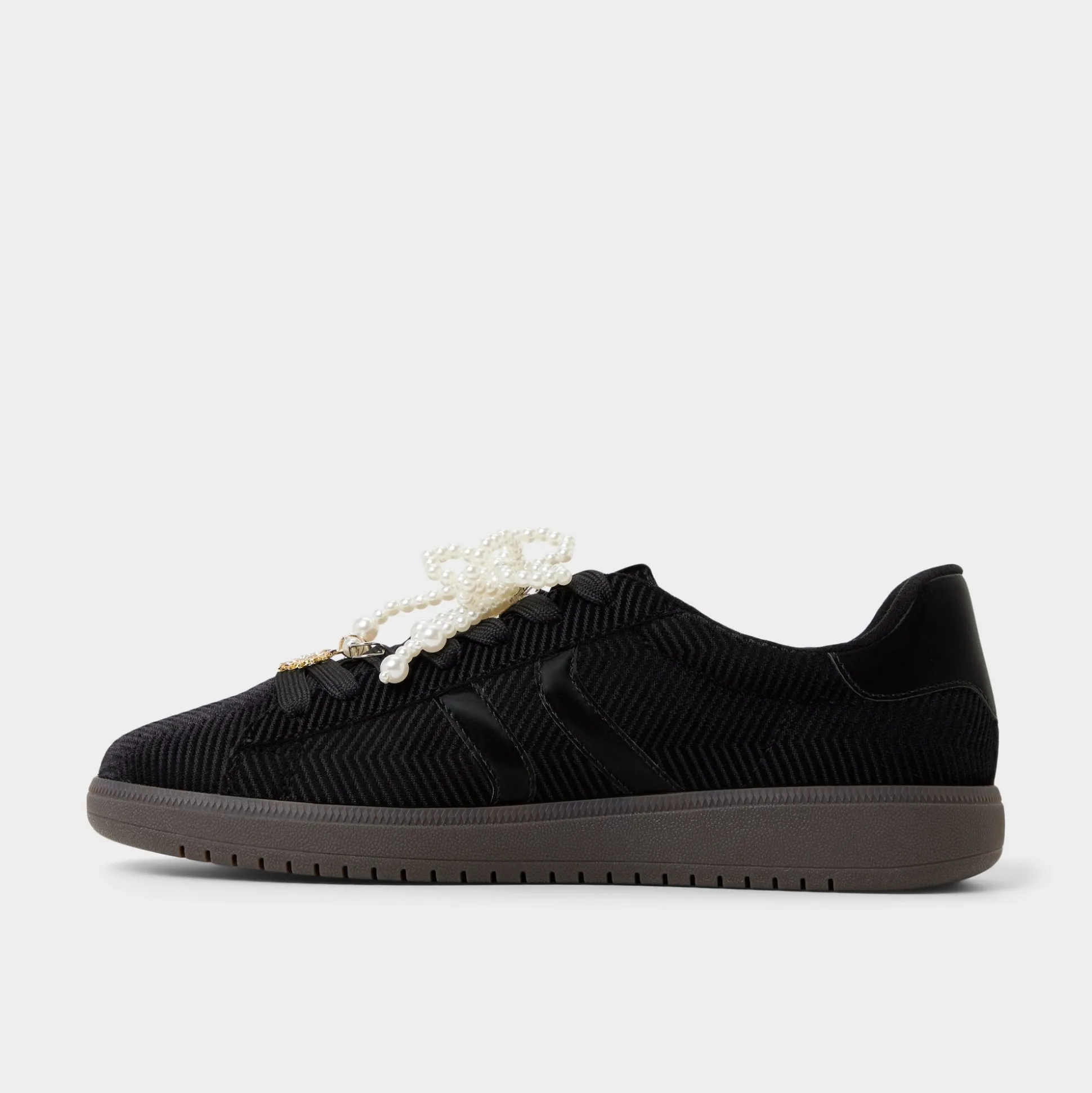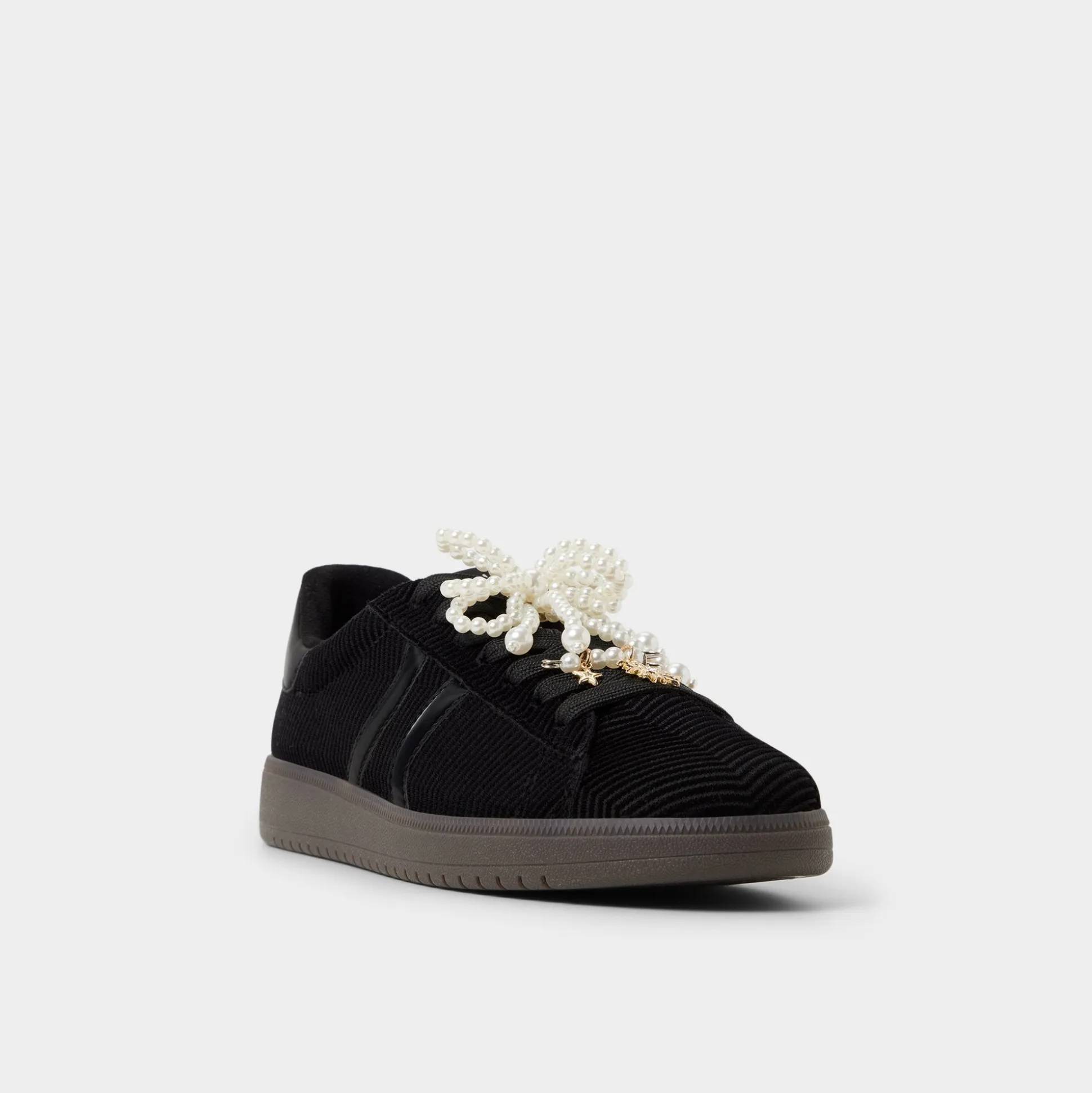 Gleaming faux-pearl laces crown the plush corduroy upper of this retro cup-sole sneaker, adding unexpected luxury while hidden cushioning keeps strides light from first lecture dash to late-night ramen run. Pair with cropped trousers for coffee catch-ups or switch into a silky slip dress once rooftop playlists start.