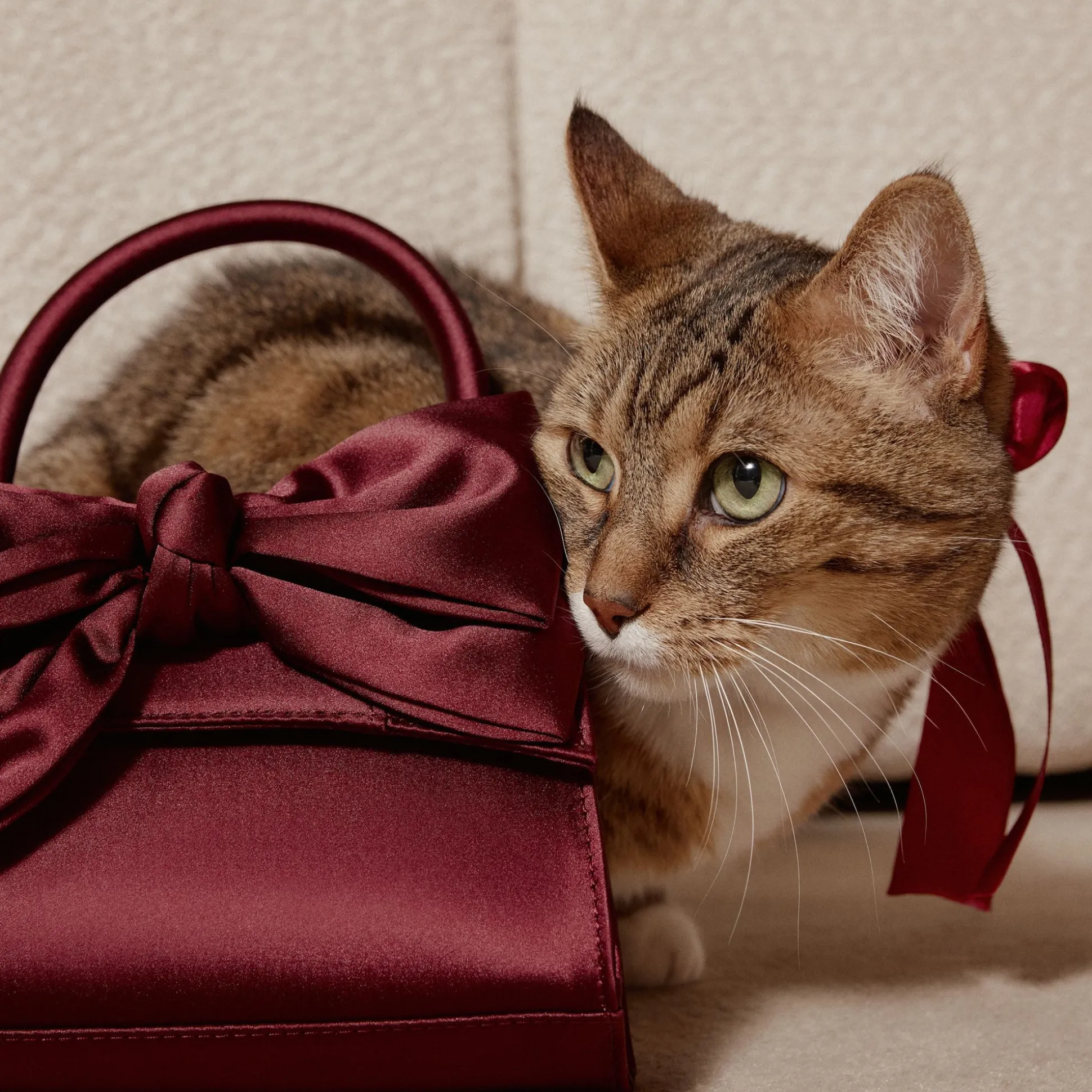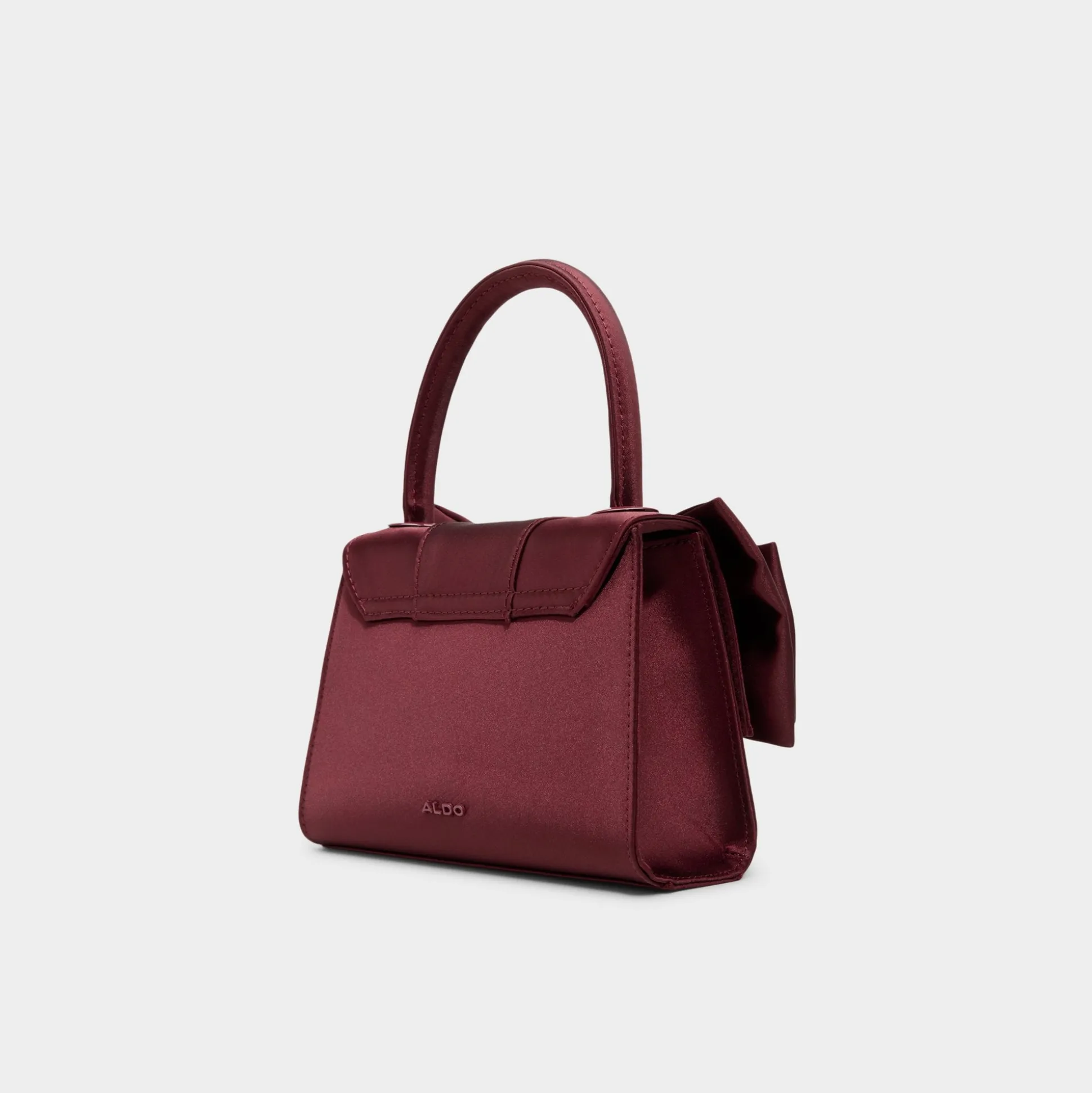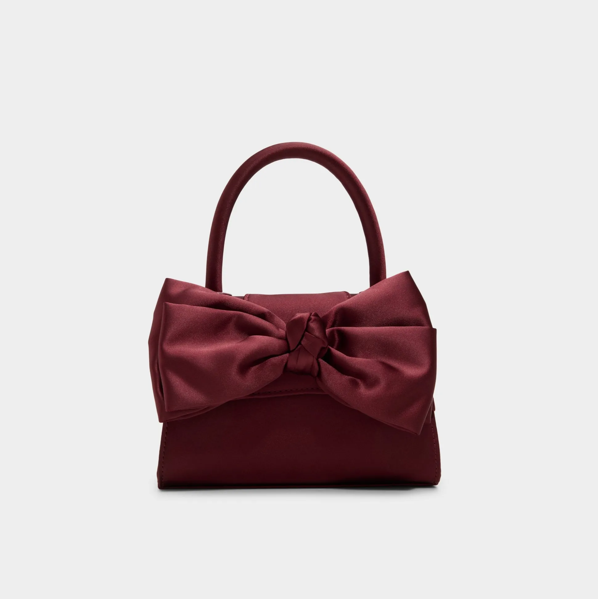 Plush satin bow shines on this structured mini top-handle, its deep burgundy wrapping like a gift and concealing an interior perfect for your phone, cards, and lip touch-up. Pair it with a slip dress for holiday parties or tuck against tailored suiting on date nights to complete the look.