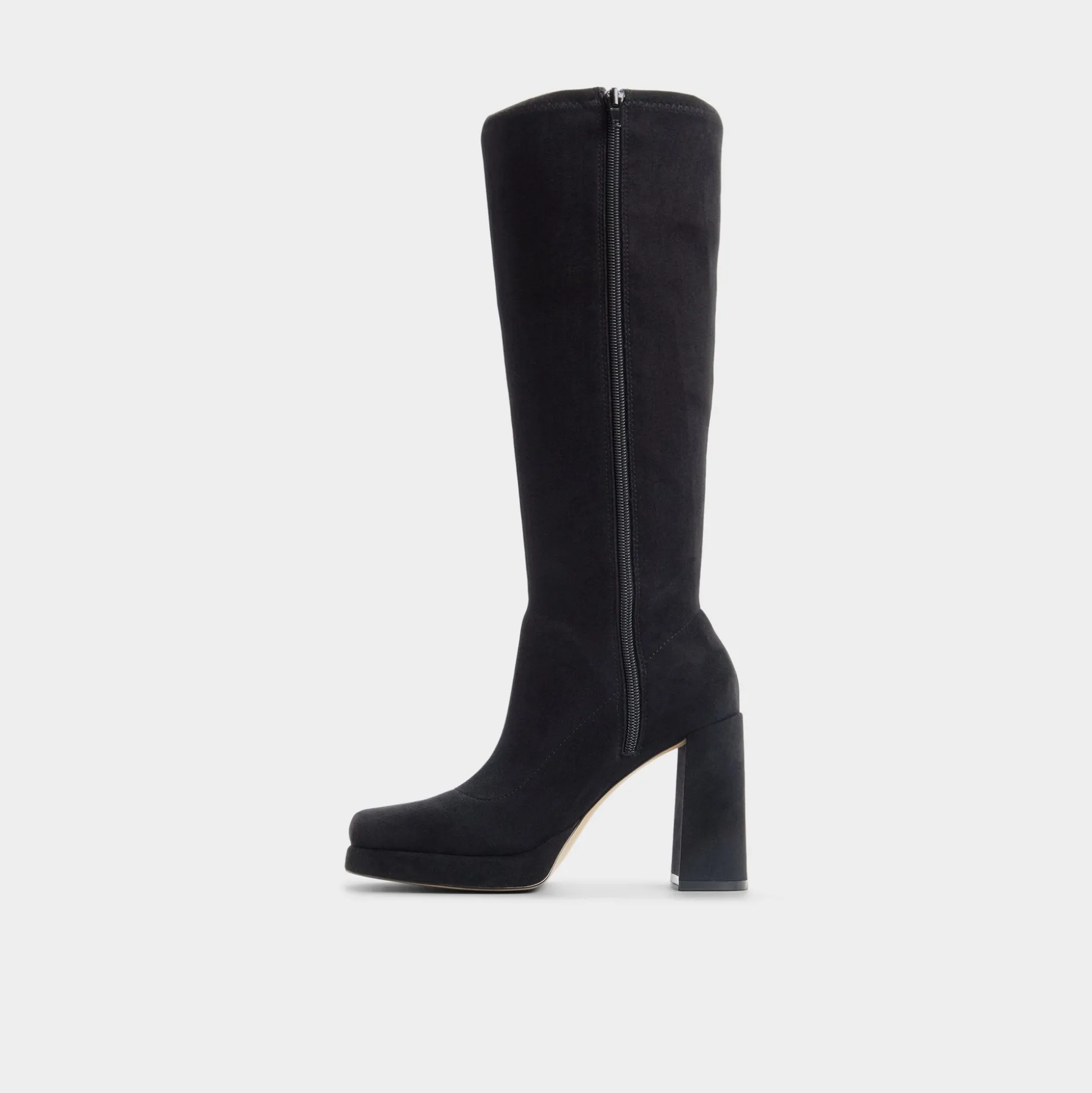 Midnight suede enfolds knee-high silhouettes, delivering a confident, wobble-free lift from hidden platforms and a sculpted block heel that steadies every step on city sidewalks, gallery stairs, and sunlit strolls. Pair with tailored coats for coffee catches, or slip into a floral midi as gallery openings turn into after-dark conversations.