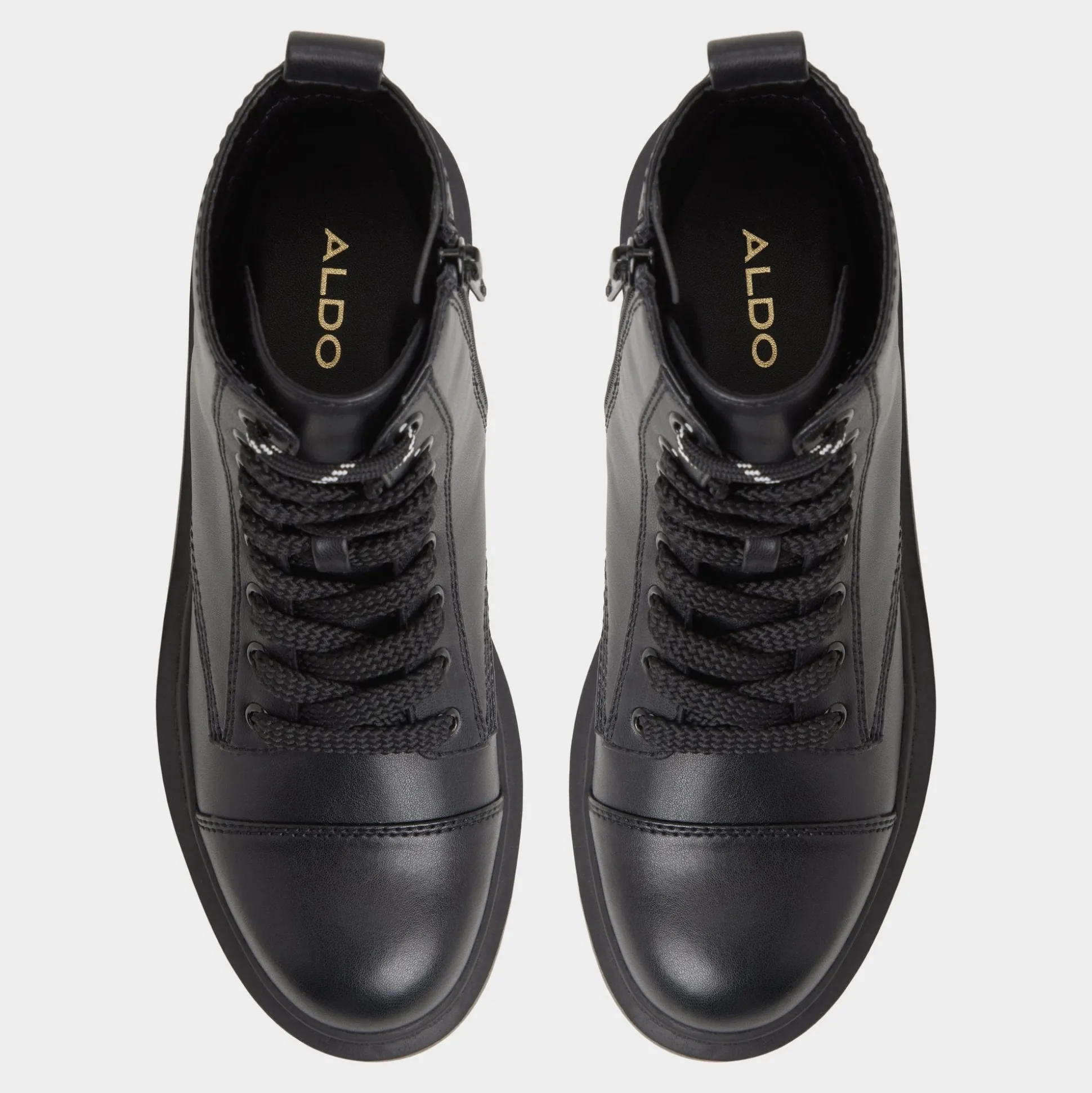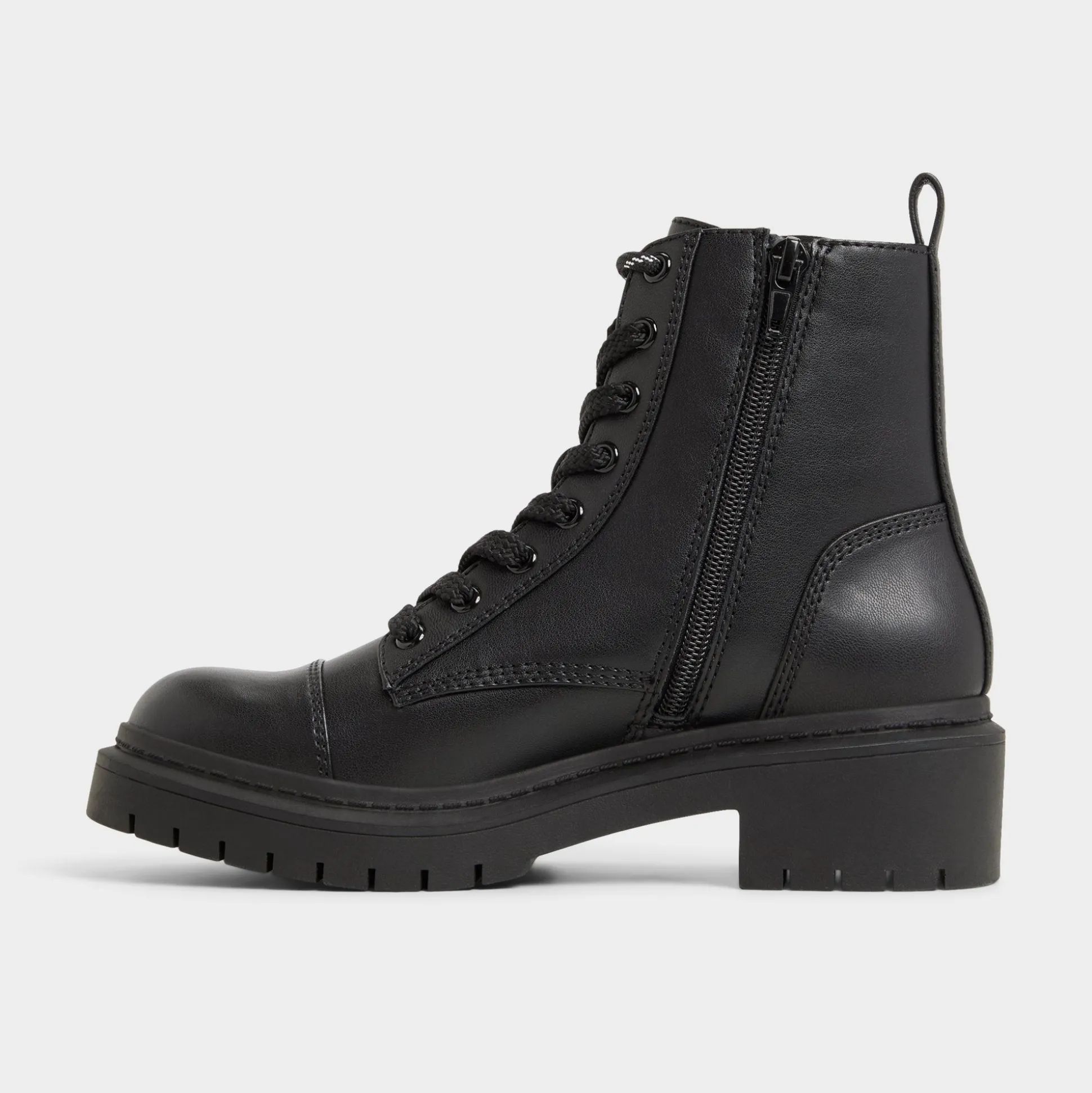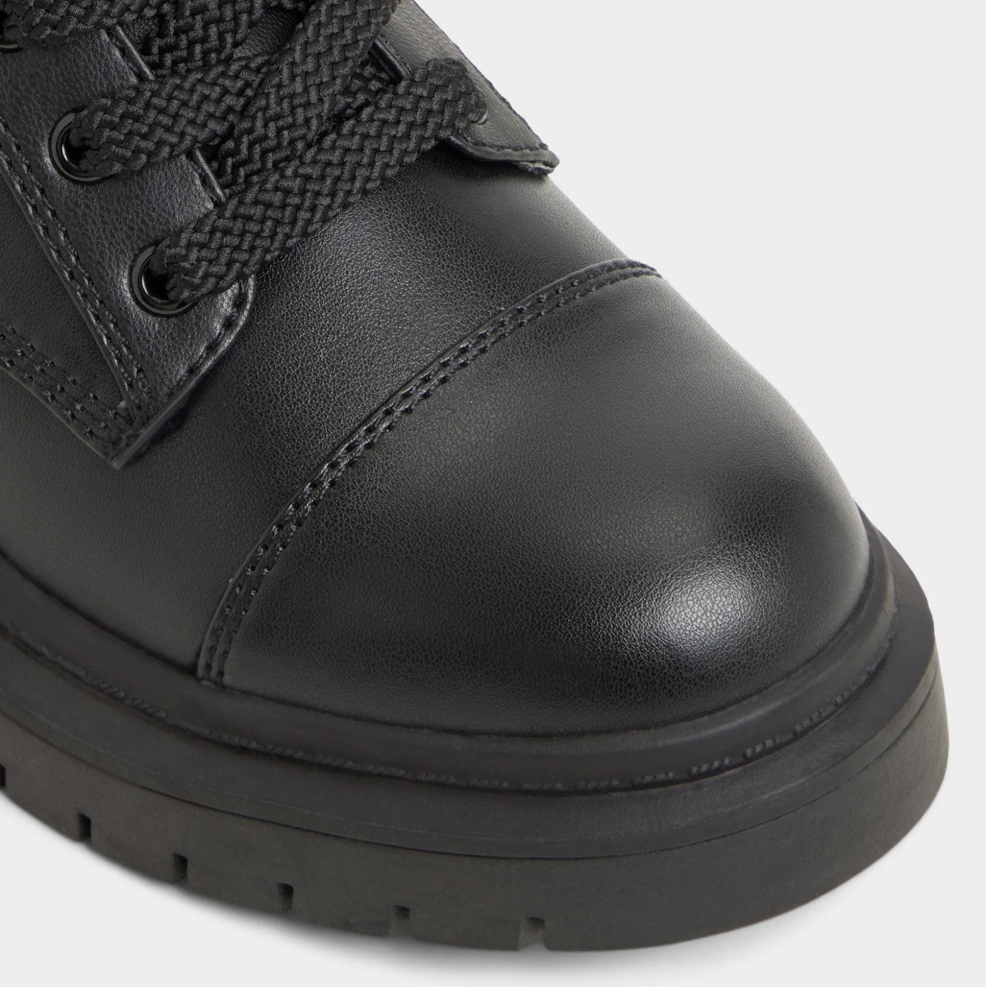 Black leather lace-up combat boots fuse rugged edge with city-smart polish, the chunky lug soles delivering sure footing for damp sidewalks and late-night detours, while a streamlined silhouette keeps the look versatile from work to after-hours. Pair with plaid minis for concerts, or ground a pared-down tee and relaxed pants for city-style commutes.