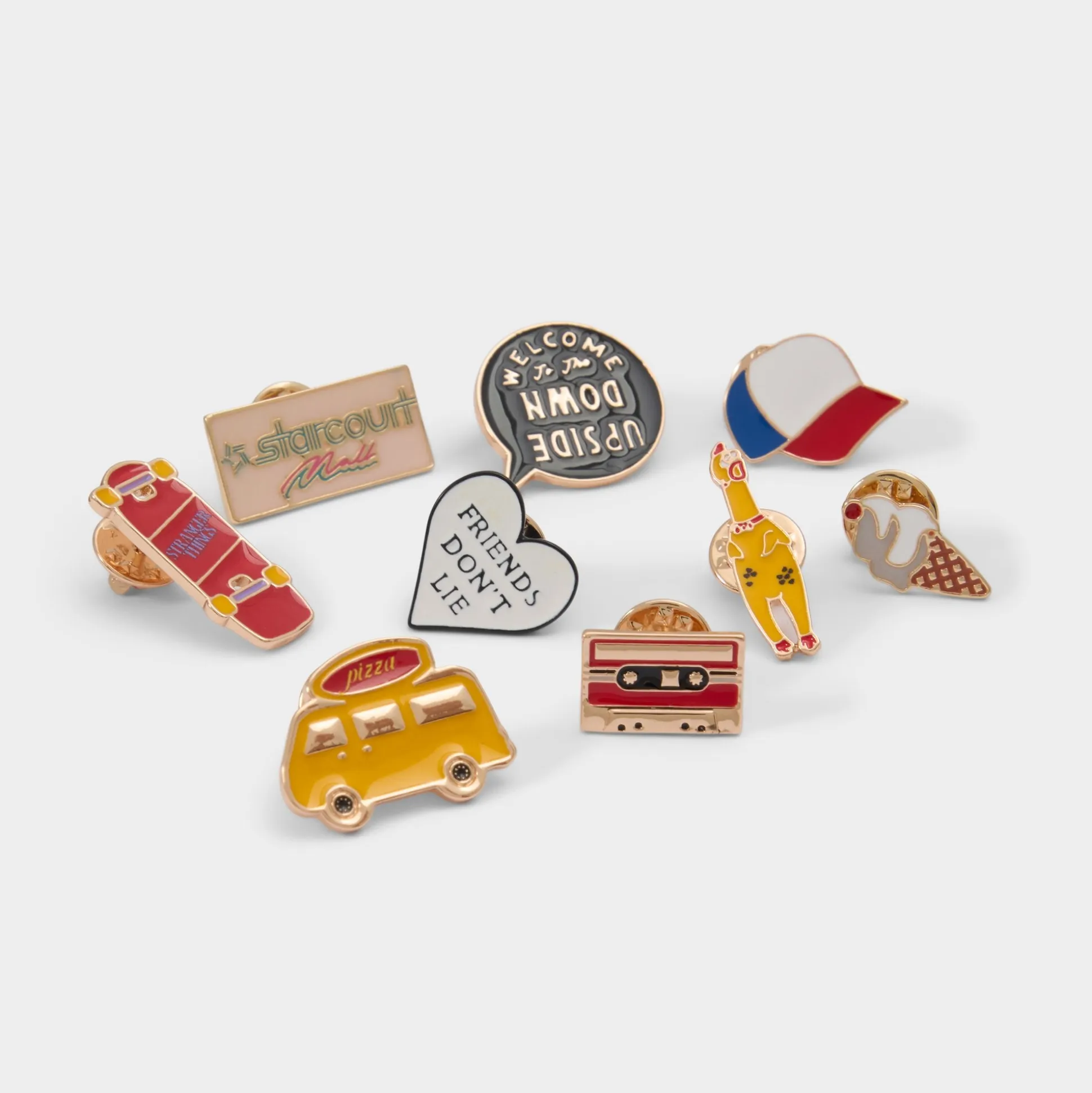 This versatile collection of limited-edition Stranger Things x ALDO pins adds retro flair to your sleeves, jackets, bags, or hats. Featuring the 10 most out of this world symbols from the canon, this series is the most metal ever.