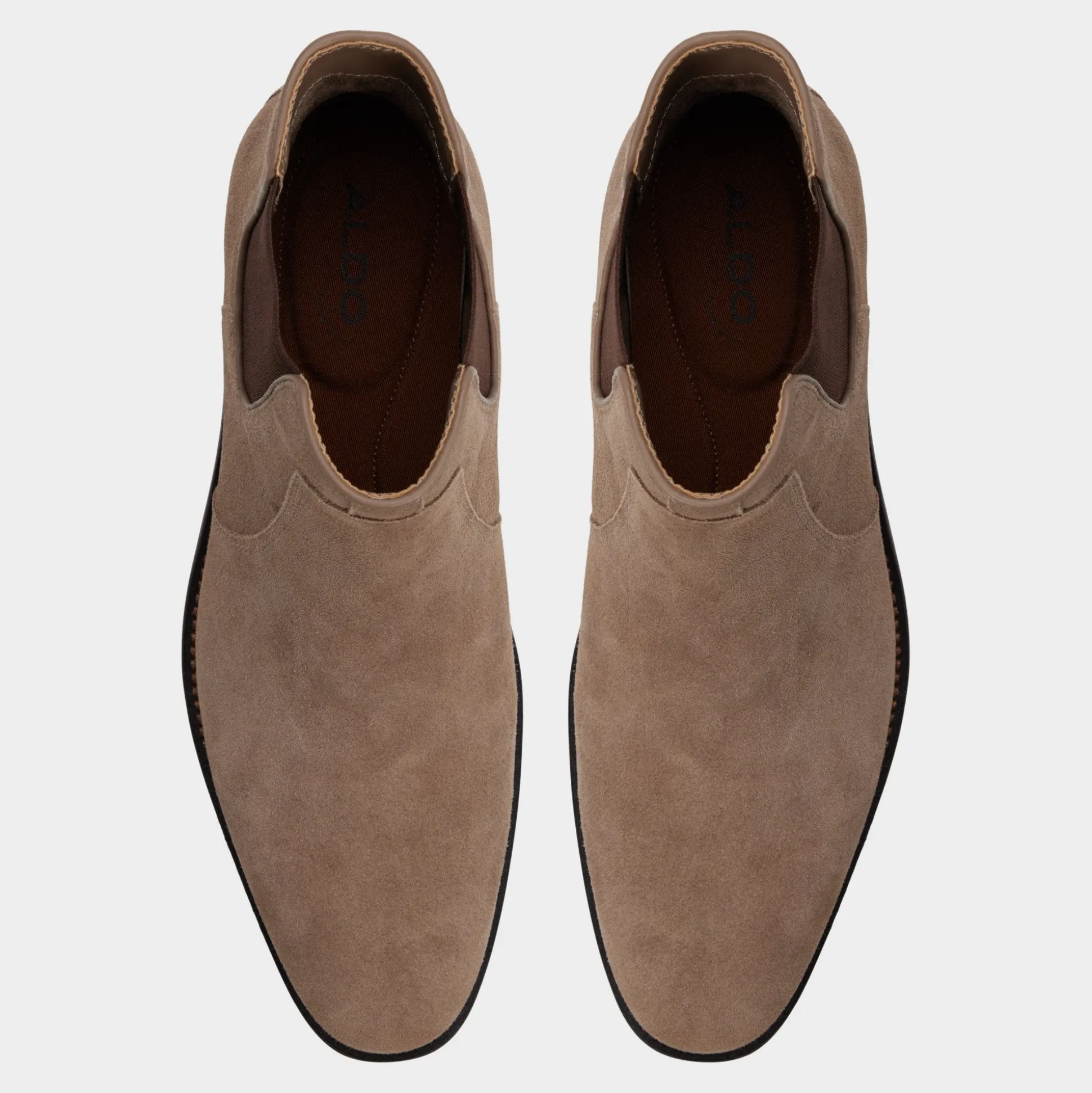 Taupe suede brings a relaxed texture to these Chelsea boots, with matching stretch side panels making them easy to slip on while a sleek rubber cupsole keeps city strolls effortless. Pair them with cuffed selvedge denim for casual Friday brainstorms or slip under charcoal overcoats and wool trousers for gallery weekends-the clean almond toe remains impeccably sharp.