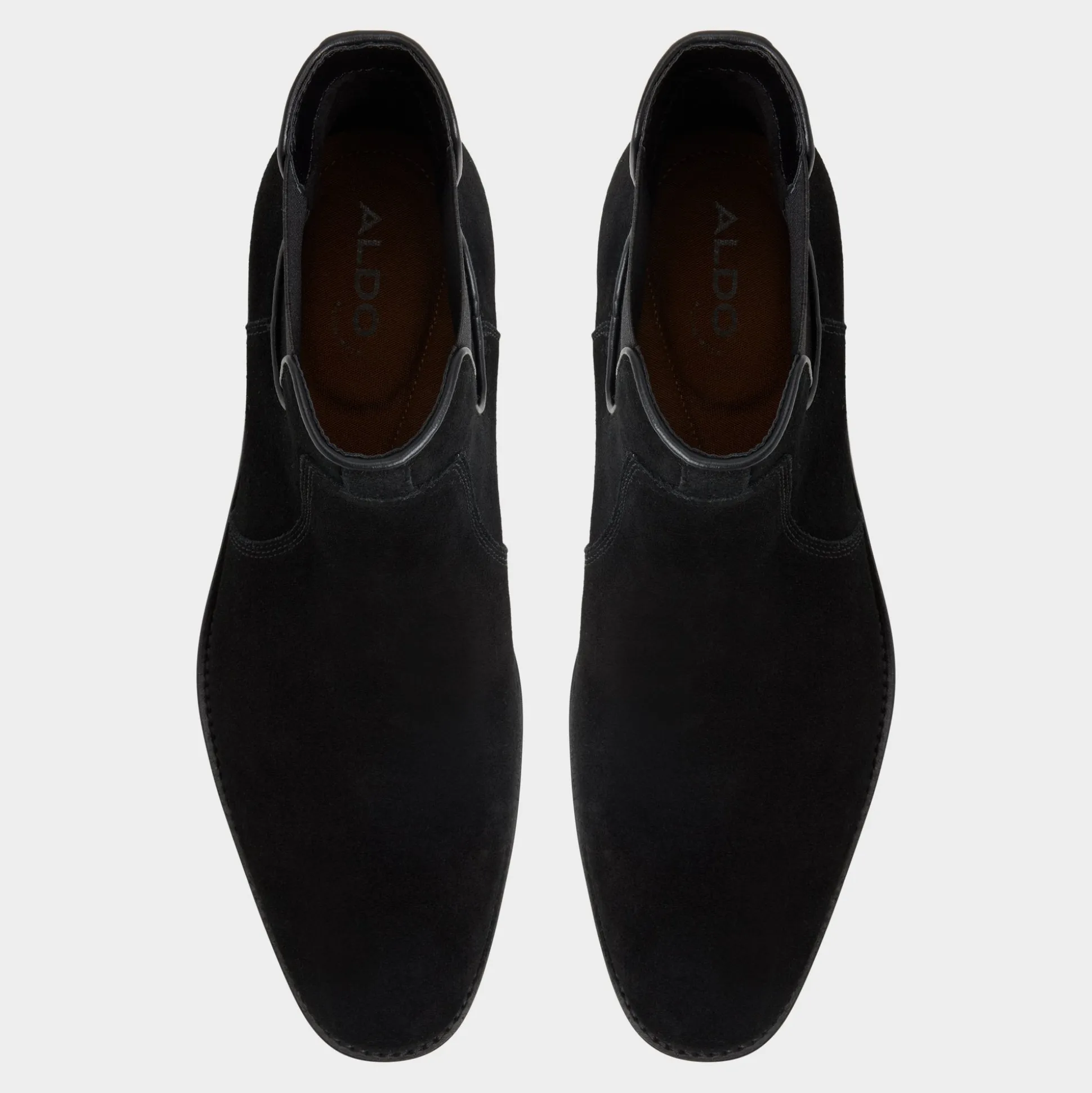 Velvety black suede gives this Chelsea boot a subtle texture, with elastic side panels for easy wear and a low-profile rubber sole providing sneaker-like flexibility throughout busy days. Pair it with slim indigo jeans for Friday gigs or ground a charcoal suit from desk-to-dinner seamlessly.