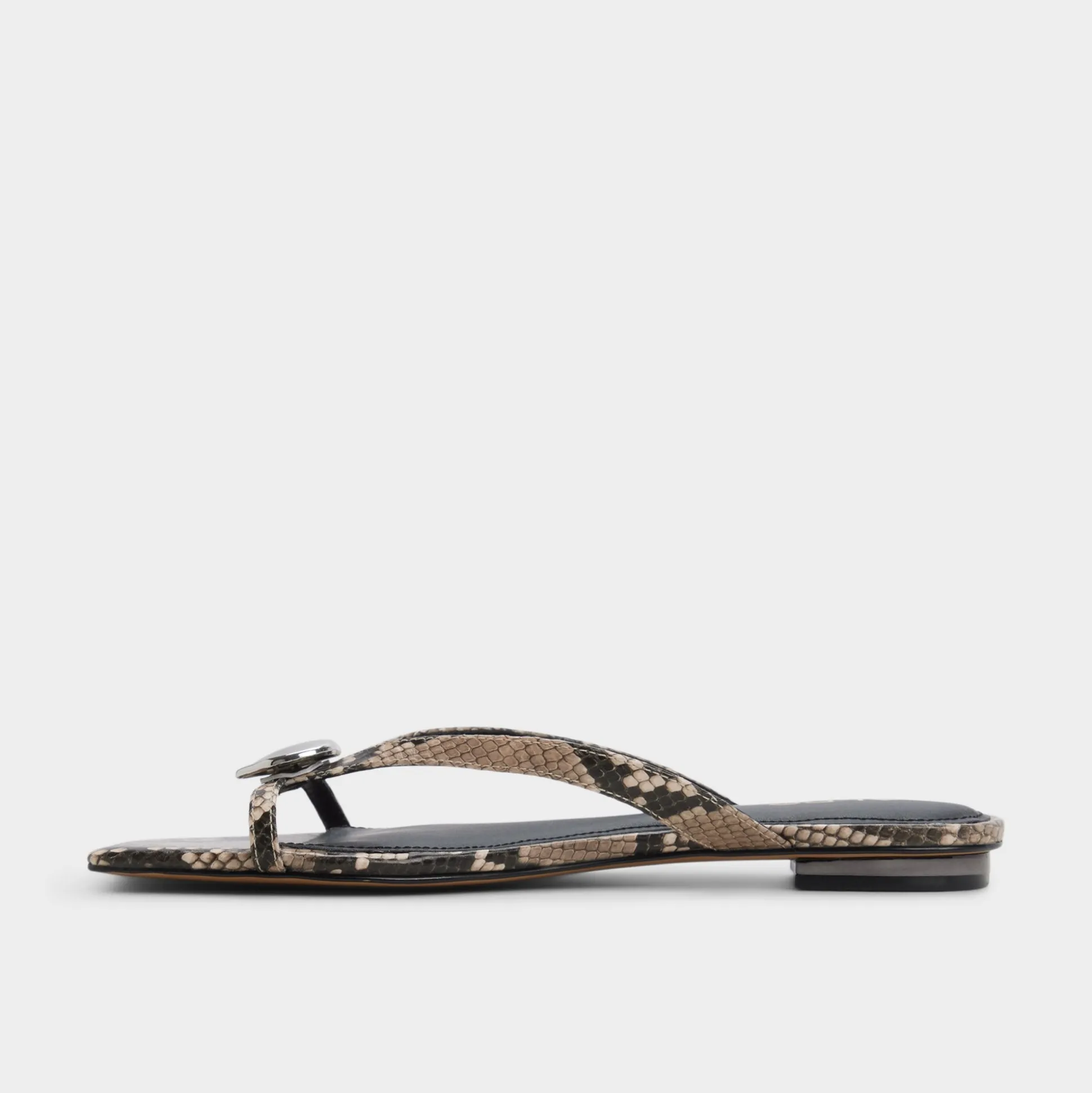 Snake-print straps crown this flip-flop, pairing bold texture with a cushioned sole for all-day ease from airport lines to seaside strolls. Pair with airy shorts for market strolls, or slip beside a flowy cover-up as you float between poolside lounging and sunset balcony chats tonight.