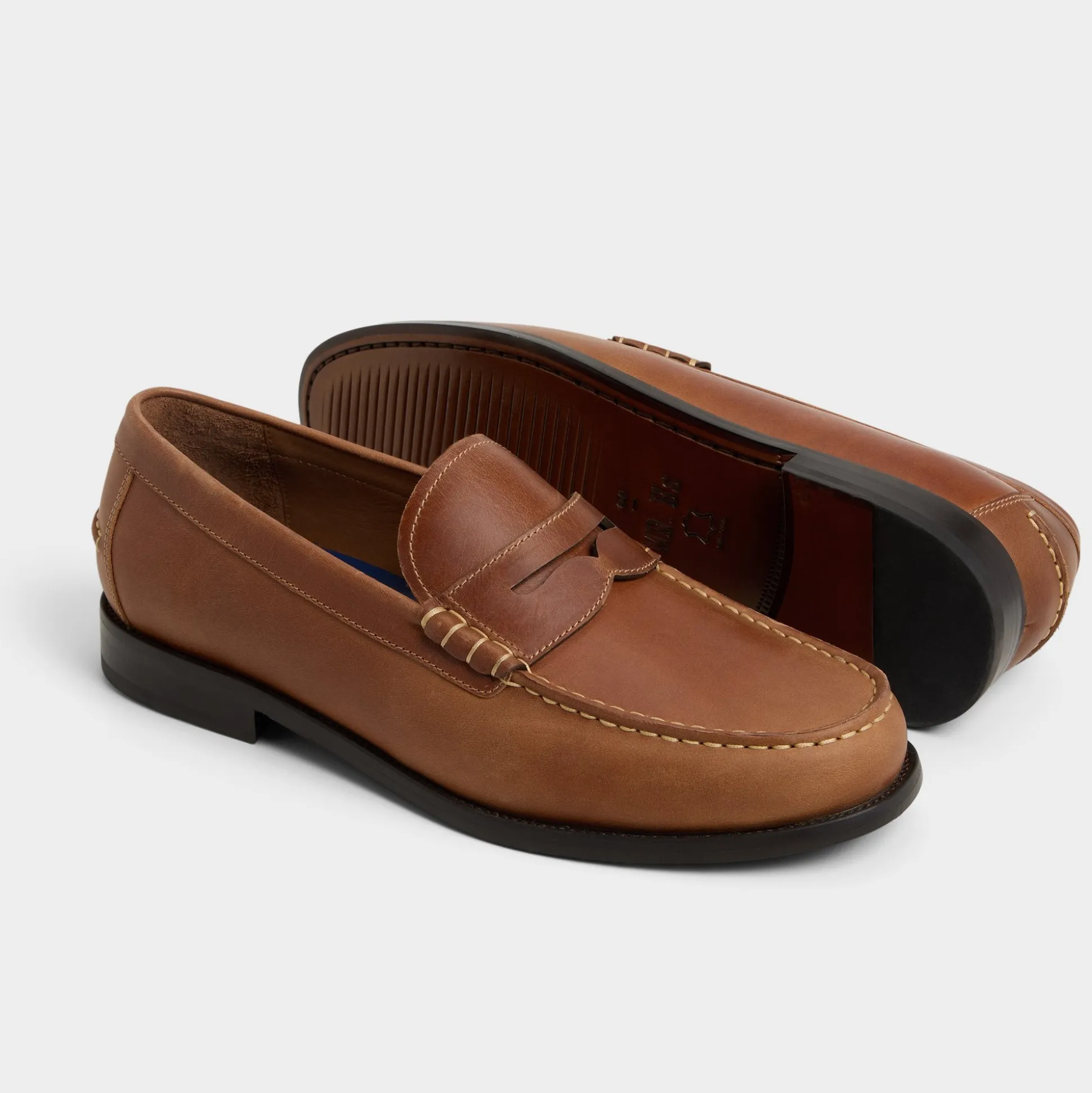 Burnished leather defines this penny loafer, with a cup sole and breathable lining for comfort from morning meetings to evening calls. Pair it with chinos for the office, or cuffed jeans for a patio brunch, finishing every look with quiet polish for any occasion, anywhere.