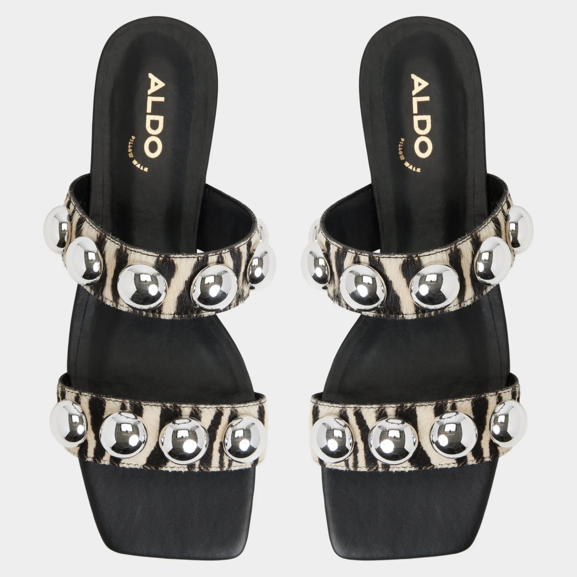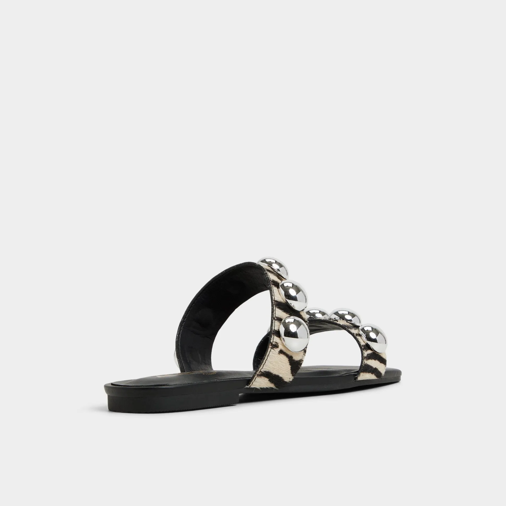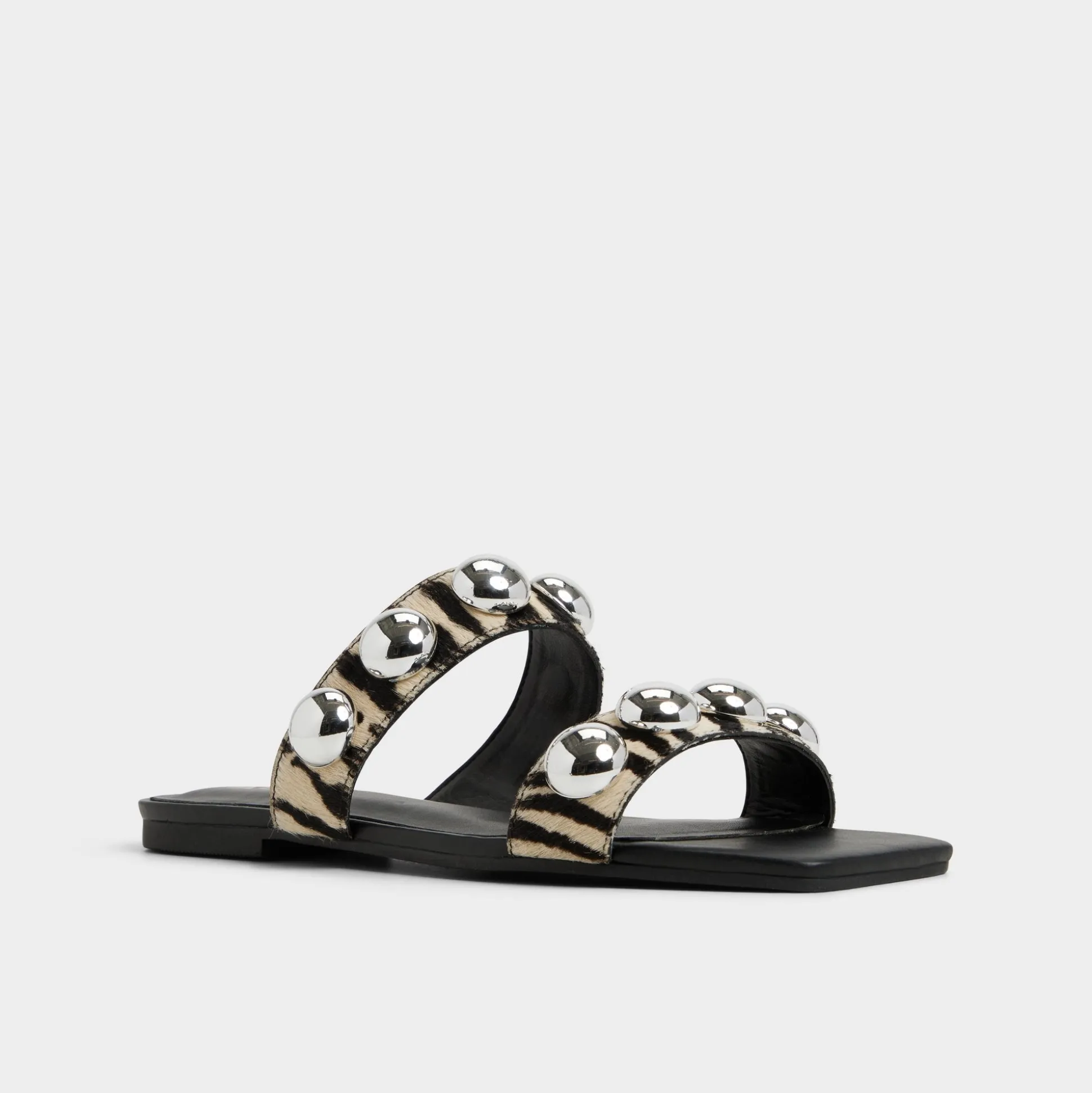 Zebra-striped straps with glossy studs crown a light, airy sole, turning every step into a bold, carefree moment and letting city sidewalks feel like a playful runway from morning coffee to evening rooftop. Pair with cut-off denim for festival vibes, or slip into a silky slip dress for sunset drinks and after-dark strolls.
