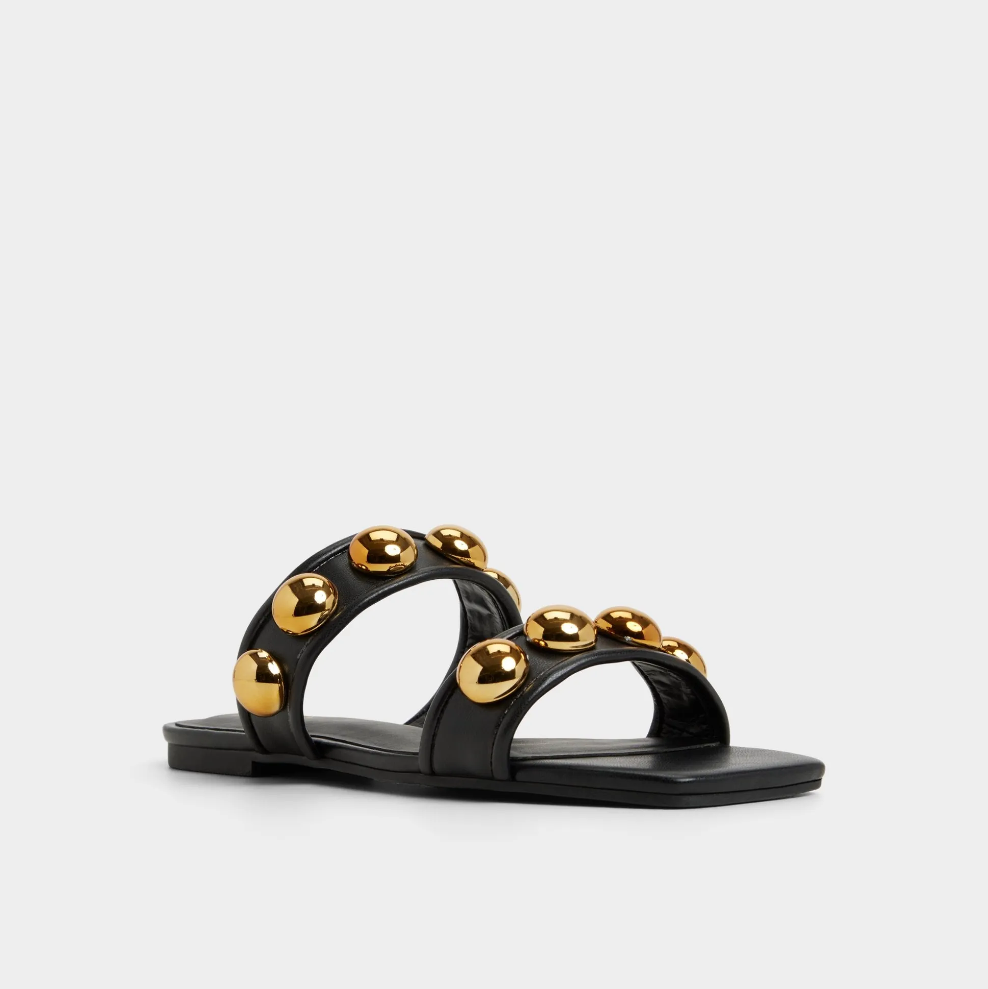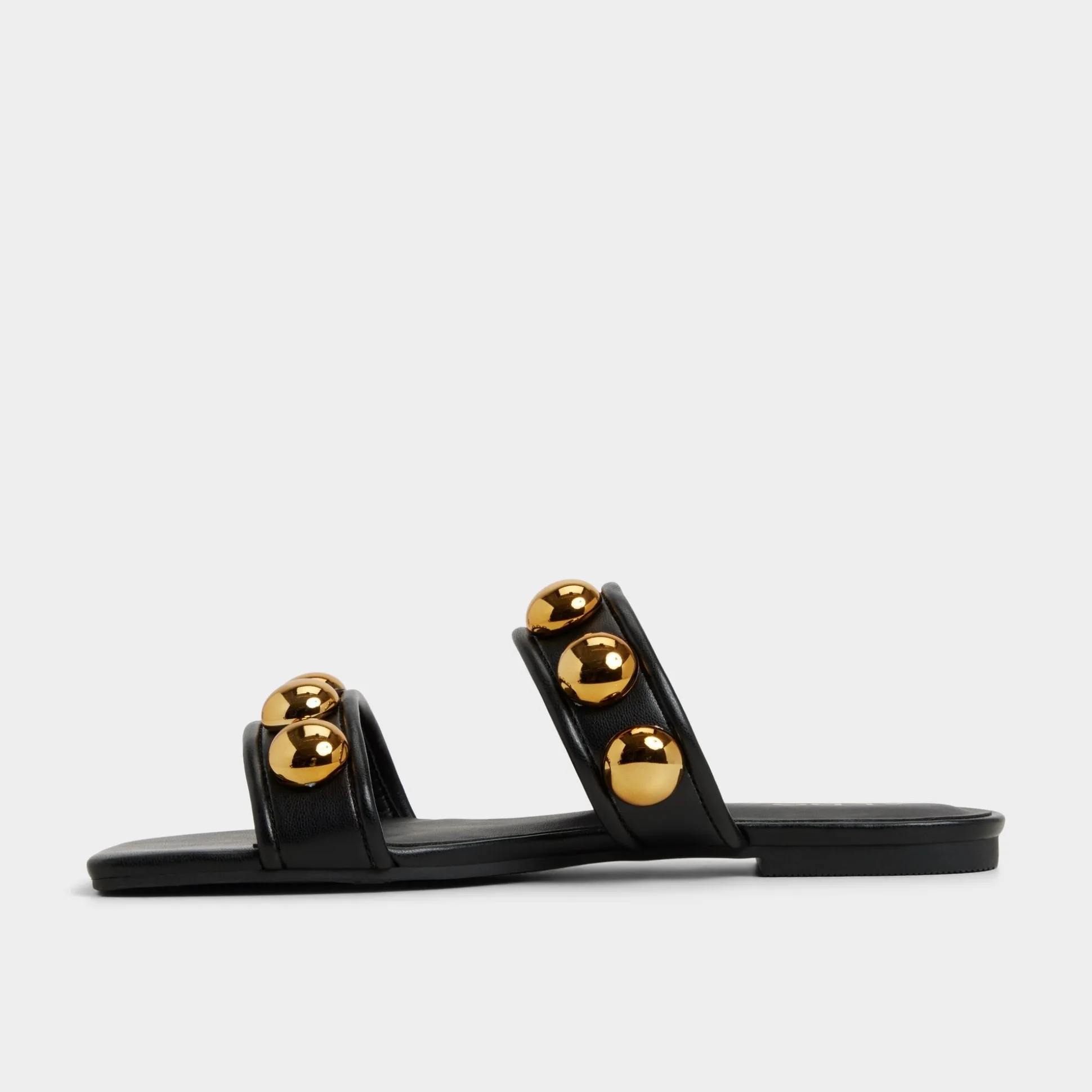 Gold studs crown two smooth straps, turning slides into jewelry as a plush, cushioned footbed keeps every step calm and collected from morning errands to sunset city strollers and ready for spontaneous plans. Pair with linen trousers for art fairs, or slip under a blazer dress for cocktail calls.