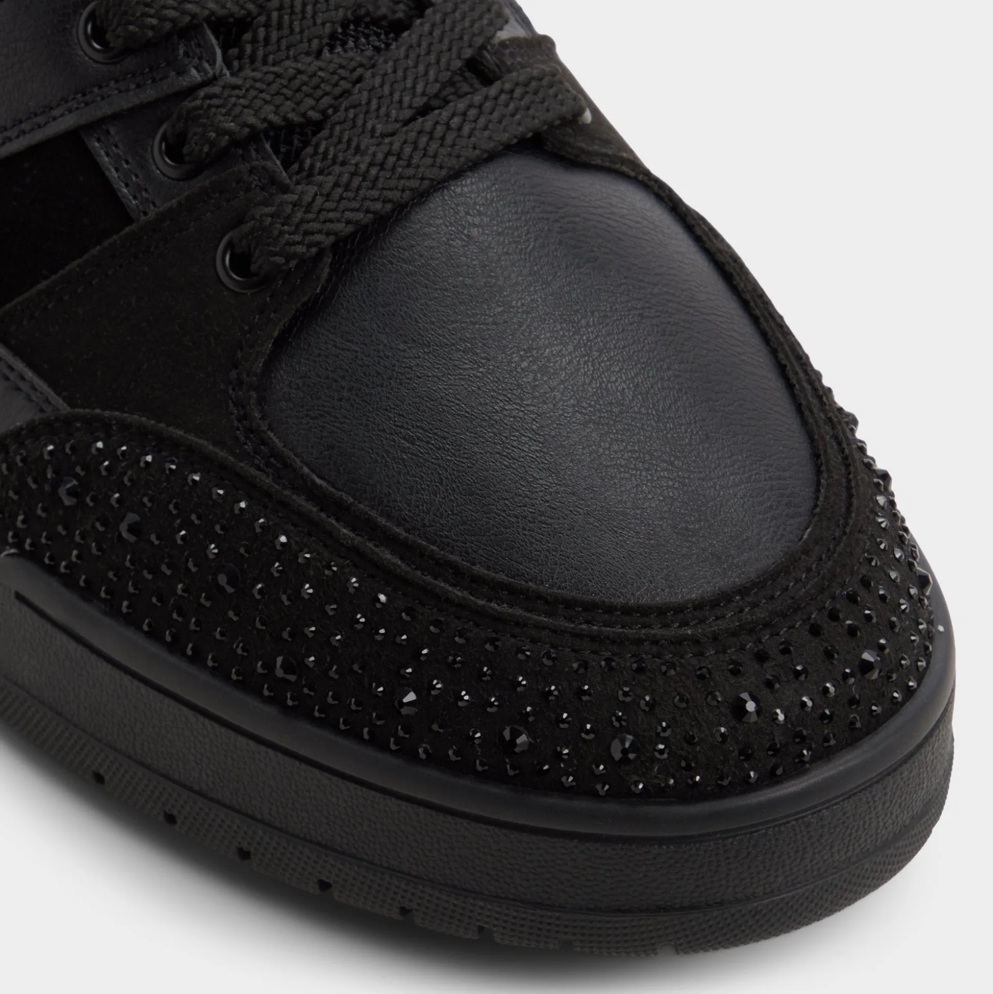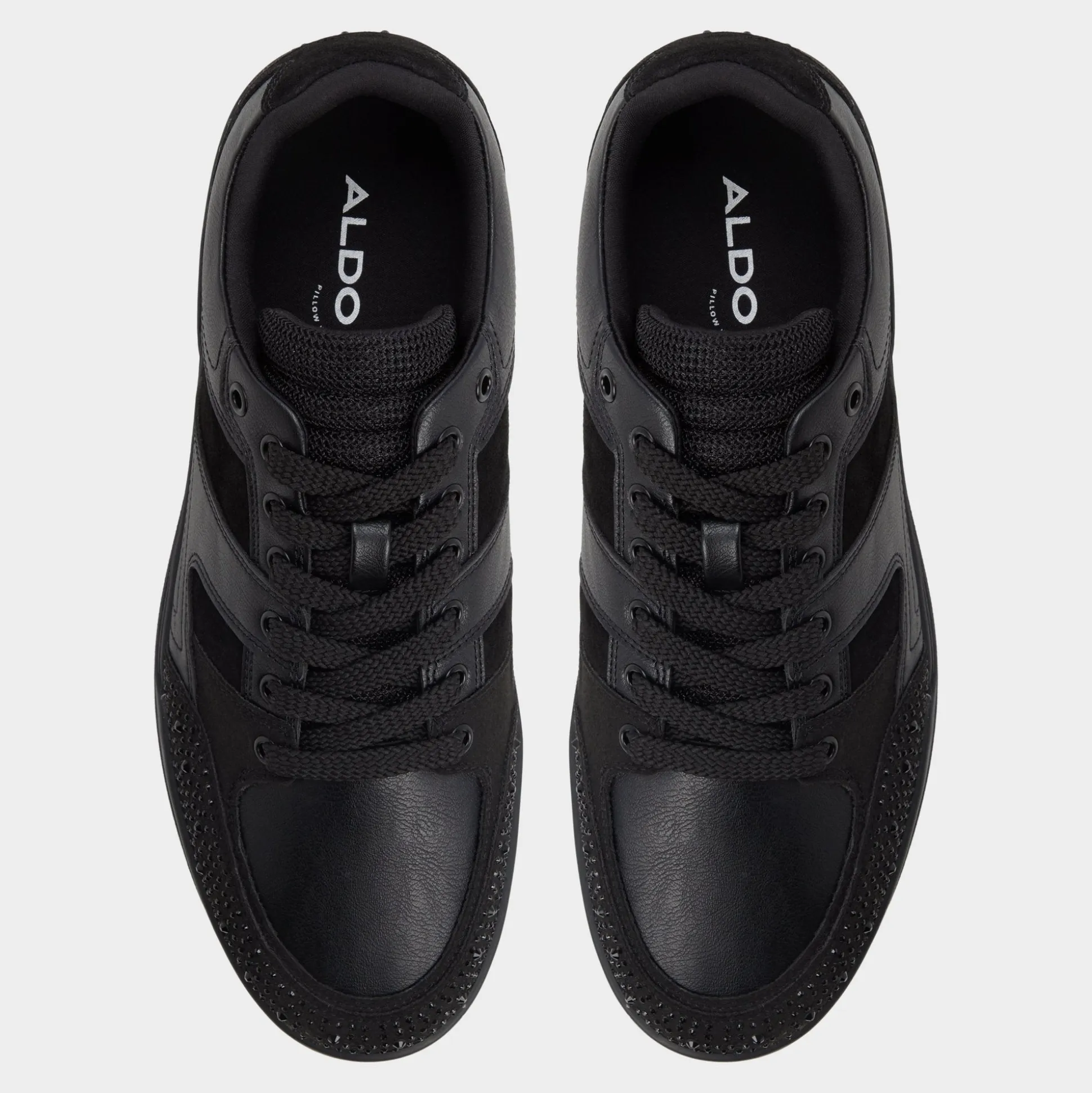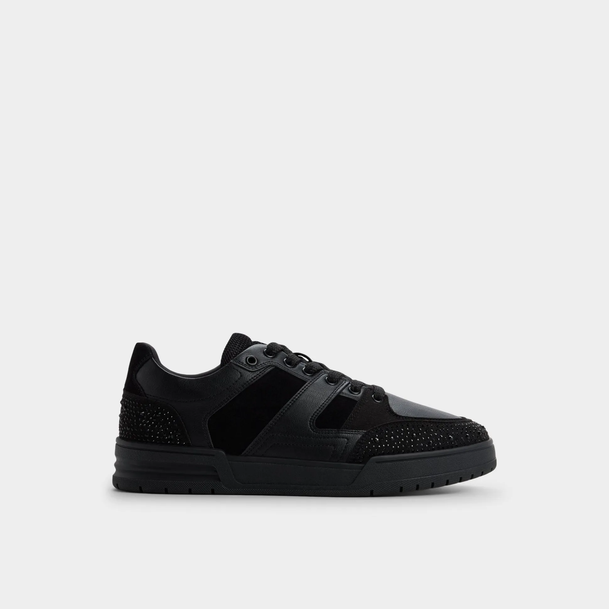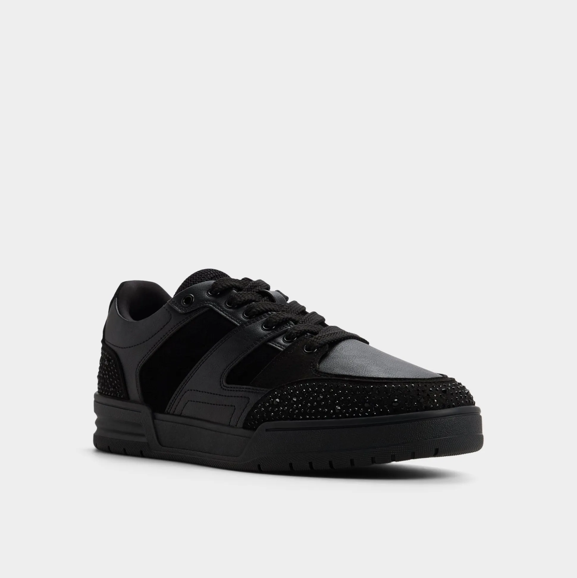 Midnight leather meets smooth suede, and micro-studded heel and toe panels give this low-top subtle shine, while a cushioned cupsole ensures comfort from morning commutes to midnight outings. Match it with cuffed cargos for rooftop sets or slot beneath slim joggers for weekend coffee runs.