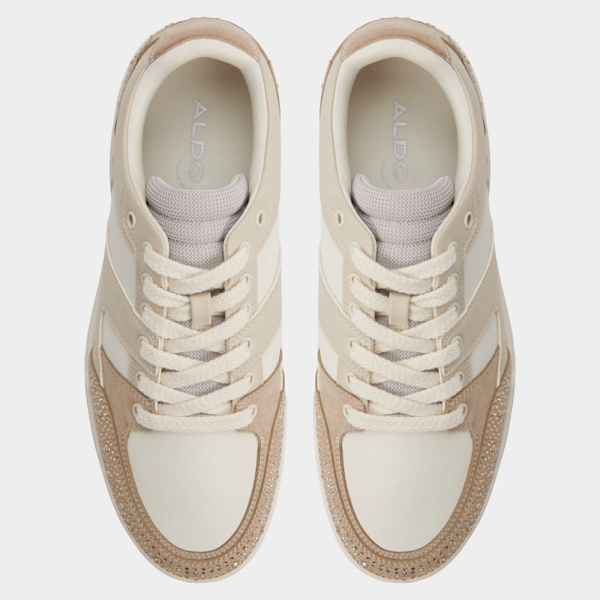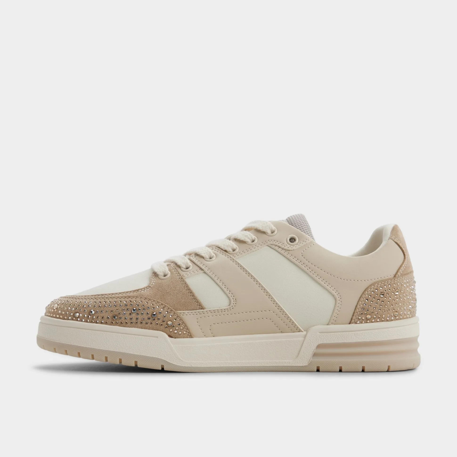 Studded suede panels pop against smooth beige leather on this low-top, adding unexpected flair, while a cushioned cupsole keeps steps light from terminals to late-night plans. Pair it with tapered chinos for brunch or team with a bomber and joggers for evening concerts.