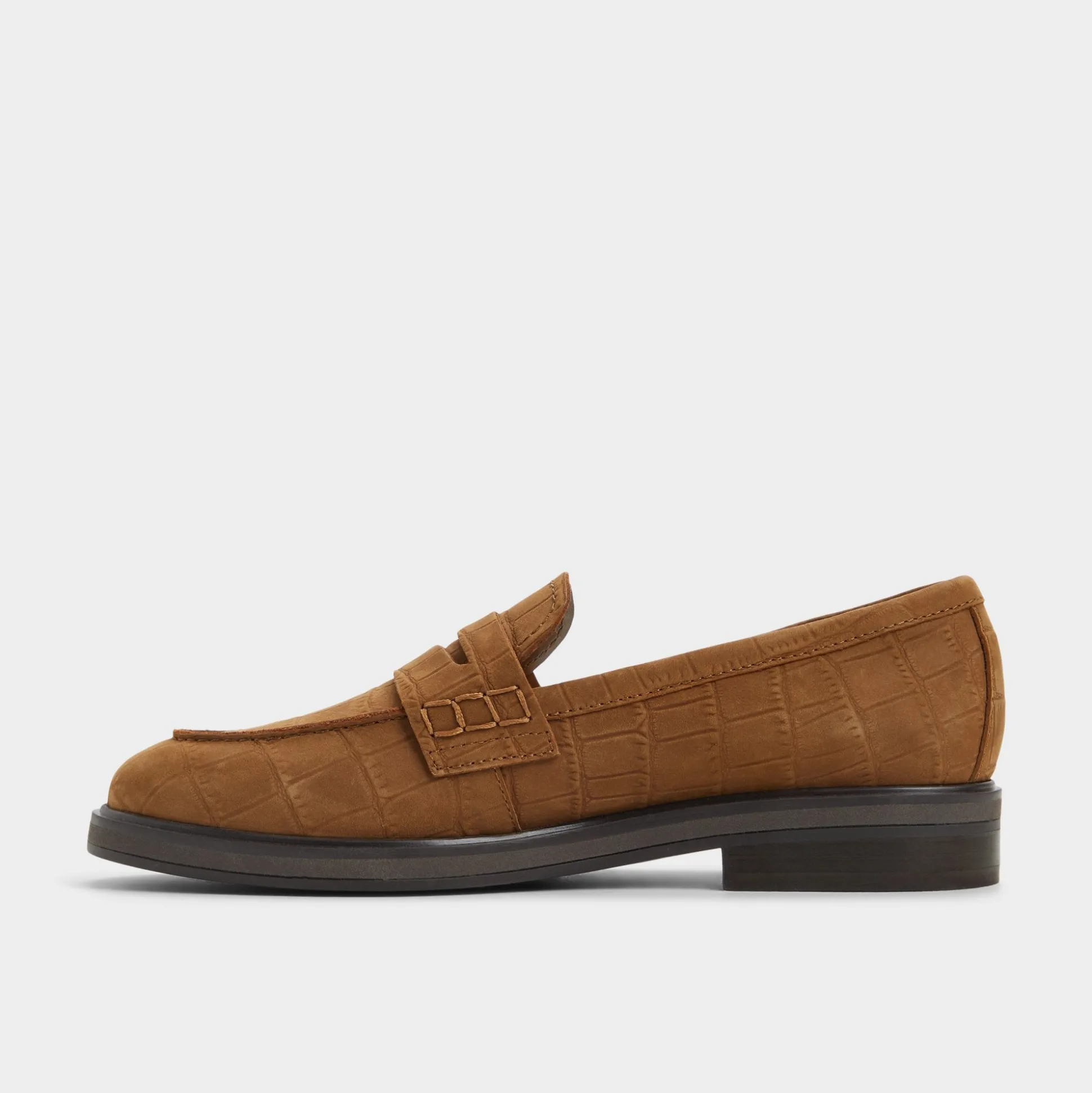 Rich croc-embossed leather gives this sleek loafer its quiet swagger, while a cushioned footbed and flexible cup sole make every stride feel like inside knowledge reserved for those who actually read the fine print. Pair with tailored trousers for power-point mornings, or swap into cuffed jeans when coffee catch-ups wander into vintage bookstore browsing.