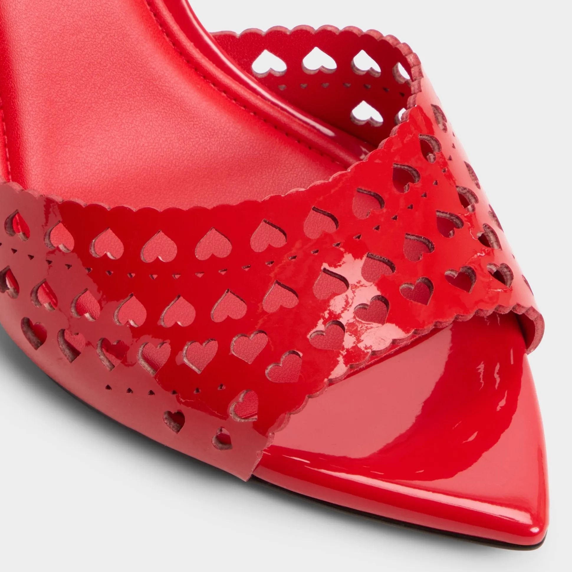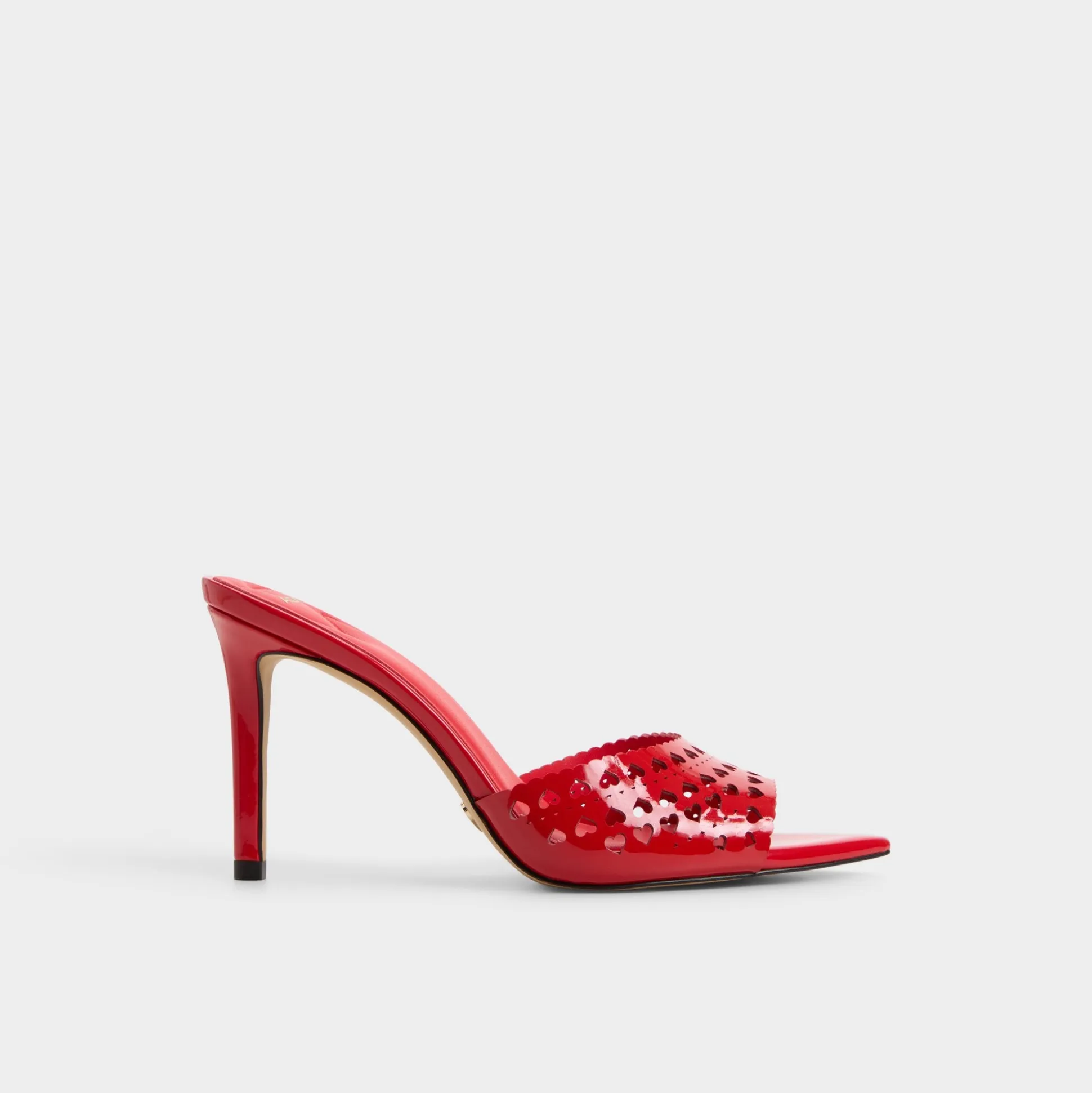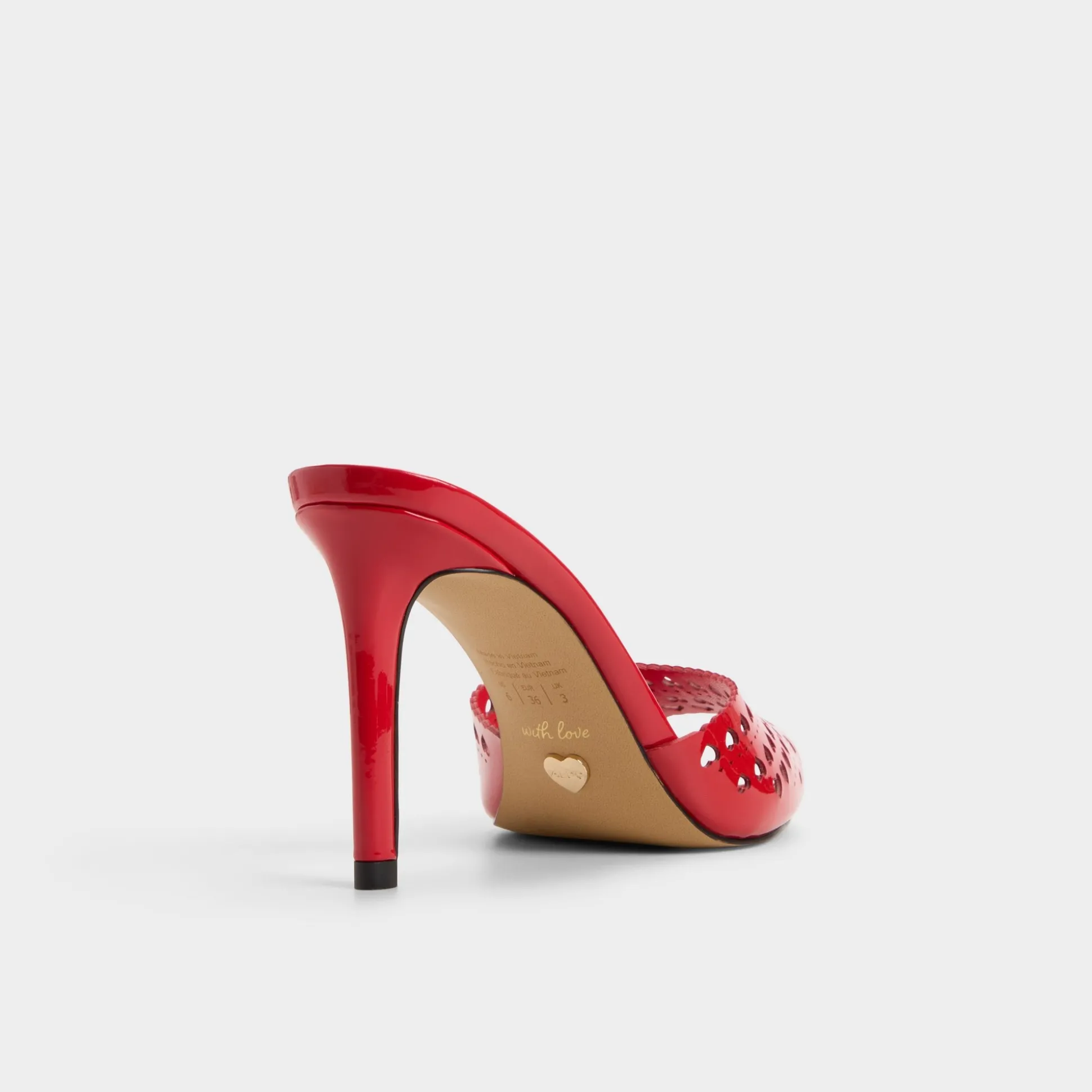 Step into romance this season with the Lovemule—a striking red high heel mule adorned with delicate burnout heart details. The bold crimson hue and intricate cutout pattern create an eye-catching silhouette perfect for date night or Valentine’s Day celebrations. Elevated on a sleek high heel, this mule delivers both confidence and charm, making it an instant favorite for anyone ready to make a statement.