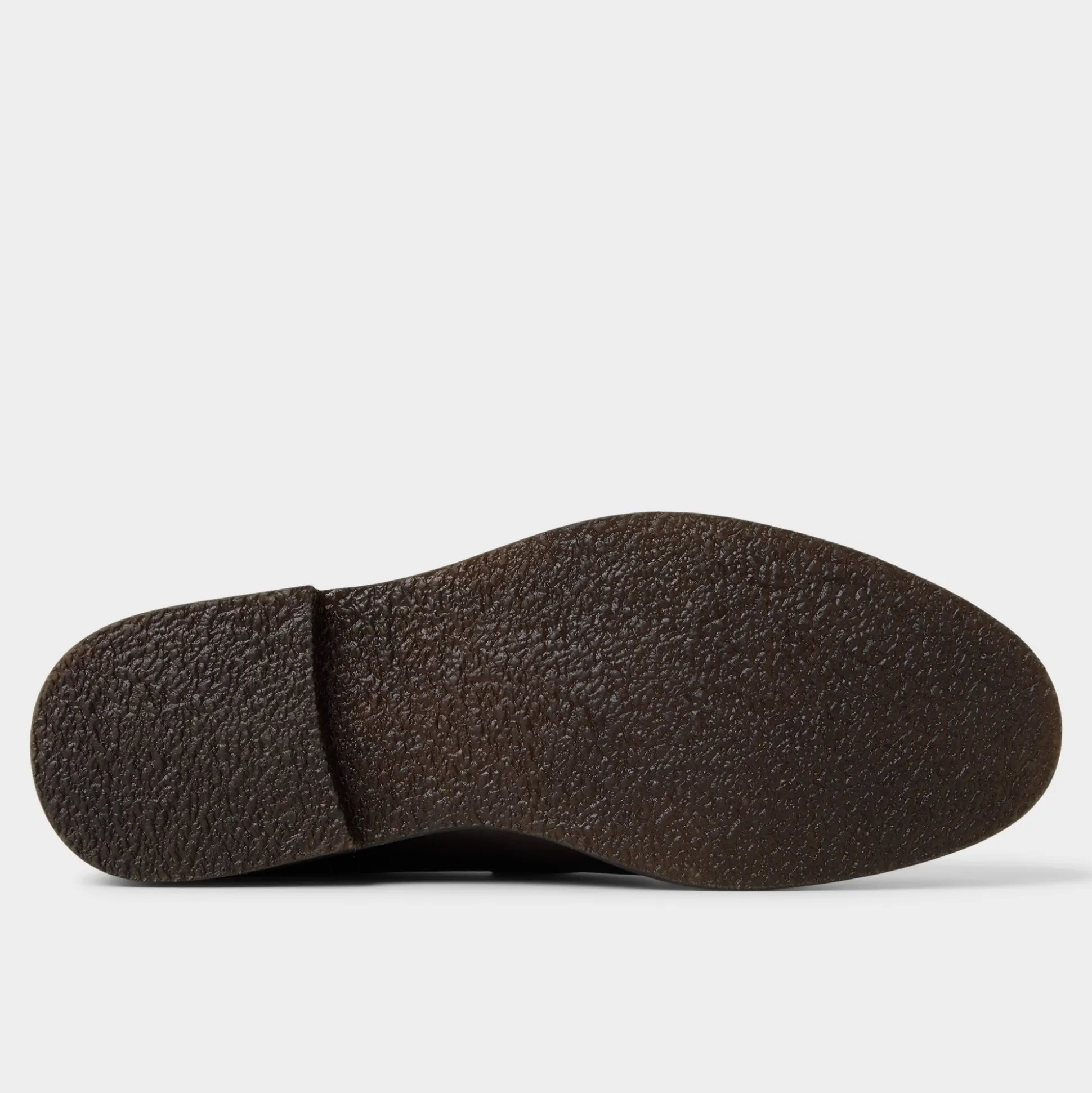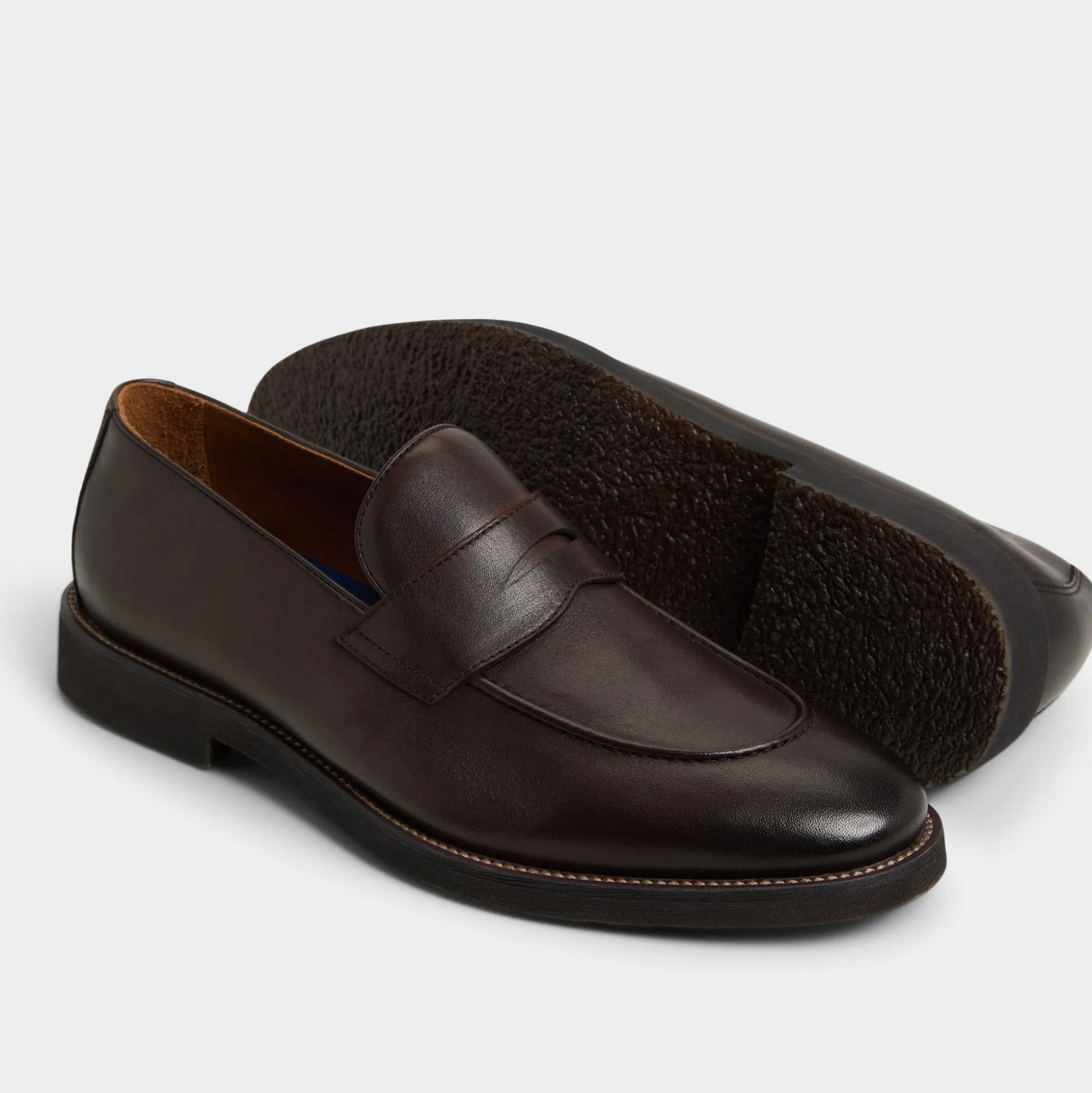 Espresso leather keeps this classic loafer sharp and understated, letting the strap take the spotlight while a lightweight sole smooths every stride through busy commutes and evening plans. Pair it with charcoal tailoring for client meetings or roll with dark denim for gallery nights—confident polish that moves with you from morning to midnight.