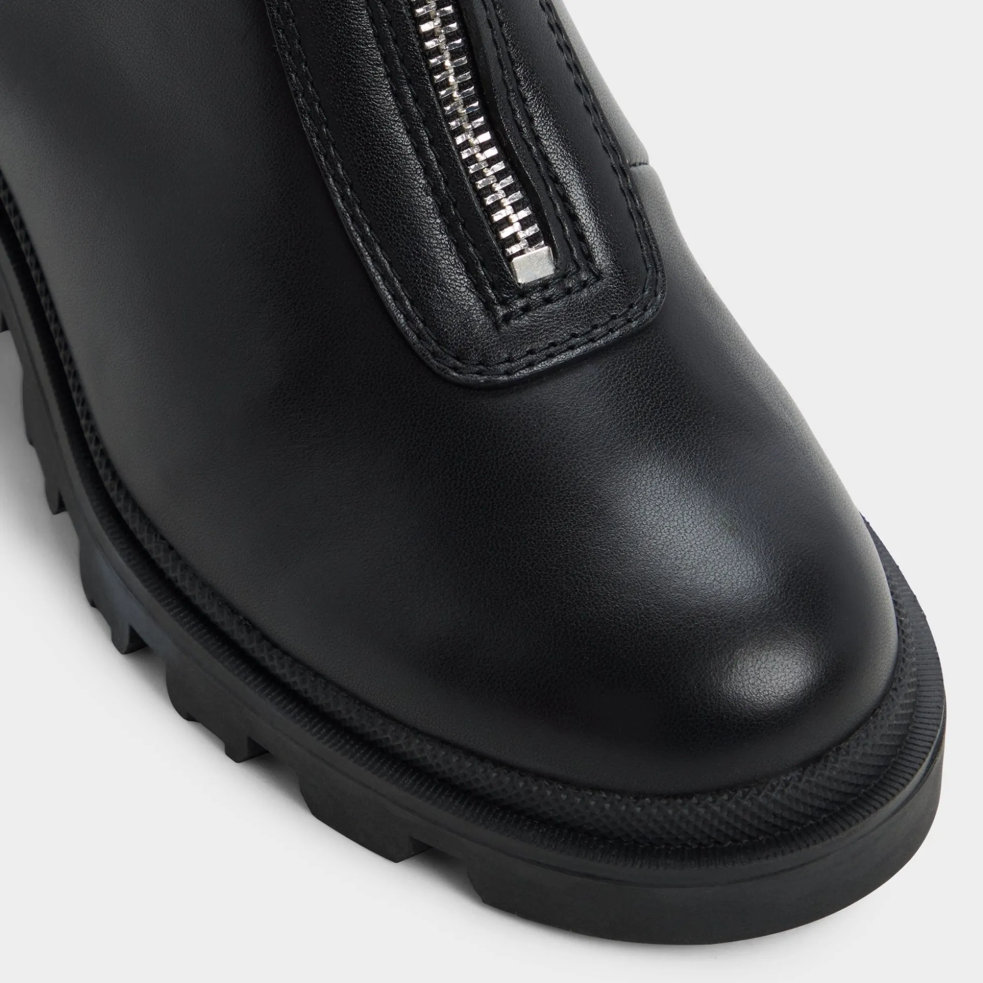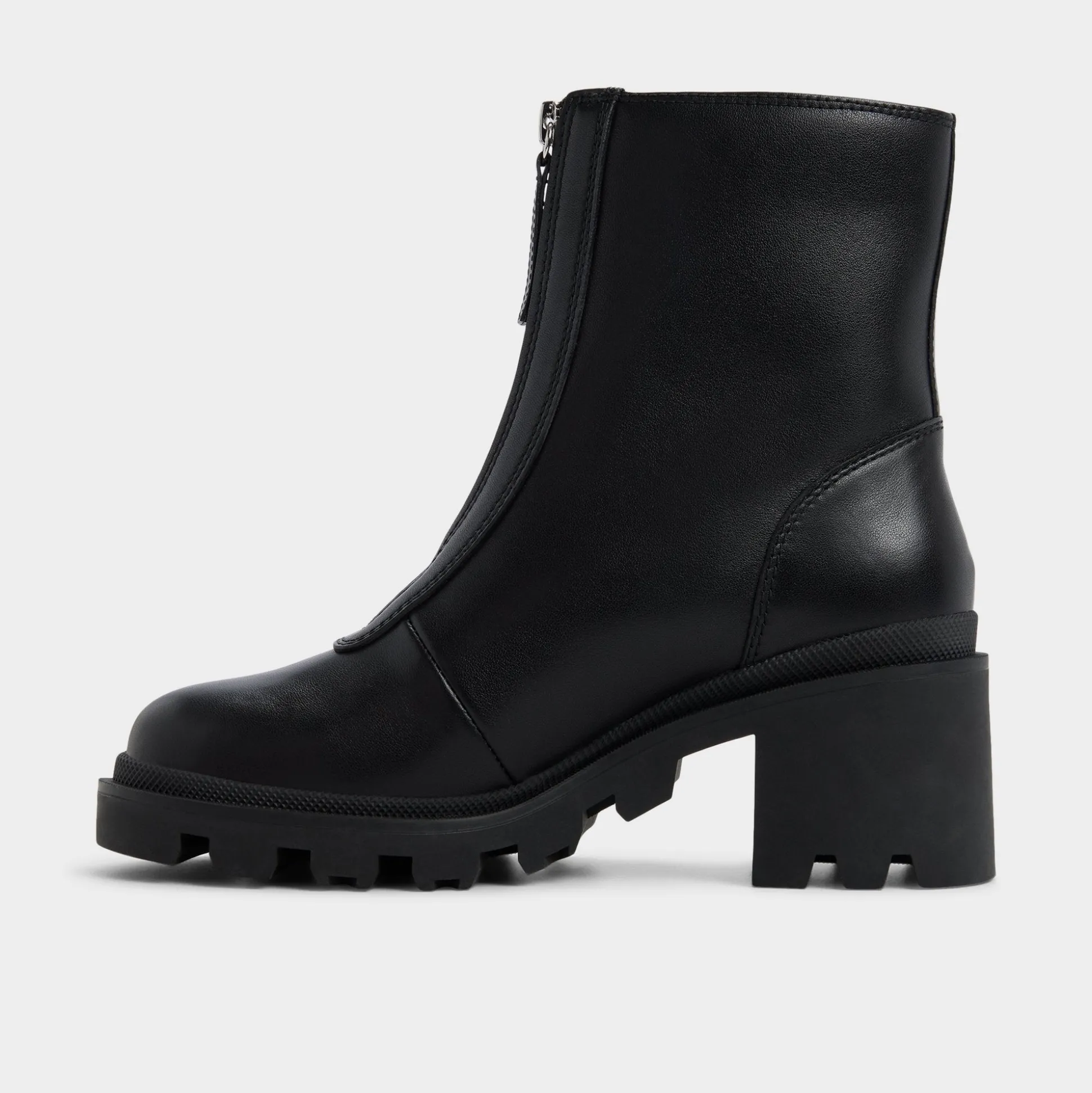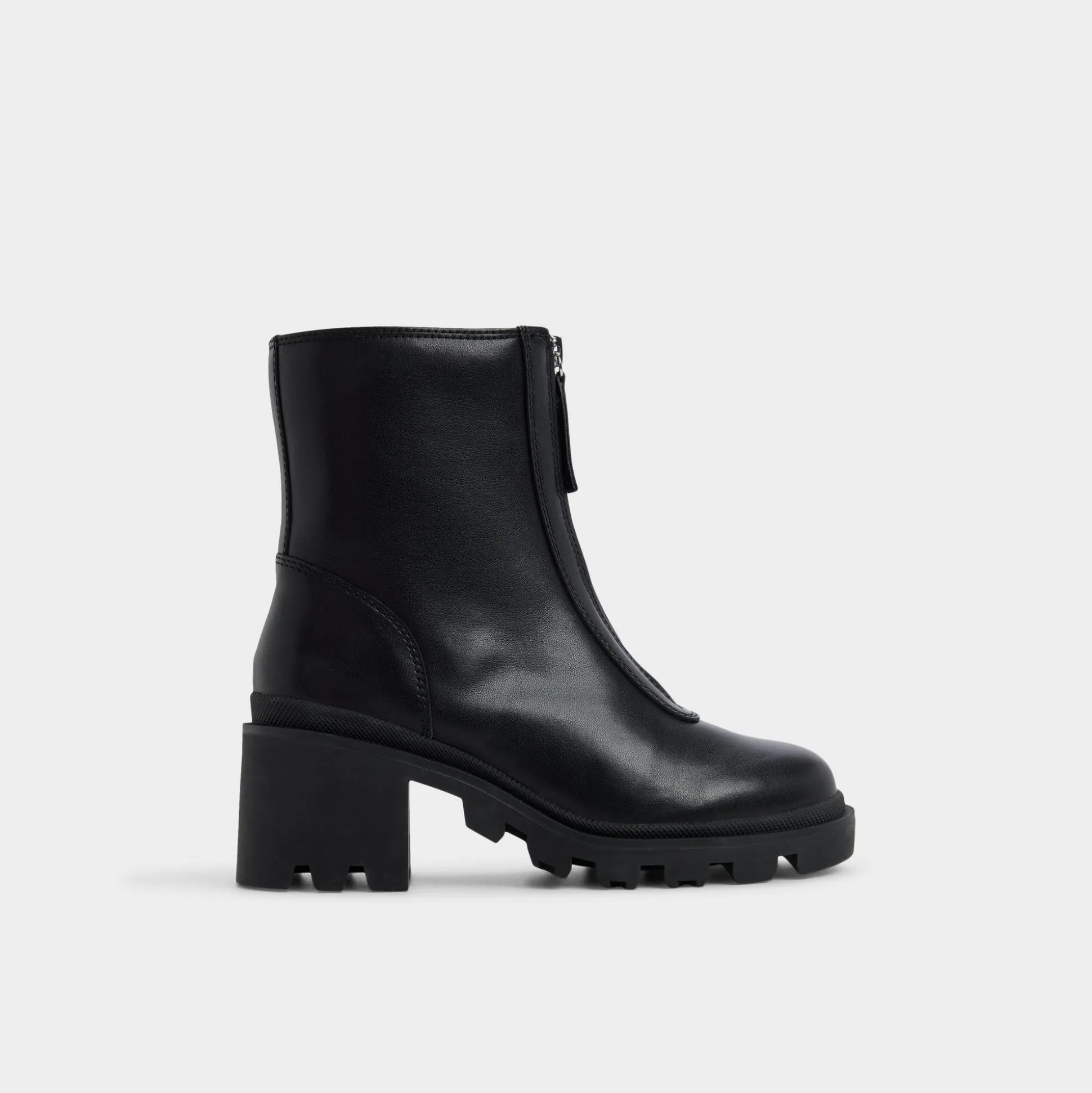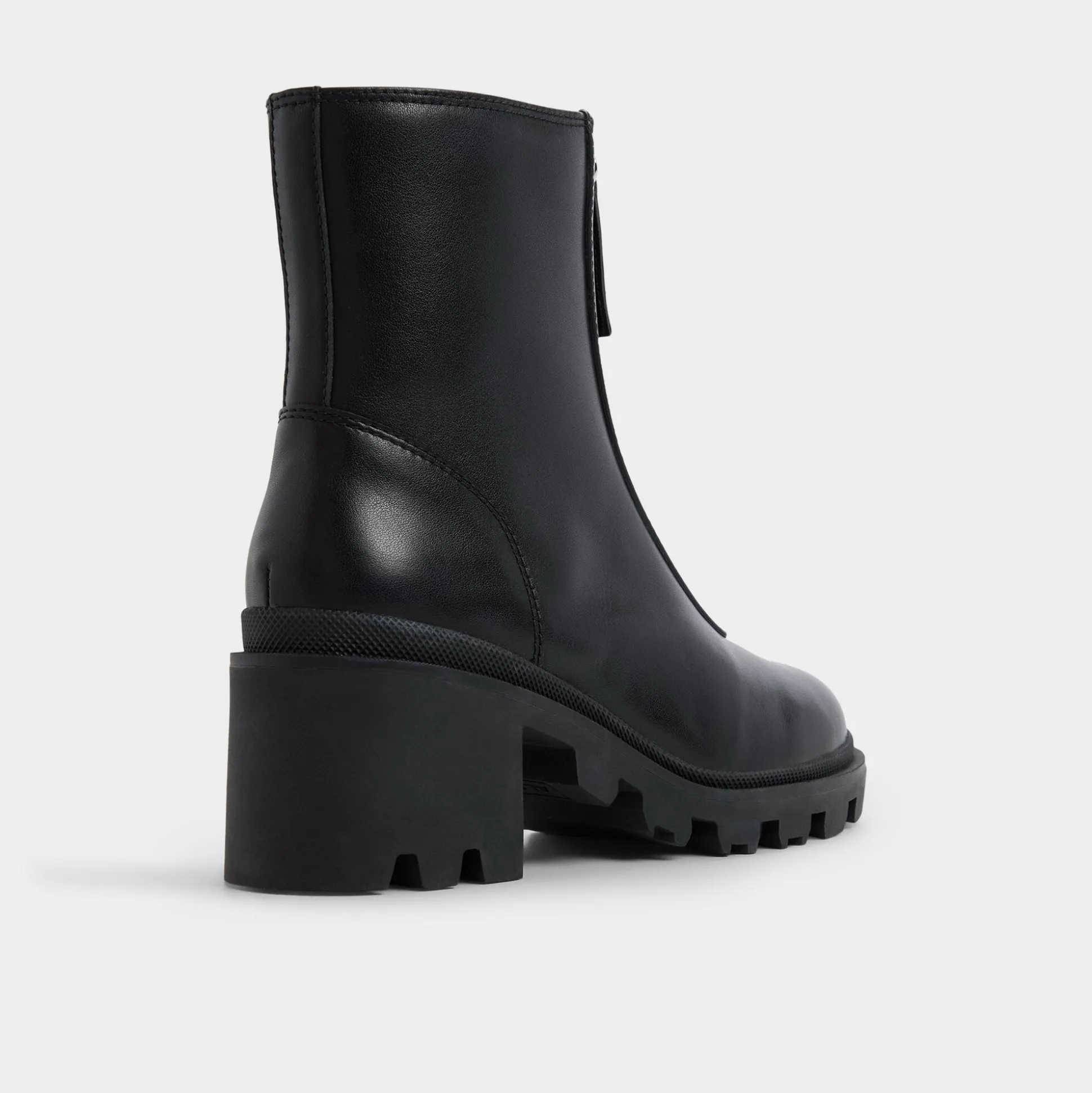 Supple black leather meets gutsy front zips, while a chunky lugged sole lends bold, confident stance from city sidewalks to late-night outings, and a refined silhouette keeps it poised for meetings and street-hungry weekends. Pair with cropped denim for city errands, or ground a sleek midi with a leather jacket for after-hours sips and rooftop moments.