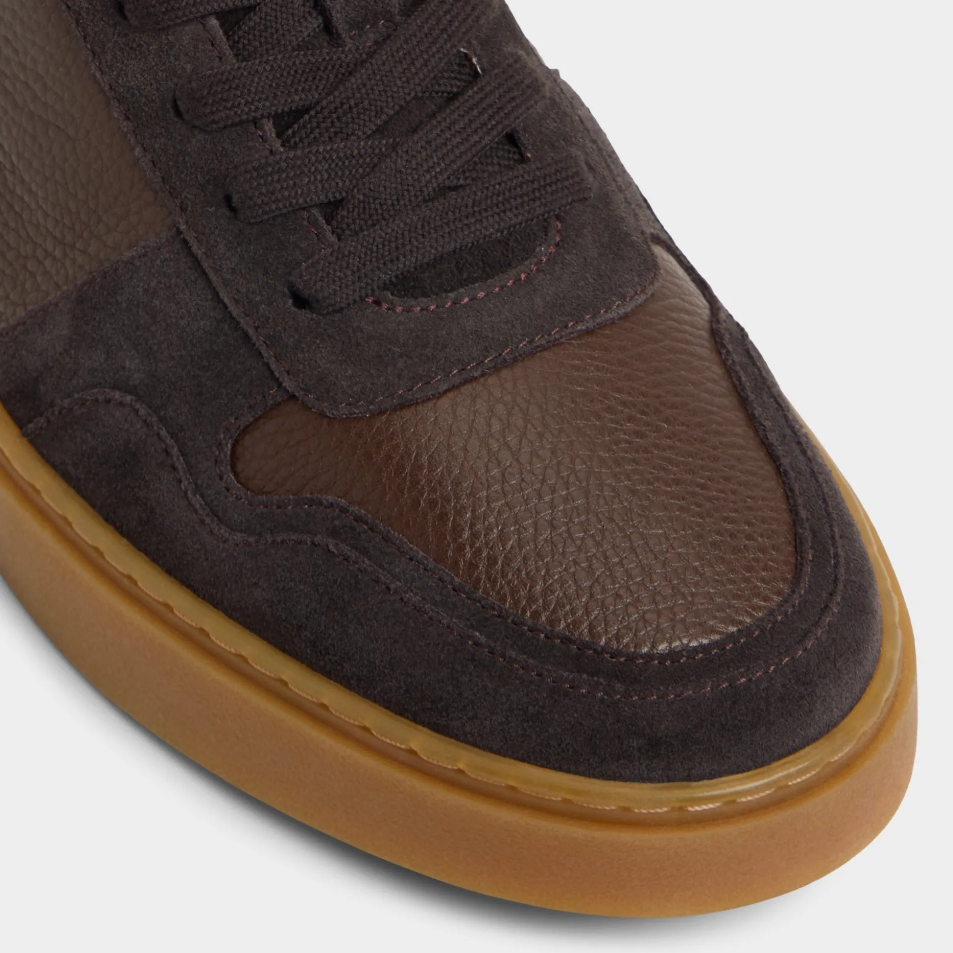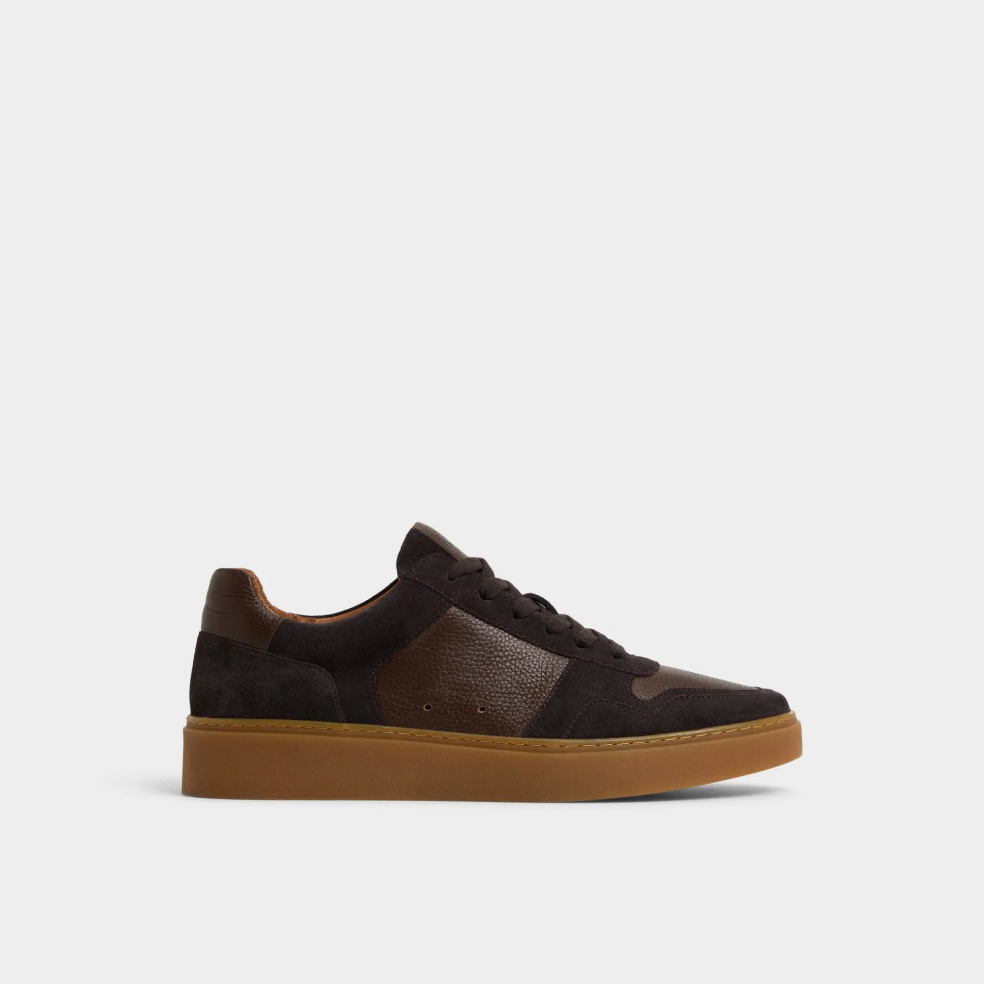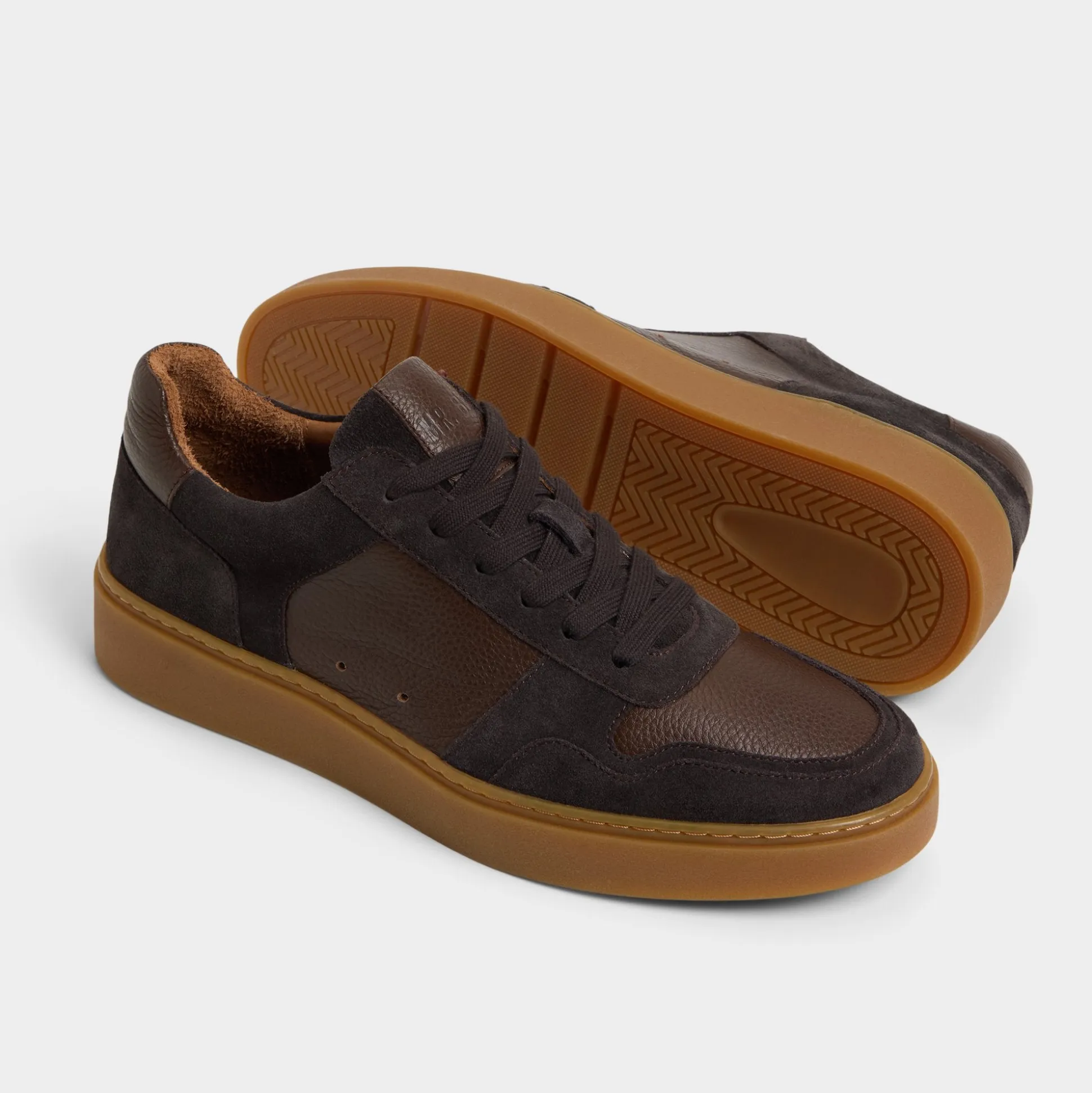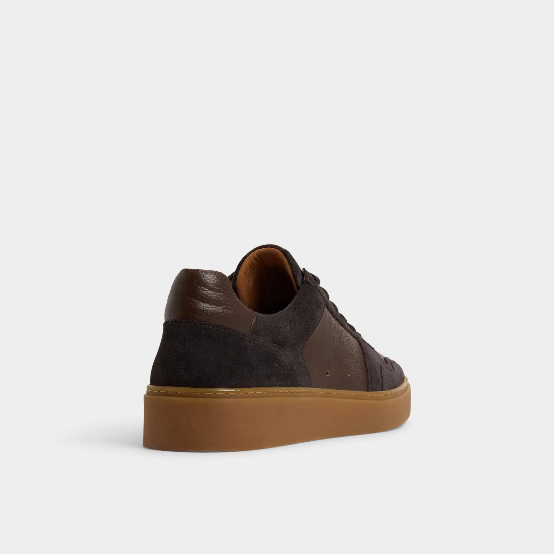Chocolate suede meets pebbled leather panels atop a gum cupsole in this low-top shoe, giving off retro vibes while the leather lining ensures comfort all week long. Pair them up with selvedge jeans for record-store hunts or tapered chinos at patio beers-the gum sole nails laid-back polish perfectly.