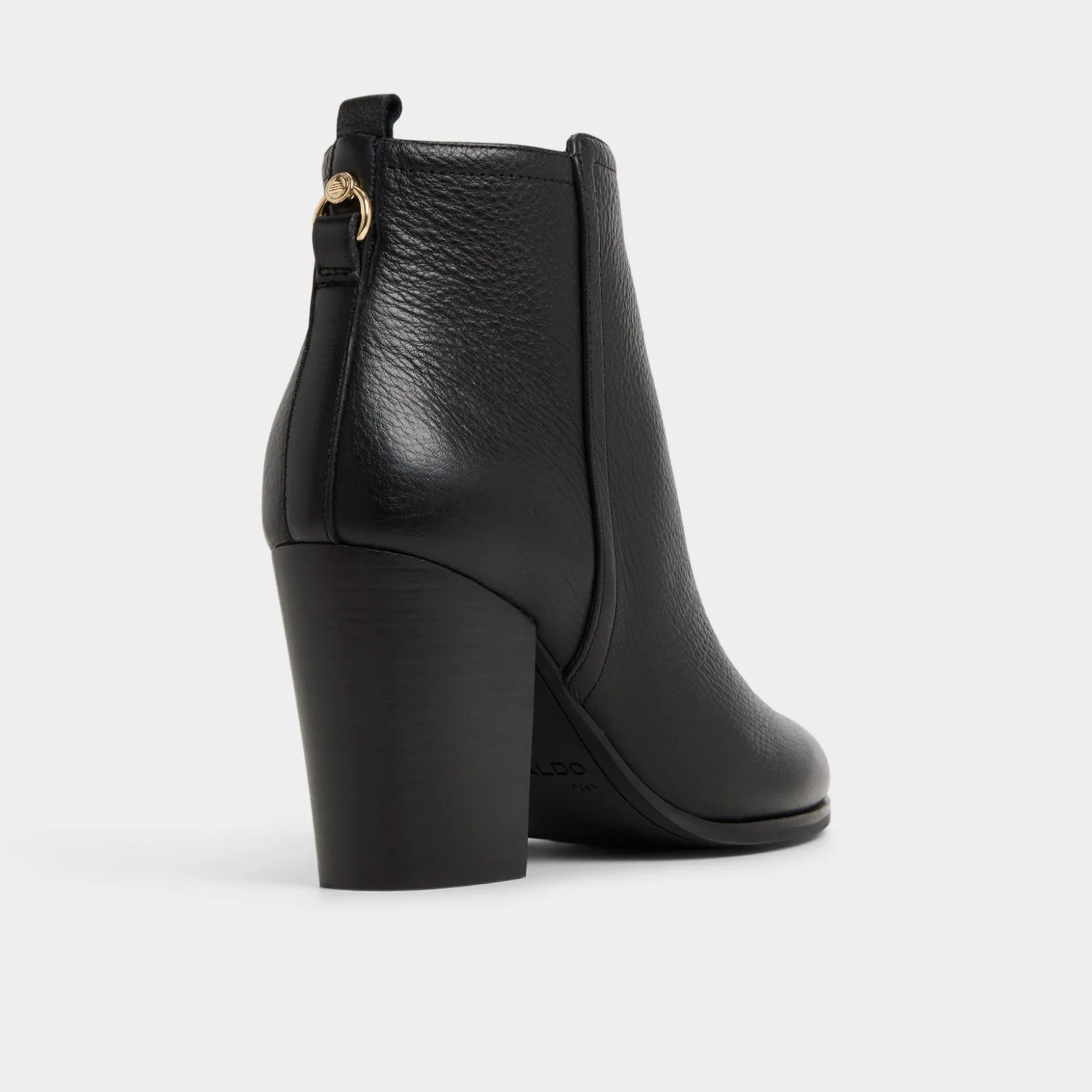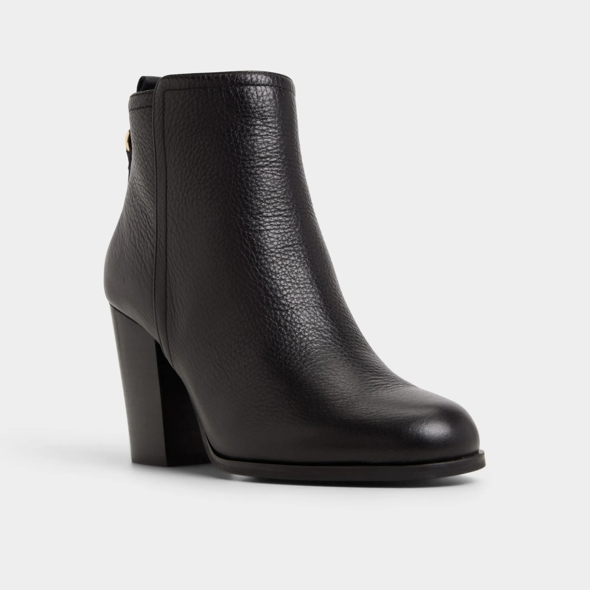 Richly grained leather shapes this sleek ankle boot, while a stacked block heel delivers steady lift as you breeze through packed agendas with downtown polish from the first meeting to the last. Pair with cropped trousers for office mornings, or slot beneath a satin midi as after-hours cocktails drift into city strolls.