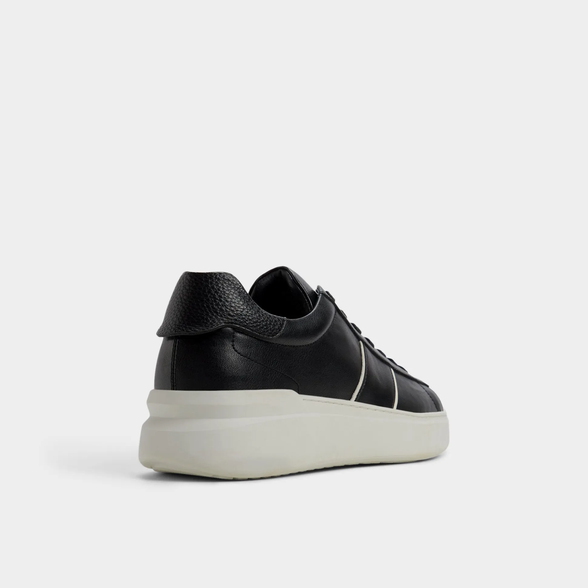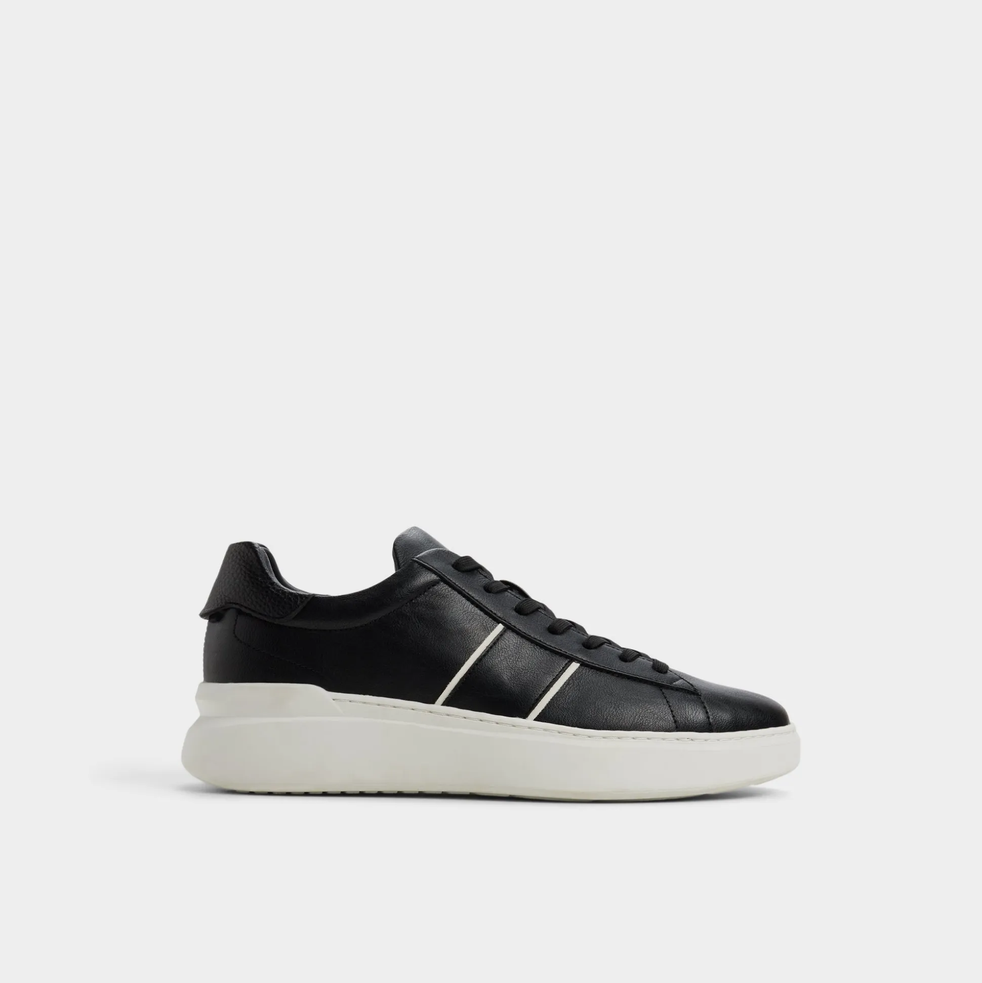 Midnight-black leather meets twin ivory stripes on this low-top, with an oversized cupsole that cushions like lounge sneakers, making city loops feel cloud-soft. Pair with cropped chinos for gallery visits or roll with joggers on flights-the contrast sole keeps style alert.
