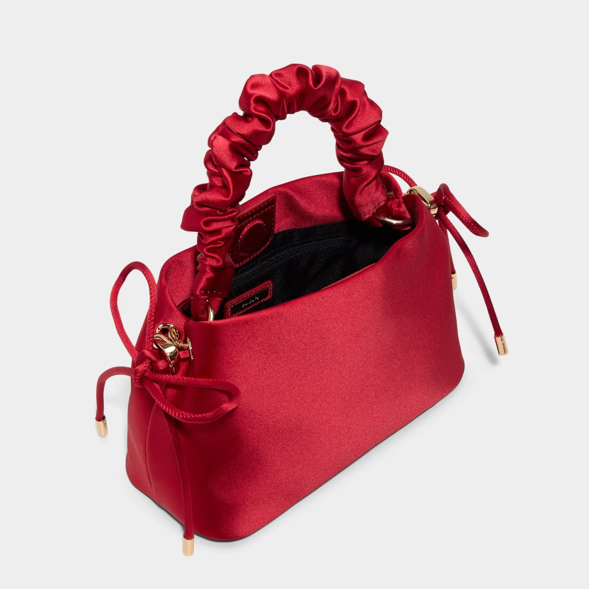 Meet Primaballerinaa—the handbag that twirls into the spotlight. This playful satin style features charming bows and a graceful ruched top handle for an undeniably feminine touch. Versatile and fun, it comes with a removable crossbody strap so you can carry it your way. Perfect for holiday gatherings and beyond.