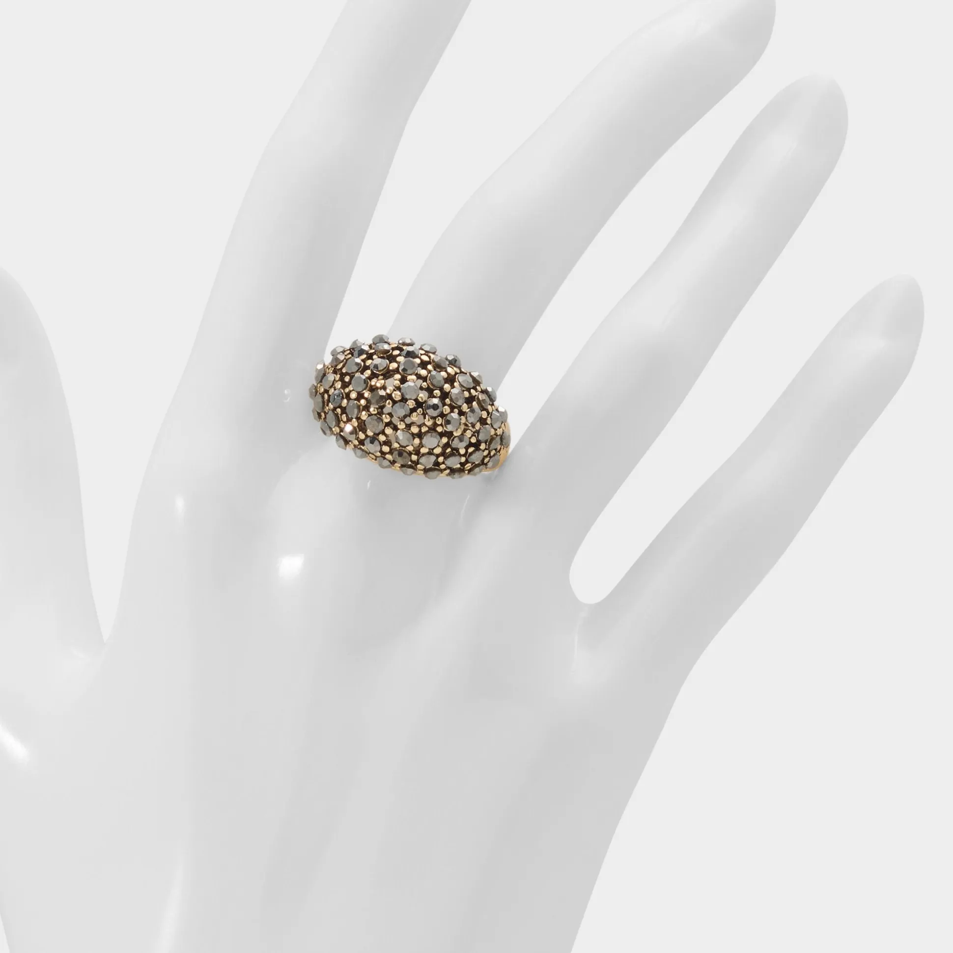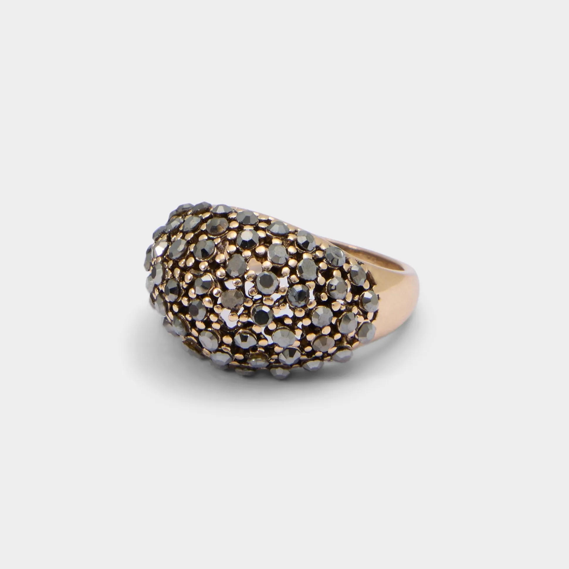 Midnight pavé blankets sculptural domes with rhinestones that catch light like city windows at dusk, turning the cocktail rings into conversation magnets for evenings that glow. Layer them with a slip for a look, or stack the bands beside a knit for coffee catchups.