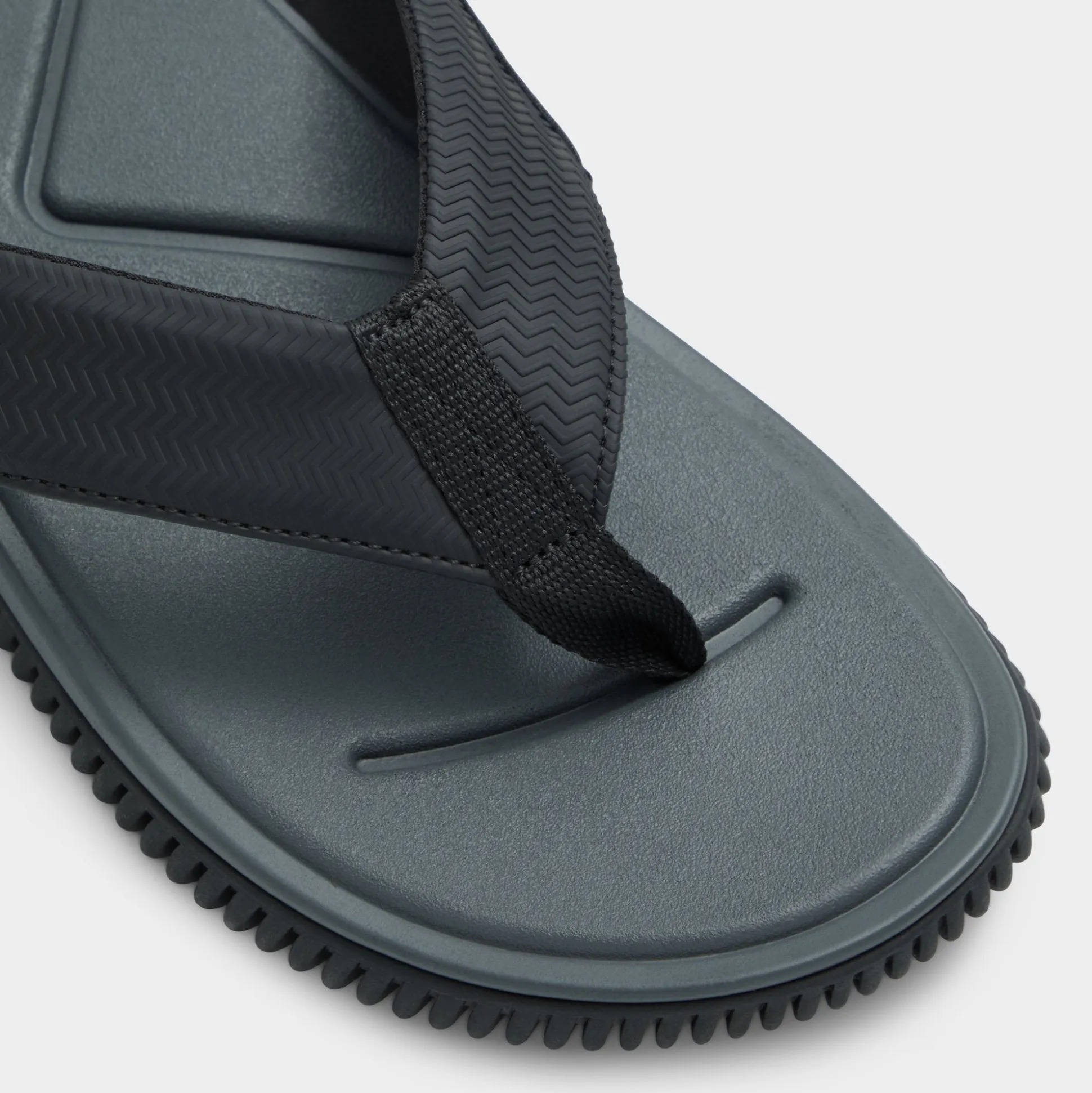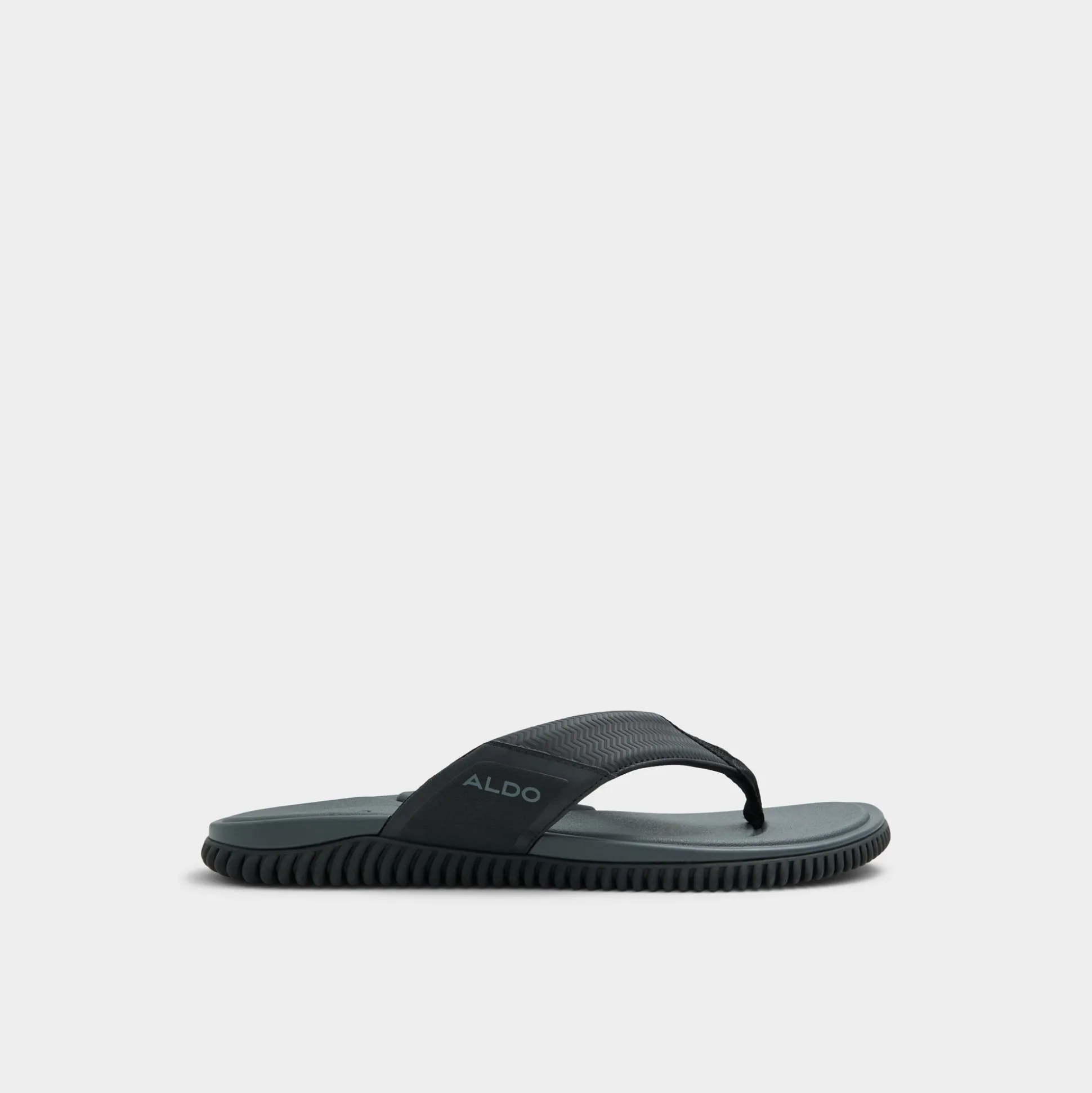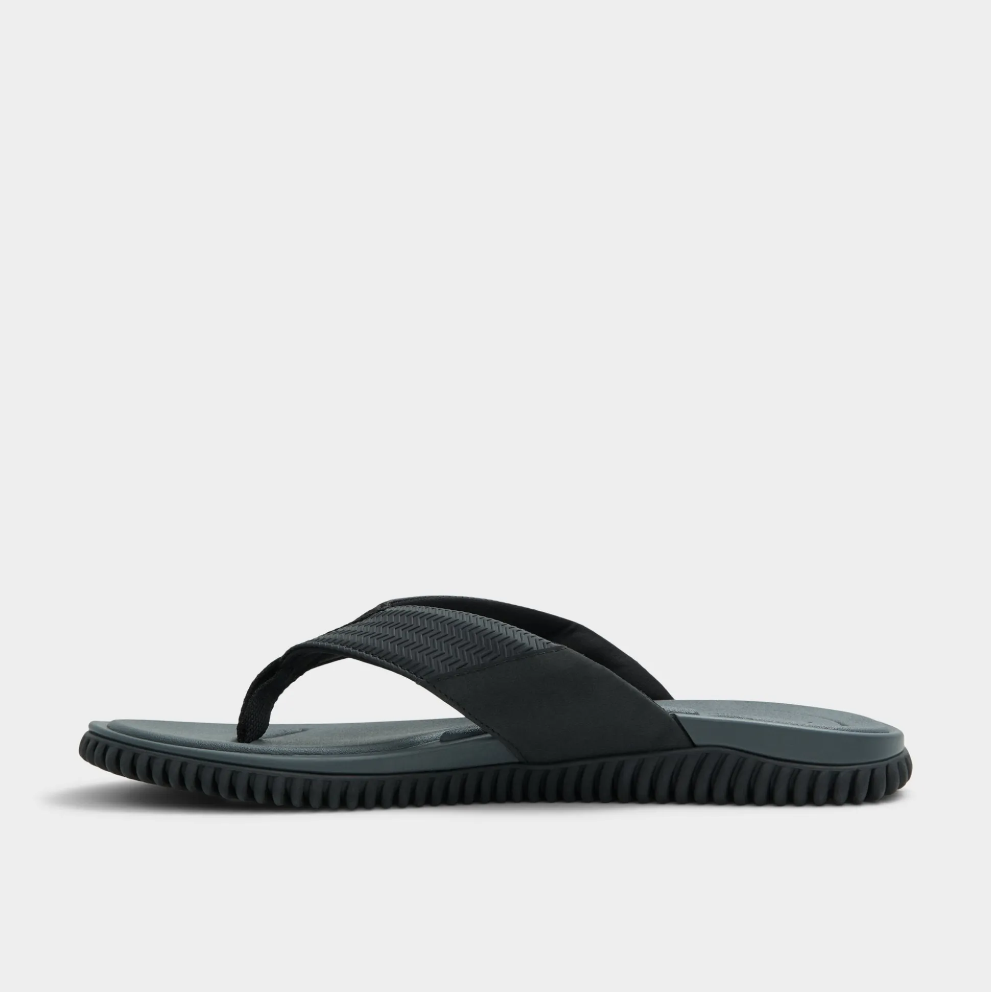 Ripple-textured rubber underfoot meets a strap on these black flip-flops, delivering grip and a featherlight cupsole. Wear them with swim trunks for spontaneous dips or with cuffed joggers for coffee outings, and a low-key logo keeps the look streamlined for beach days, city strolls, or casual dates.