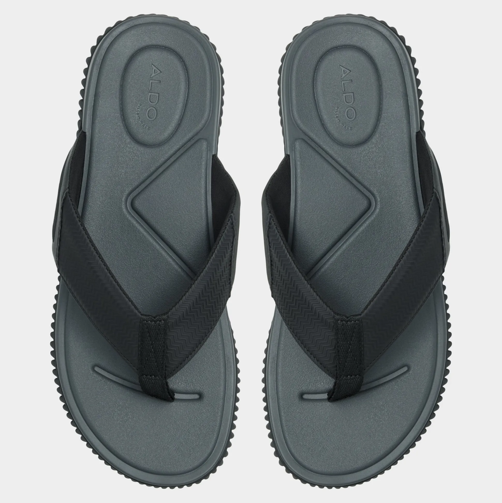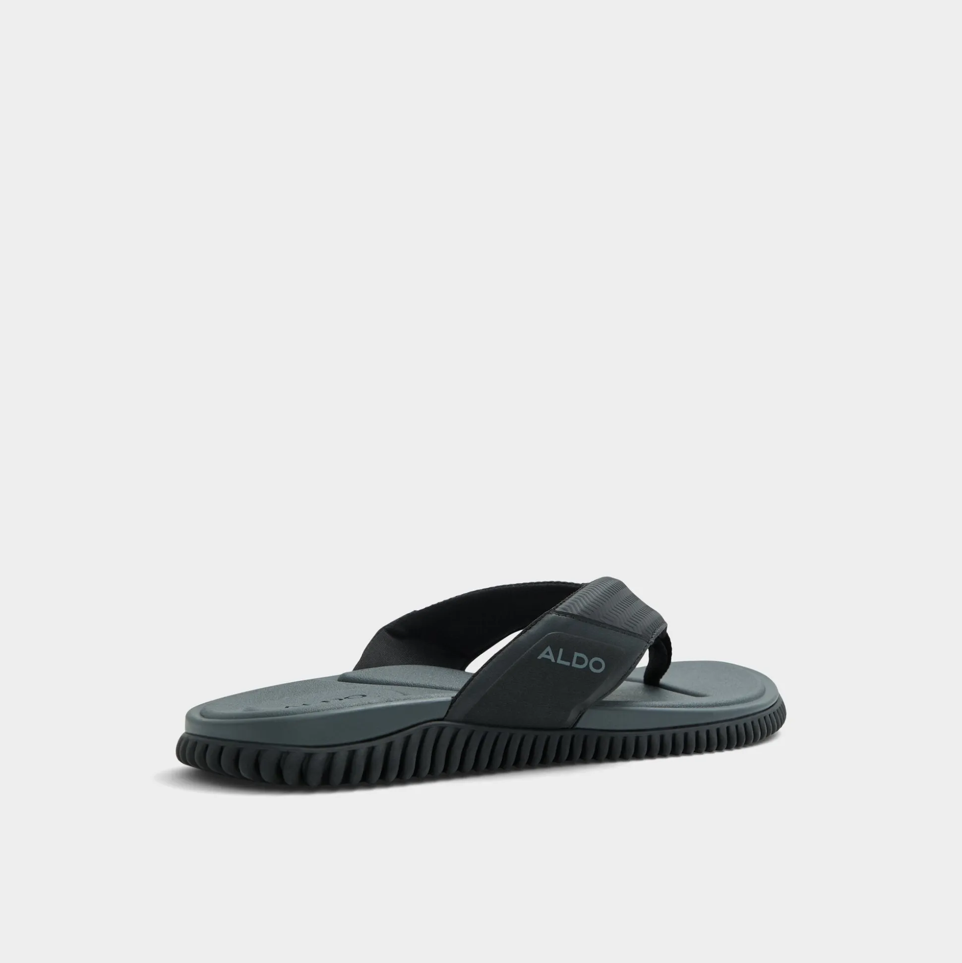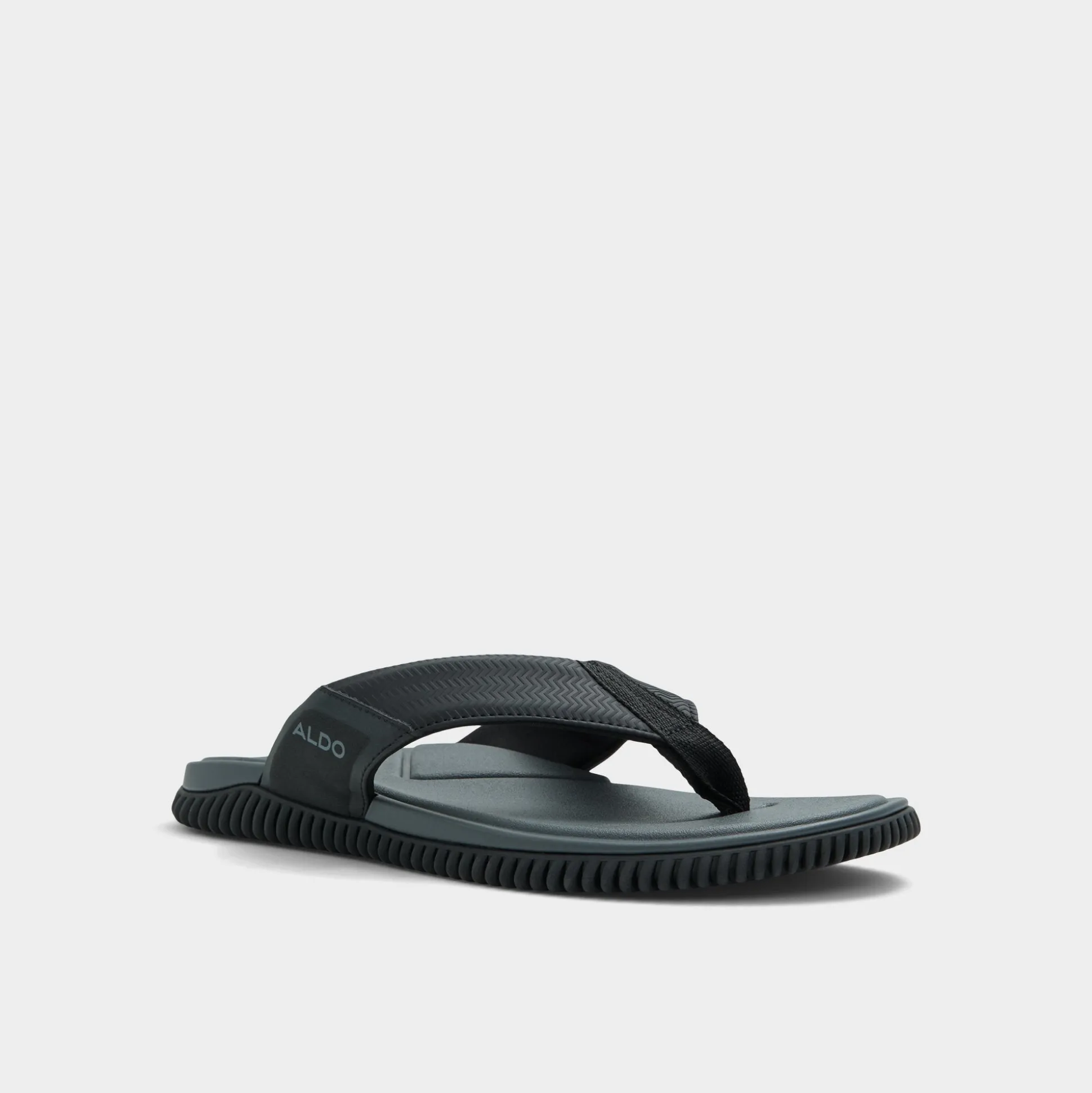 Ripple-textured rubber underfoot meets a strap on these black flip-flops, delivering grip and a featherlight cupsole. Wear them with swim trunks for spontaneous dips or with cuffed joggers for coffee outings, and a low-key logo keeps the look streamlined for beach days, city strolls, or casual dates.