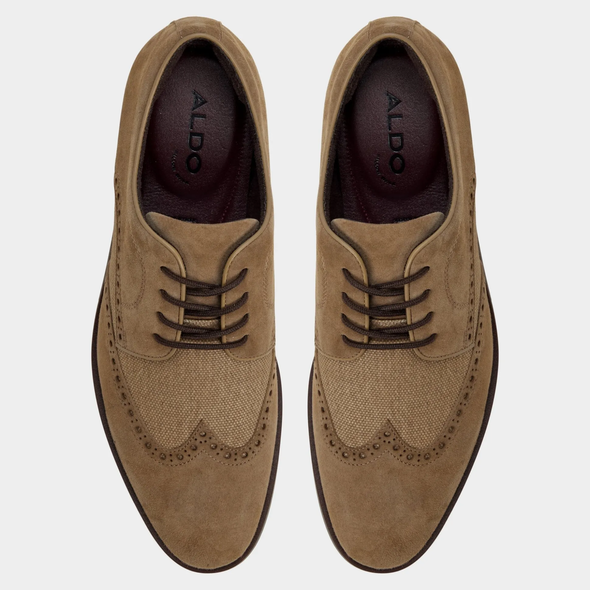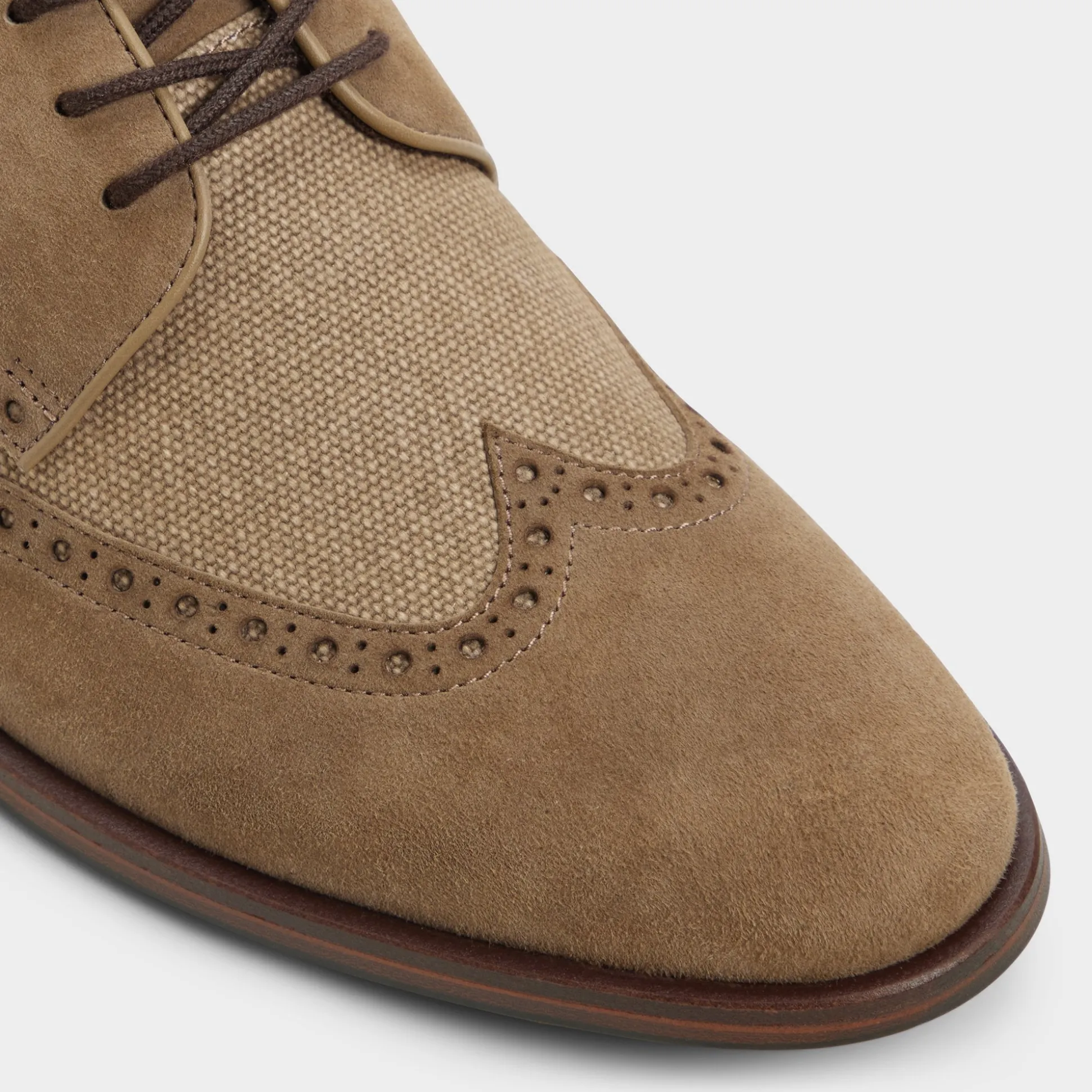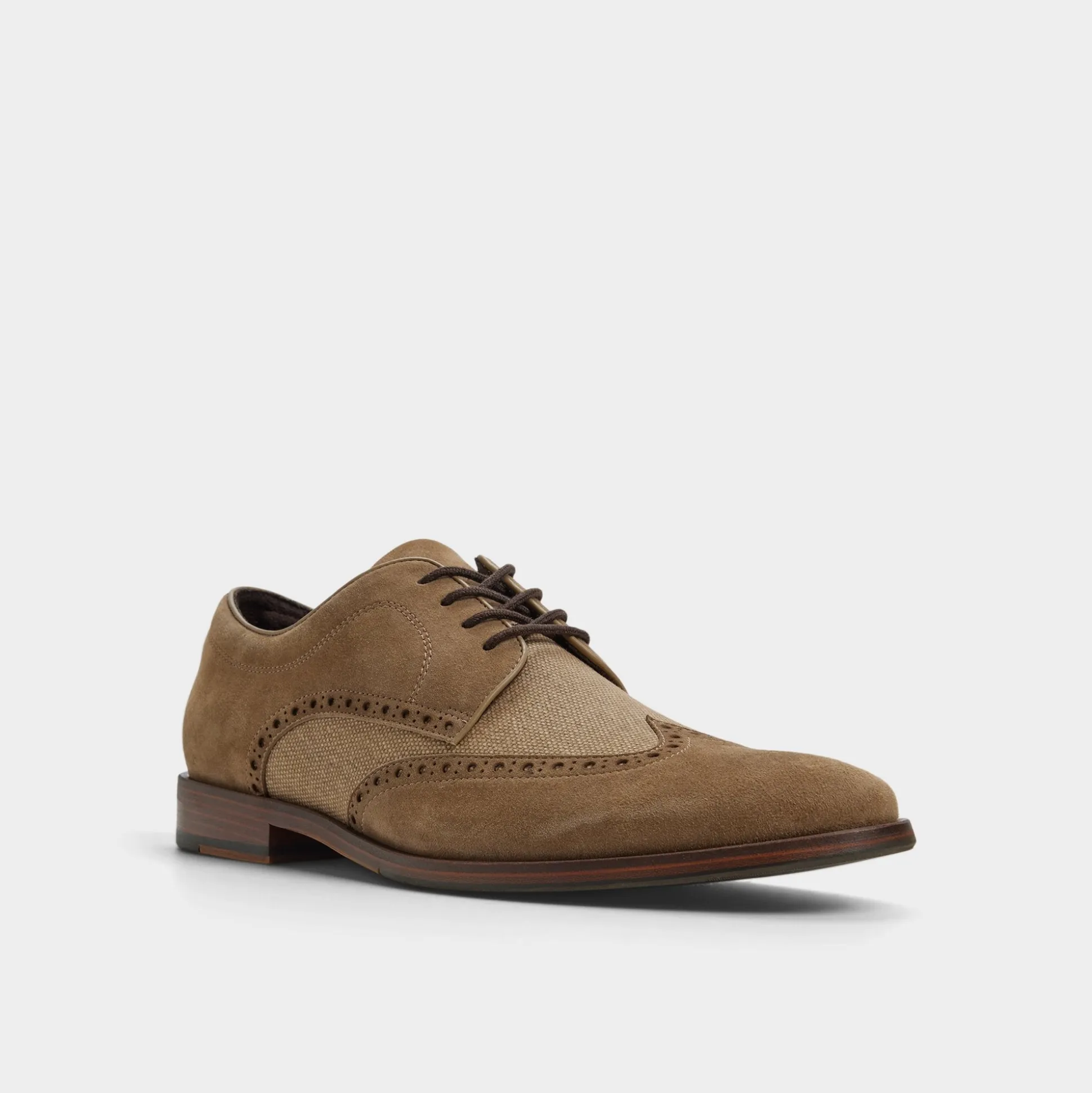 Brogue perforations frame suede wrapped around textured canvas quarters, sharpening the almond toe and a soft, leather-lined cupsole smoothing every step for city days and longer strolls. Anchor a navy suit for Monday pitches, or roll with chinos for patio dinners—the finish plays nicely anywhere.