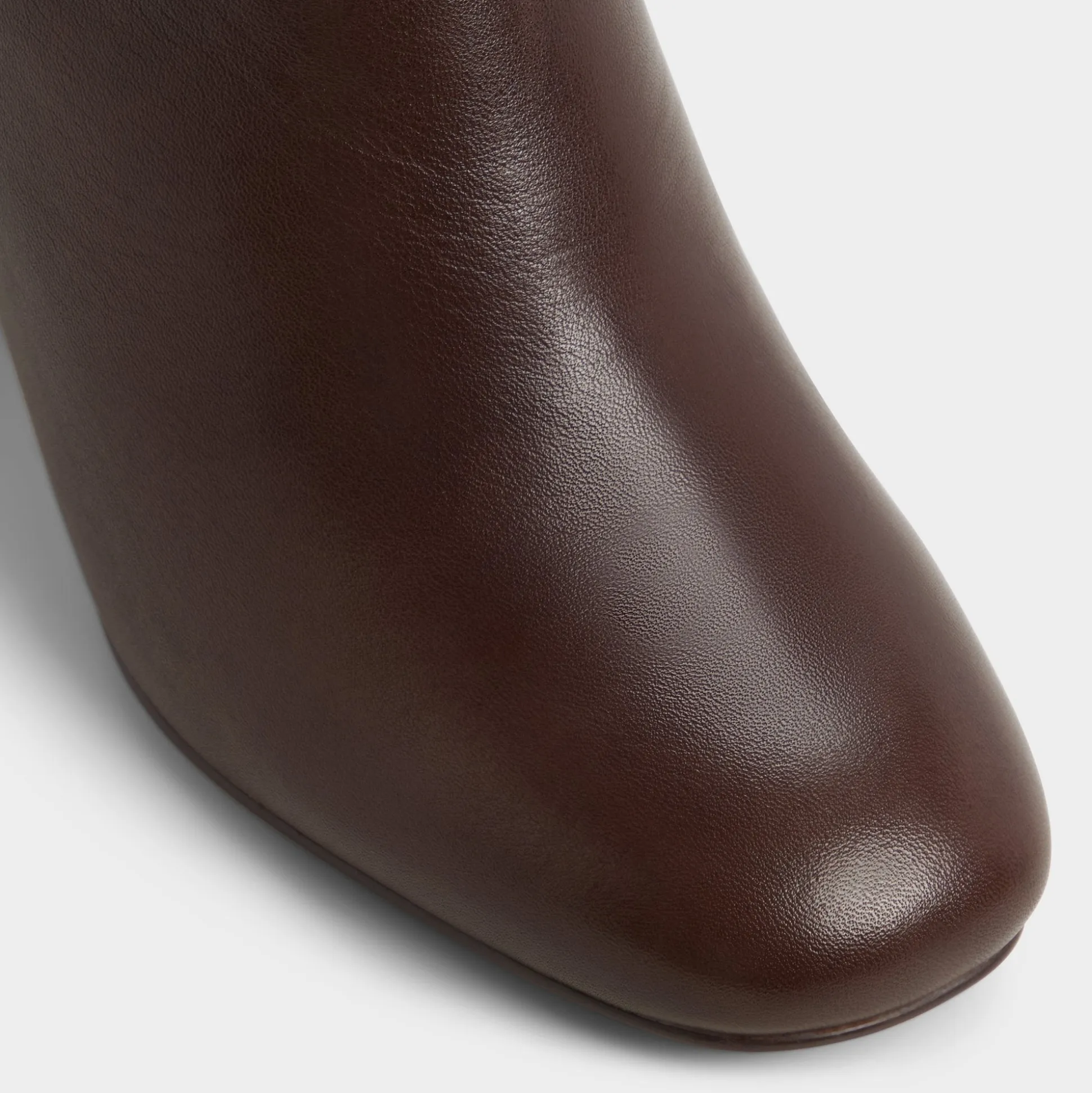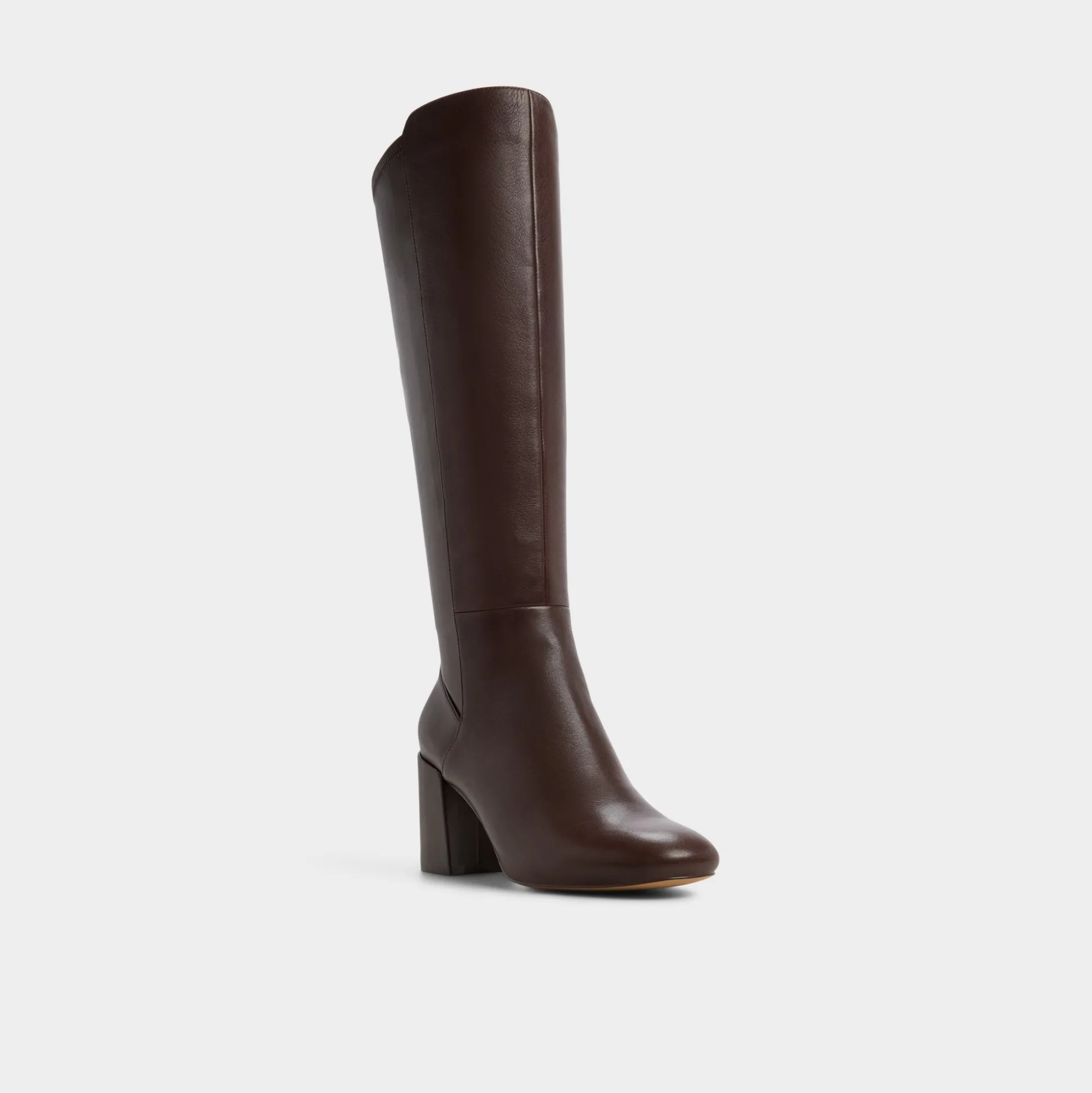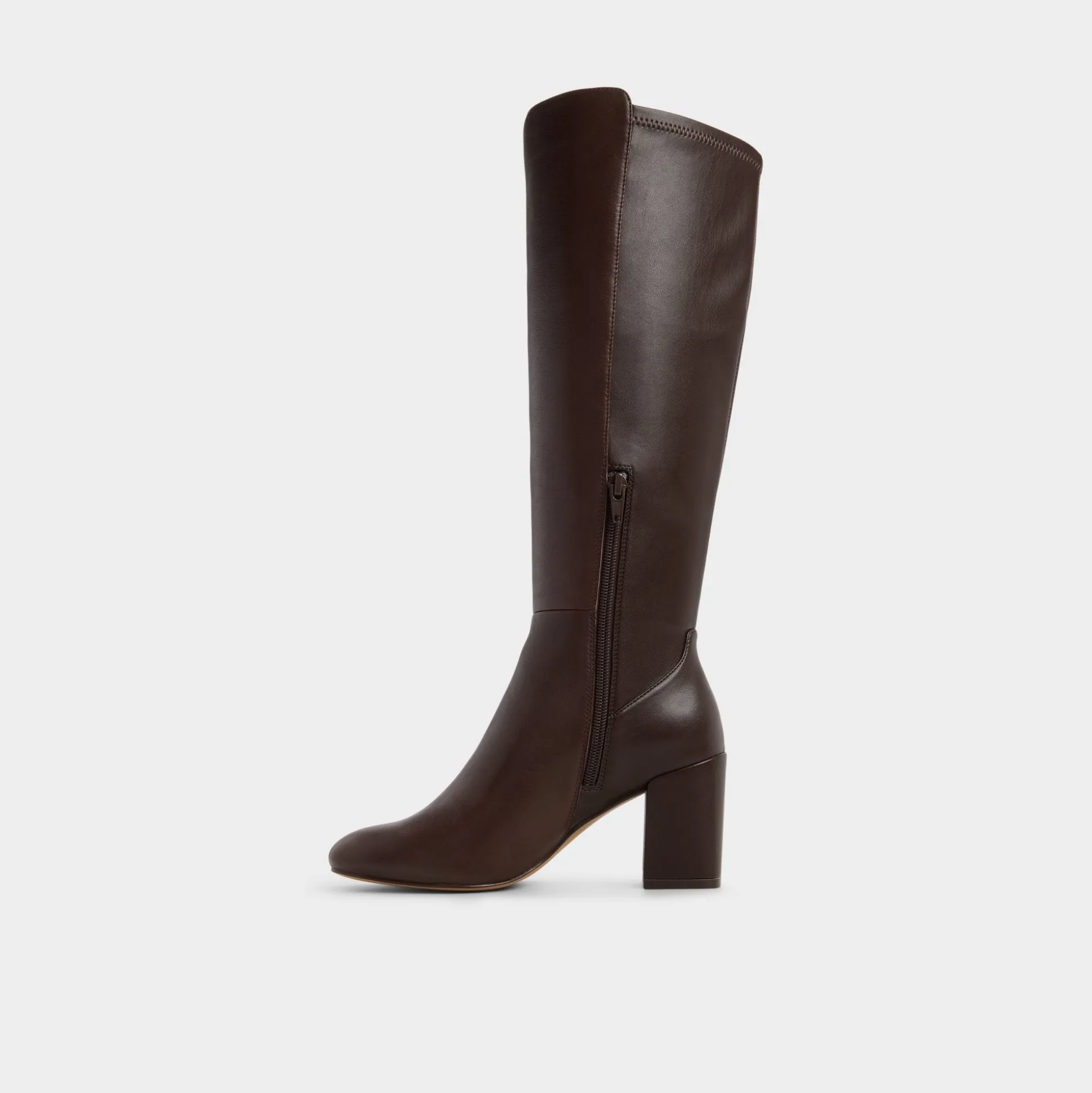 Coffee-brown leather cloaks the knee in a sleek, knee-high silhouette, while a discreet block heel and side zip mingle polish with everyday confidence for city sprints and cozy evenings. Pair with a sweater dress for crisp commutes, or slip over skinny denim when patio catch-ups stretch past sunset.