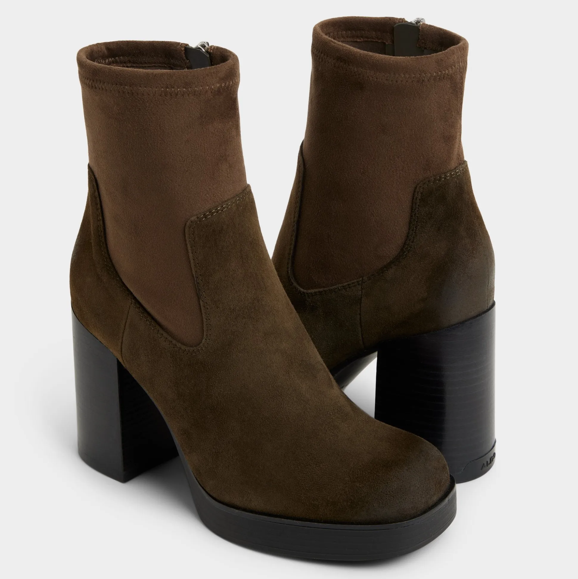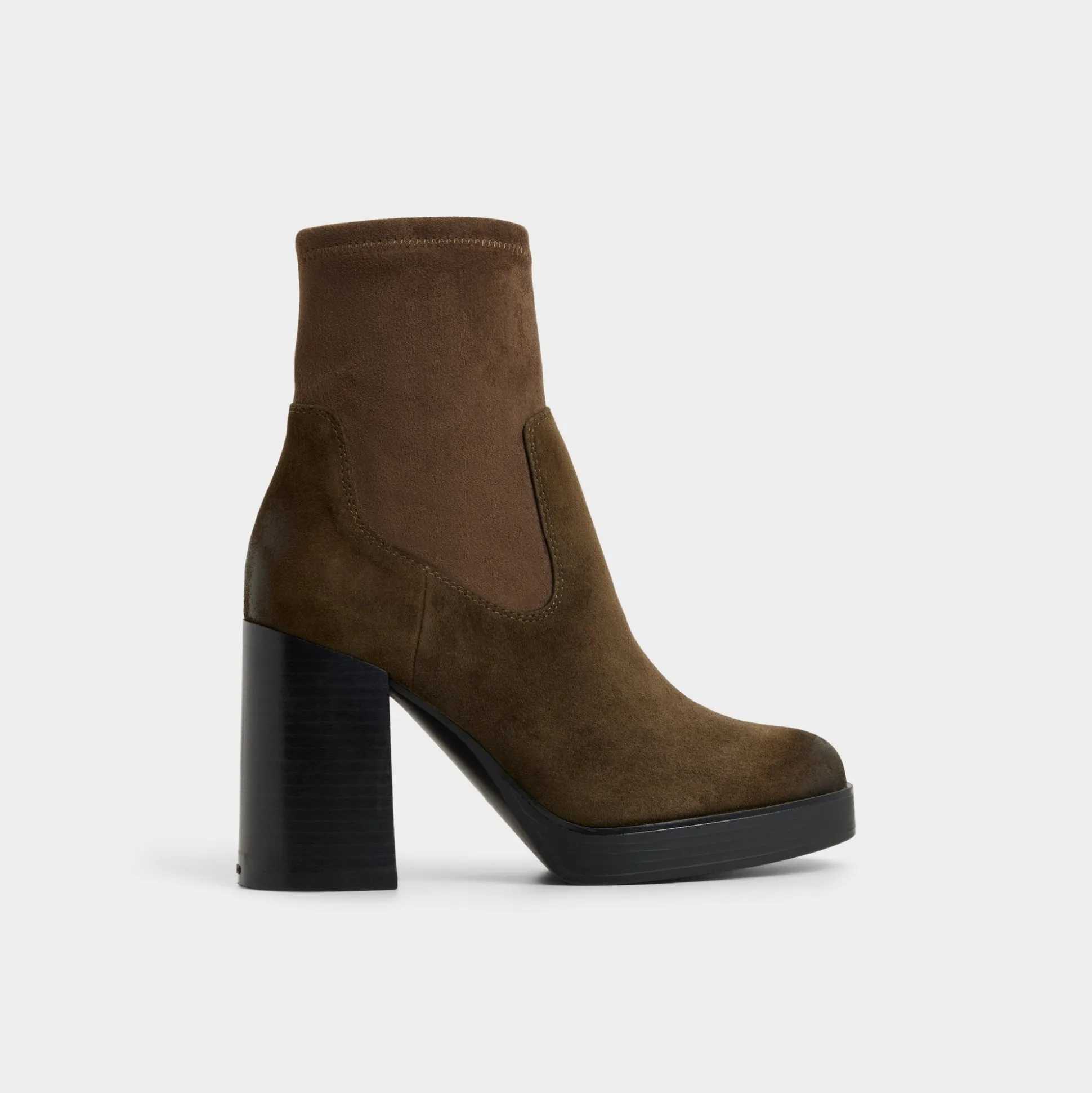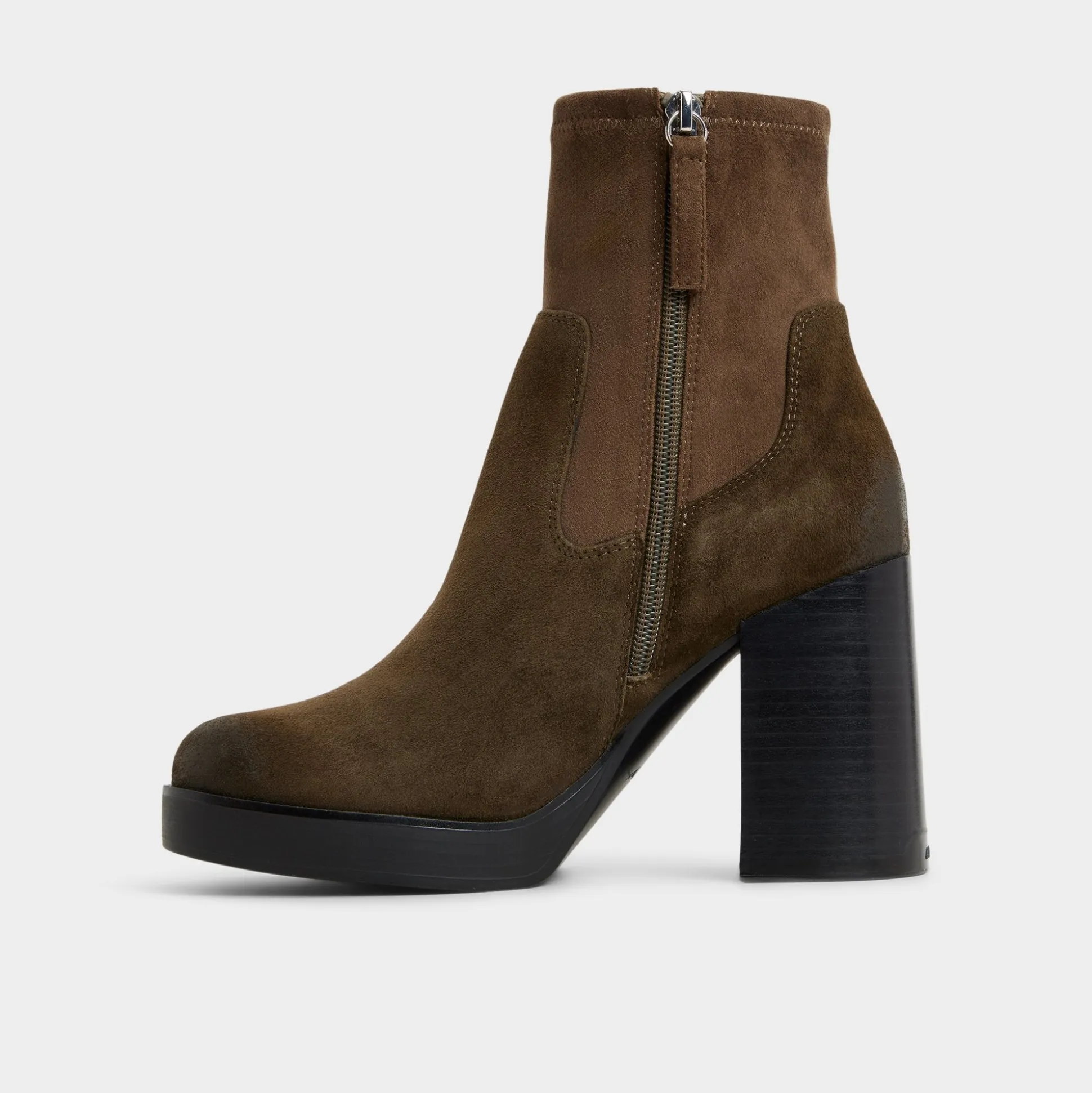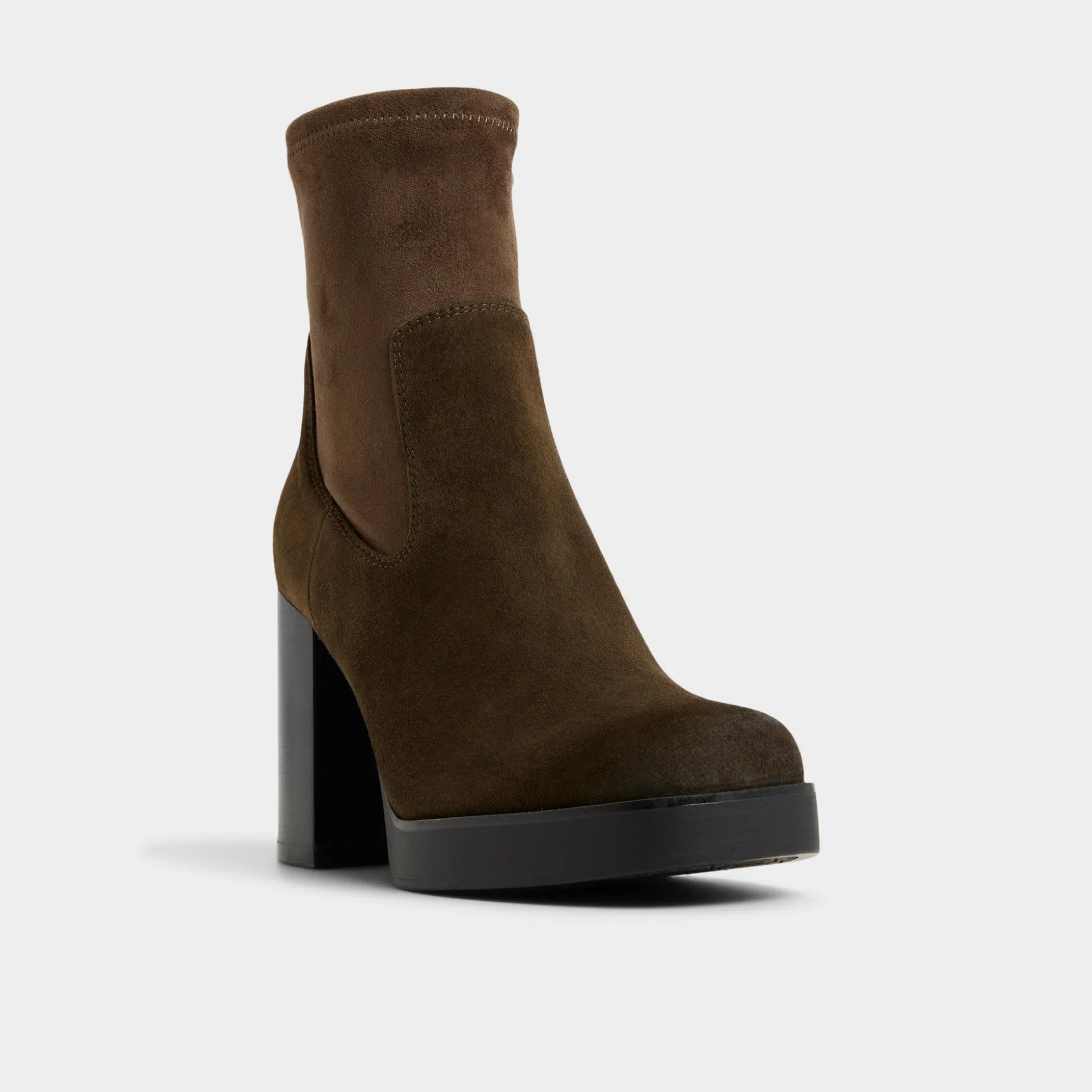 Velvety suede embraces a stretchy ankle shaft while a lofty block heel on a stealth platform gives instant altitude with flat-like stability-perfect for city crosswalks and after-dark plans alike. Pair with cropped jeans for coffee-run chic or slip under sweater dresses when rooftop cocktails turn into moonlit strolls.