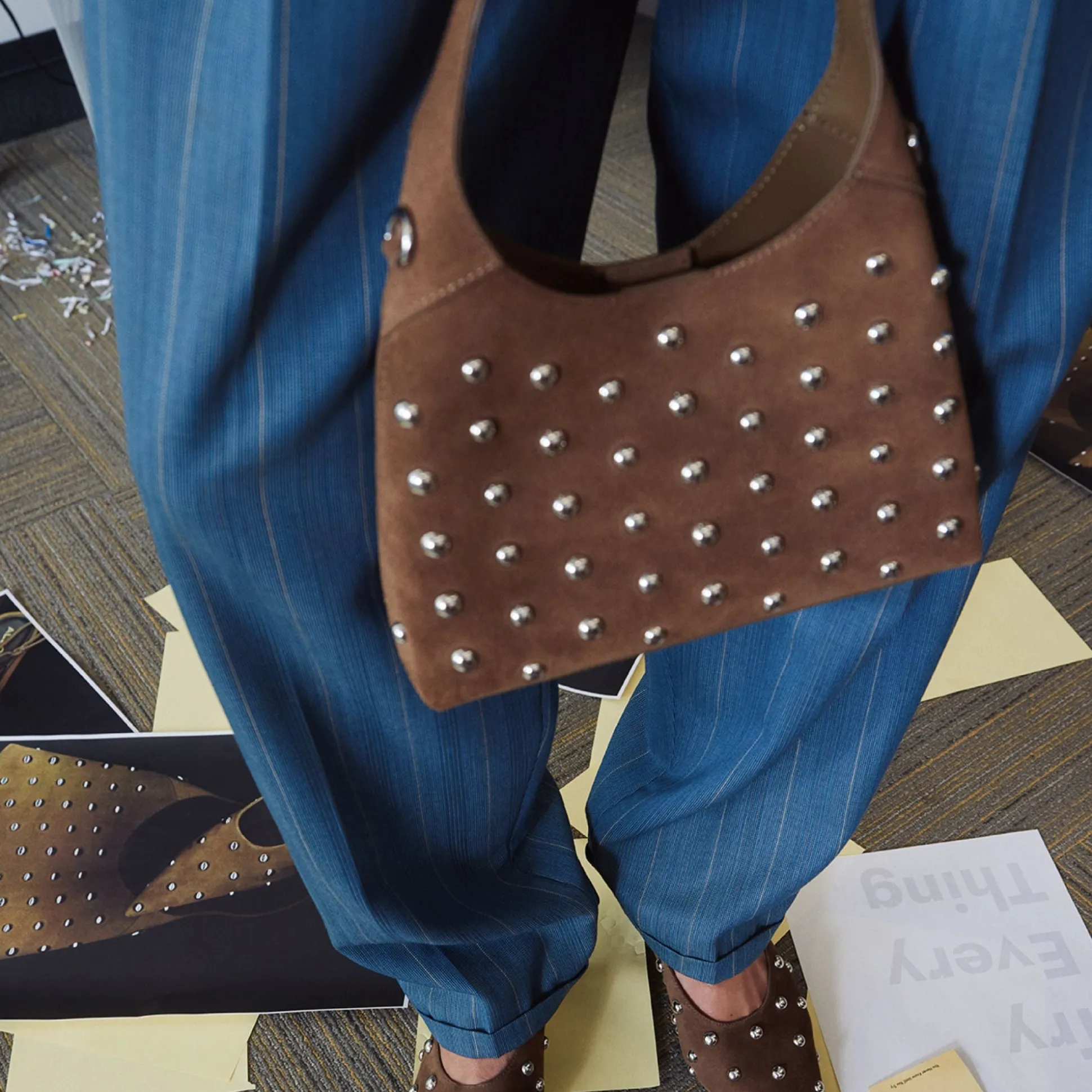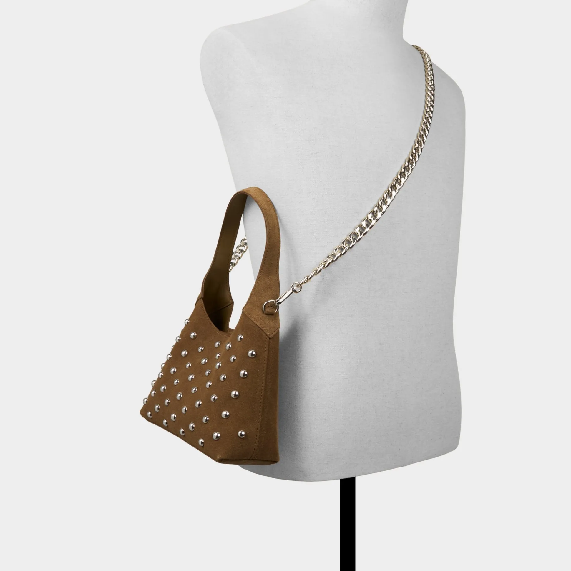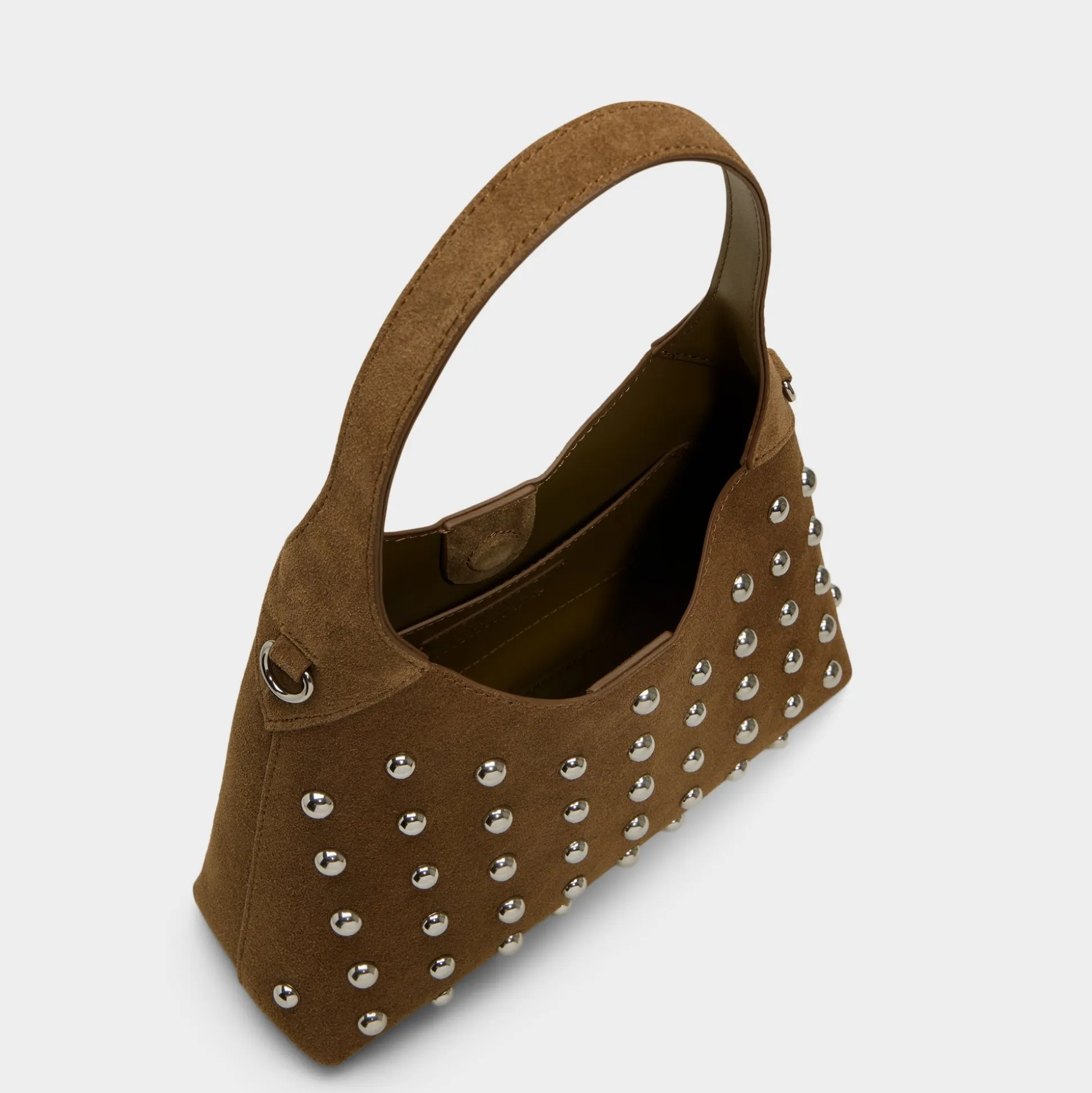 Polished silver studs illuminate the softly structured hobo silhouette, turning supple leather into wearable disco vibes while an easy magnetic snap secures phone, gloss, and more inside. Carry it with a satin cami and jeans on coffee dates or tuck it underarm at after-hour gigs to complete the vibe.