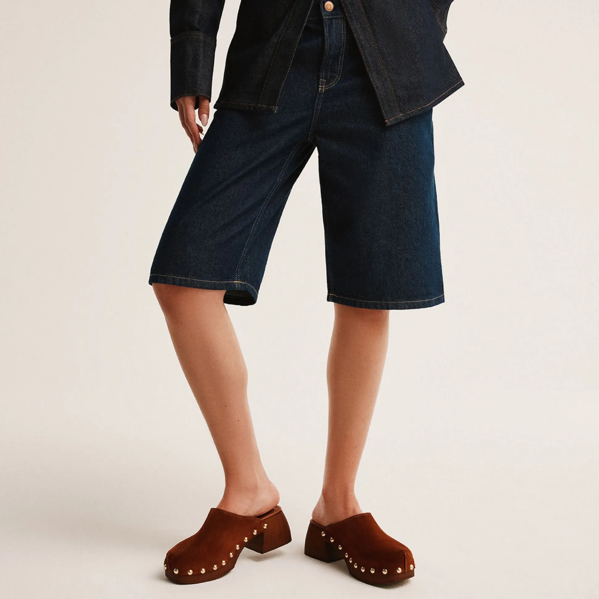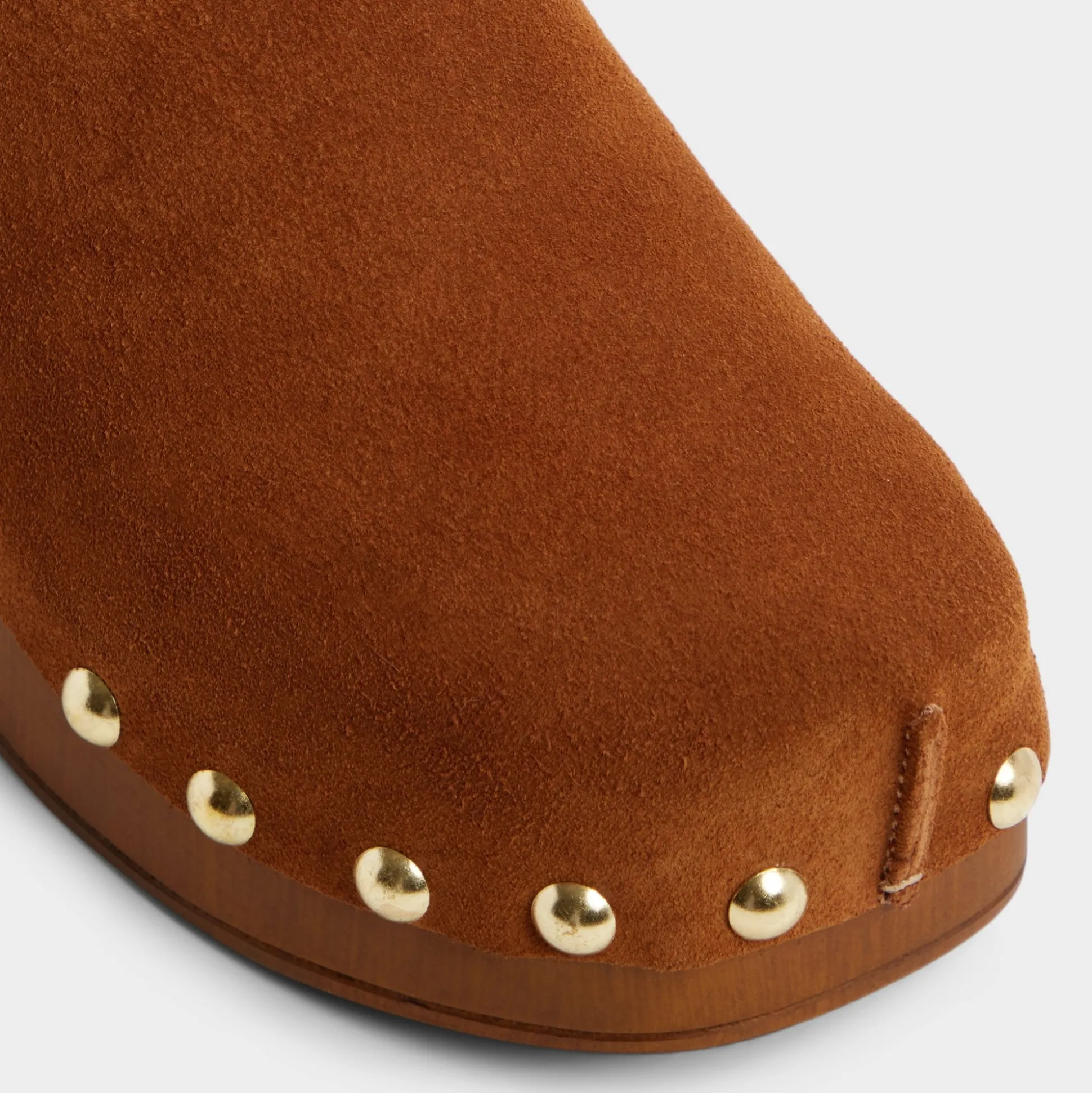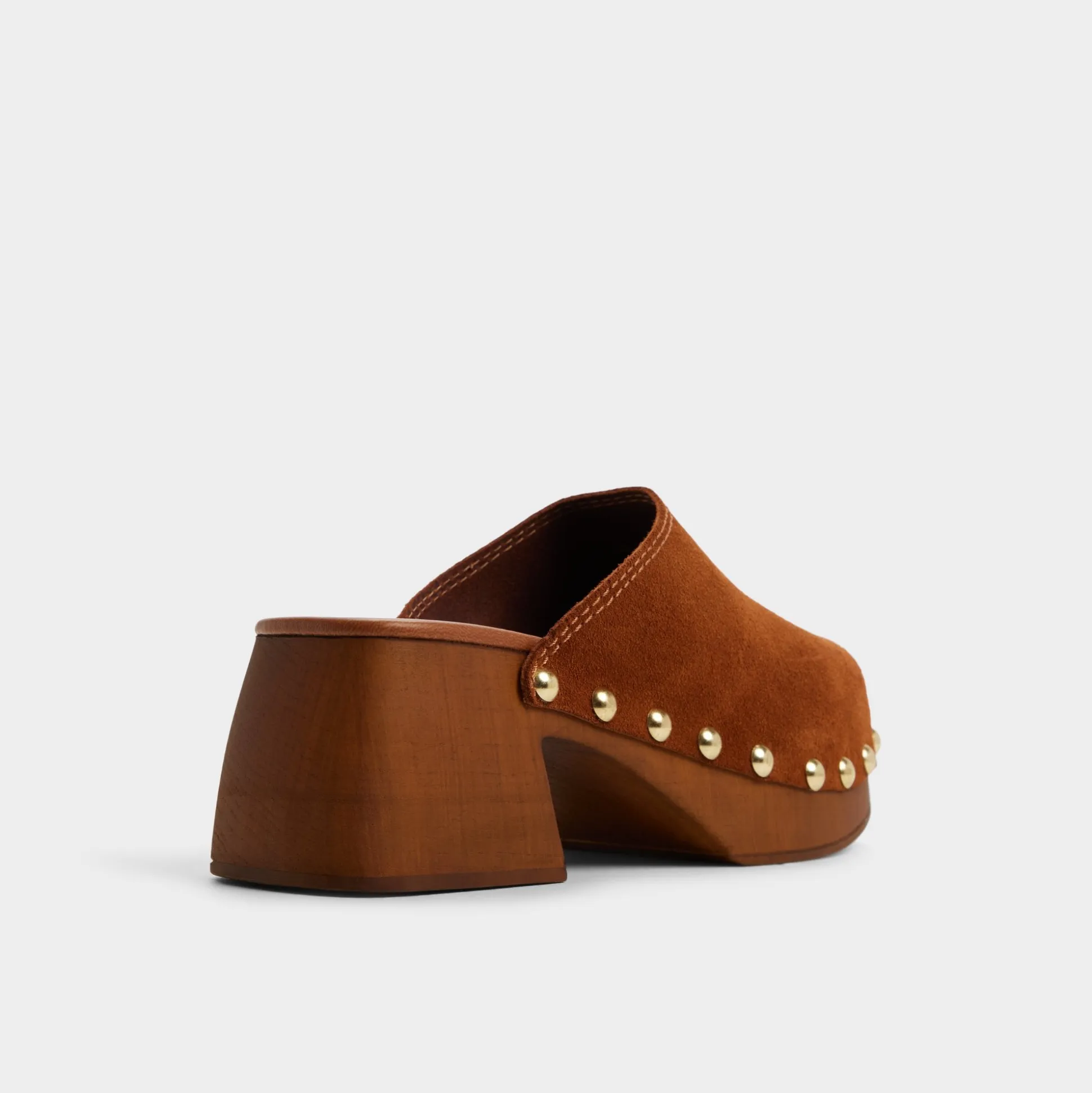 Soft suede drapes a sculptural wood clog sole crowned with gleaming studs, while a cushioned insole keeps city errands light, making every step feel balanced, grounded, and unexpectedly chic. Pair with cropped flares for coffee catch-ups, ground a prairie dress for easy festival days, or swap in linen separates to keep style effortless from dawn to dusk.