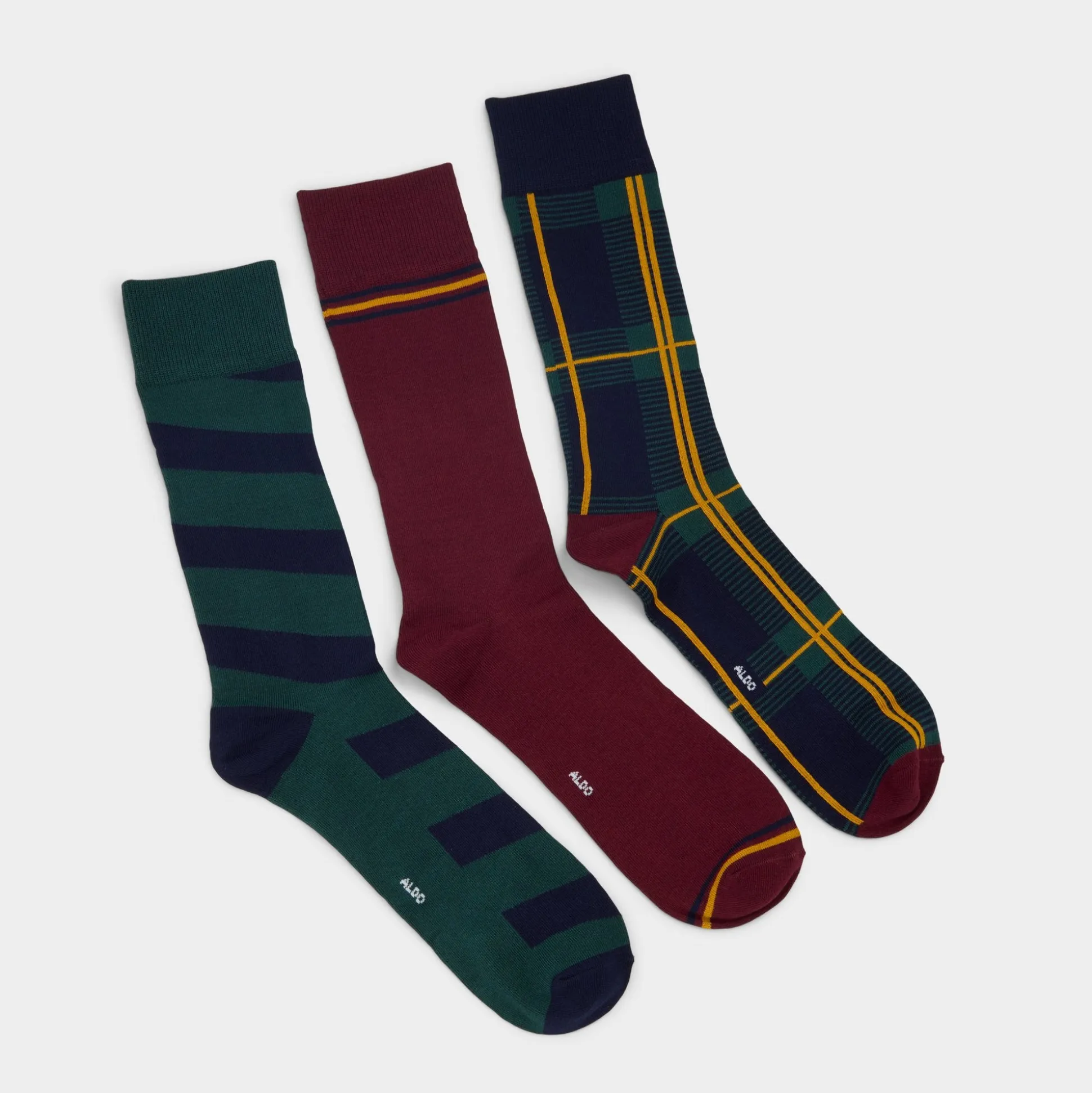 Varsity-style stripes and bold plaid patterns weave through this cotton trio, offering breathable comfort and a pop of preppy color every time ankle-length hems shift or shoes come off. Let them peek from loafers on campus coffee runs, or anchor chunky boots during weekend city strolls for low-key personality.