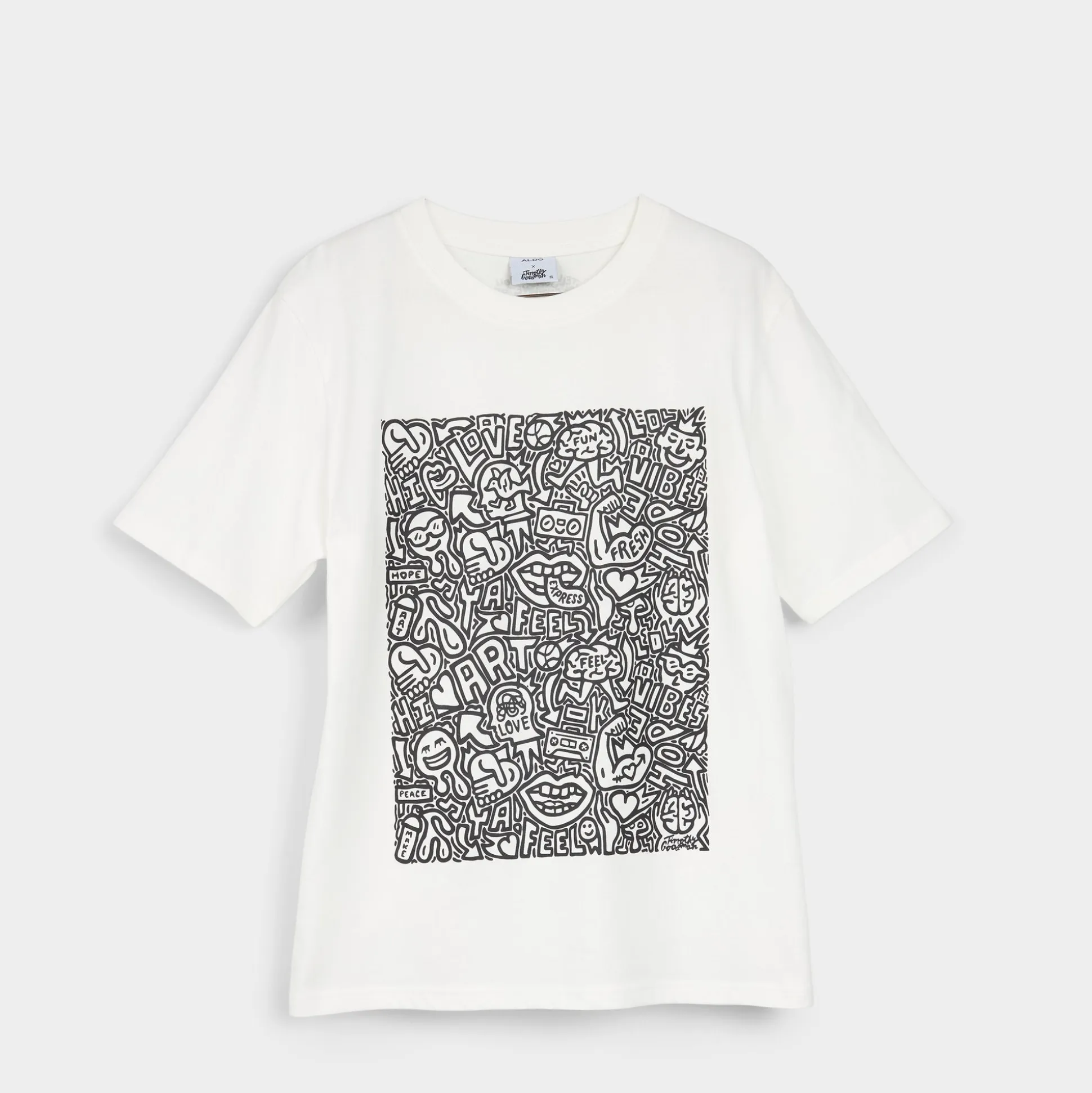 Front panels burst with doodled crowds on soft cotton tees, turning a simple staple into street-art that sparks conversation and invites movement as you throw one on over shorts or wide-leg denim. Layer it with a blazer for gallery nights or throw it on with sneakers for coffee runs, all while staying comfy and effortless.