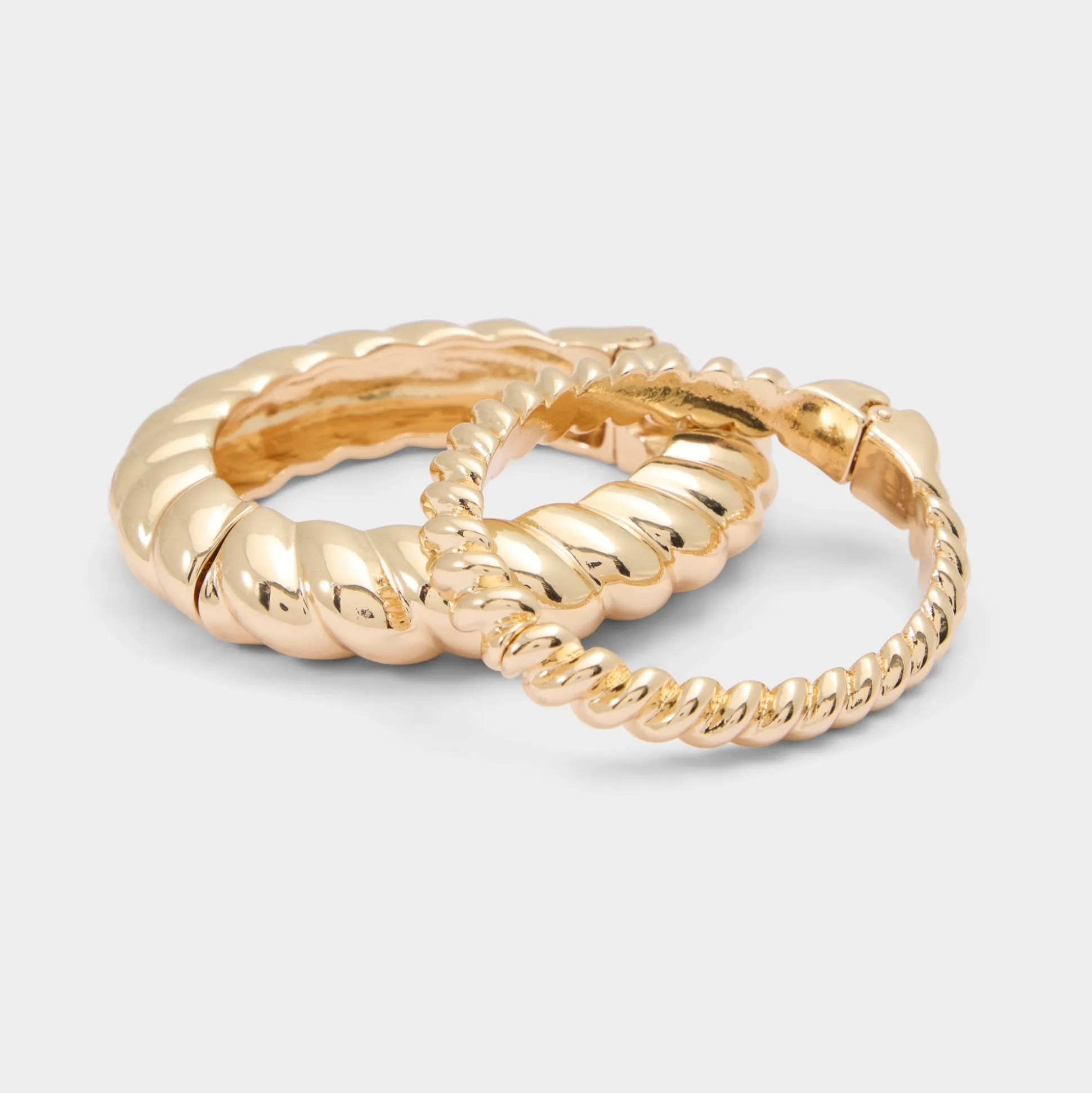 Twisted ridges wrap each gold-plated hoop, offering a choice between chunky statement and slender accent with clasps that keep the curve all day. Stack them with chains for drinks on a rooftop or let a hoop sharpen a blazer on presentation mornings.