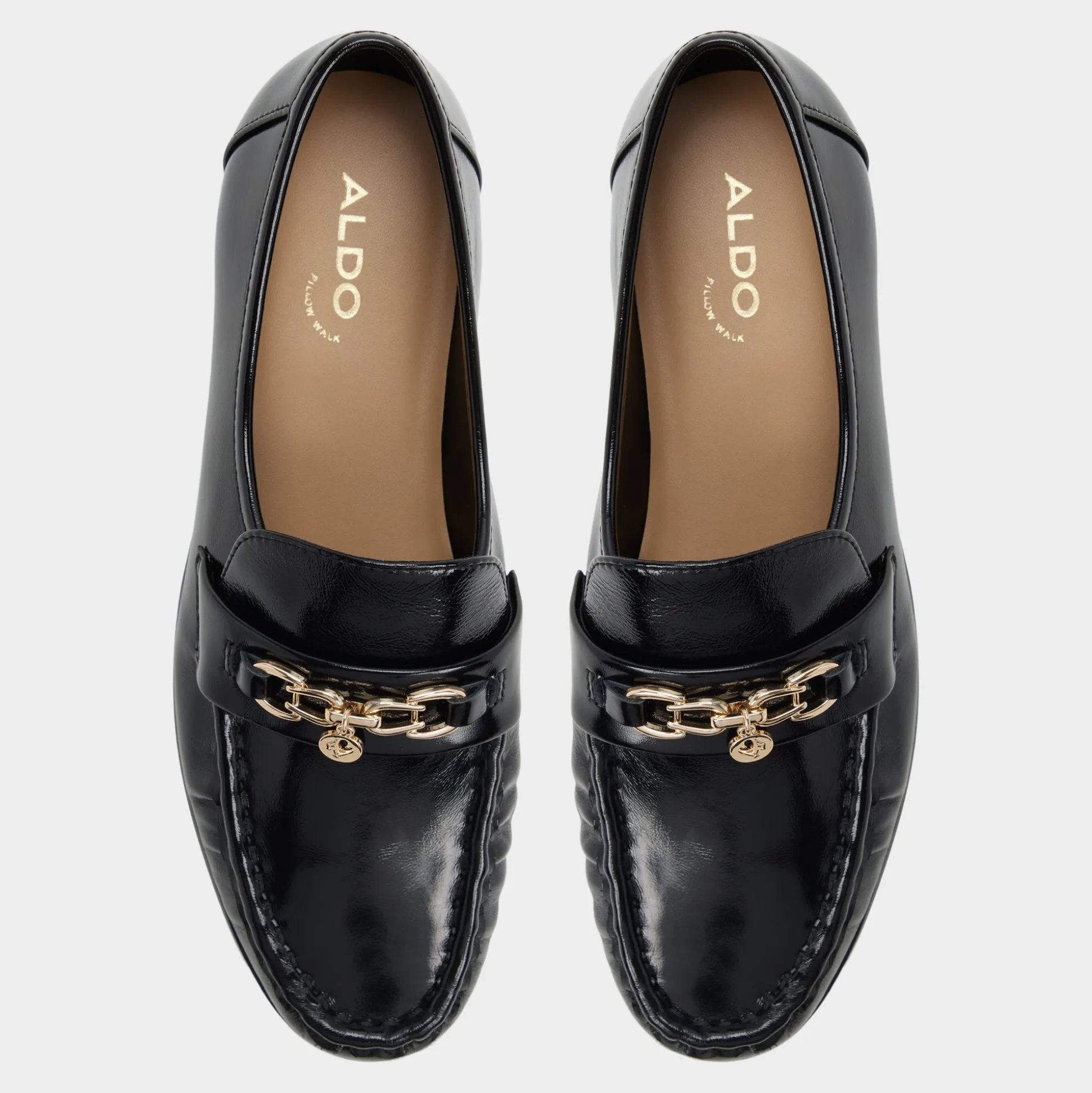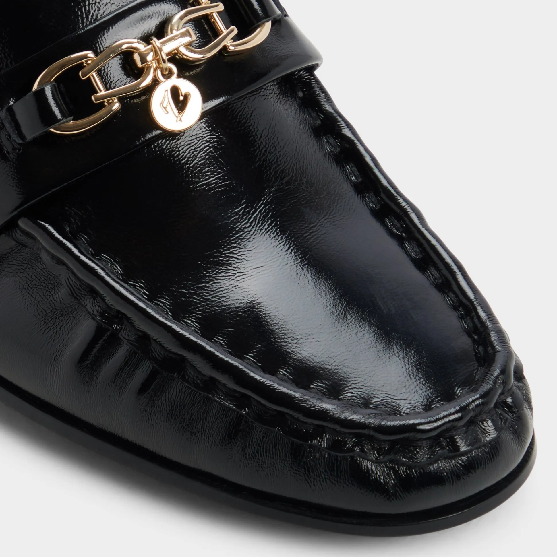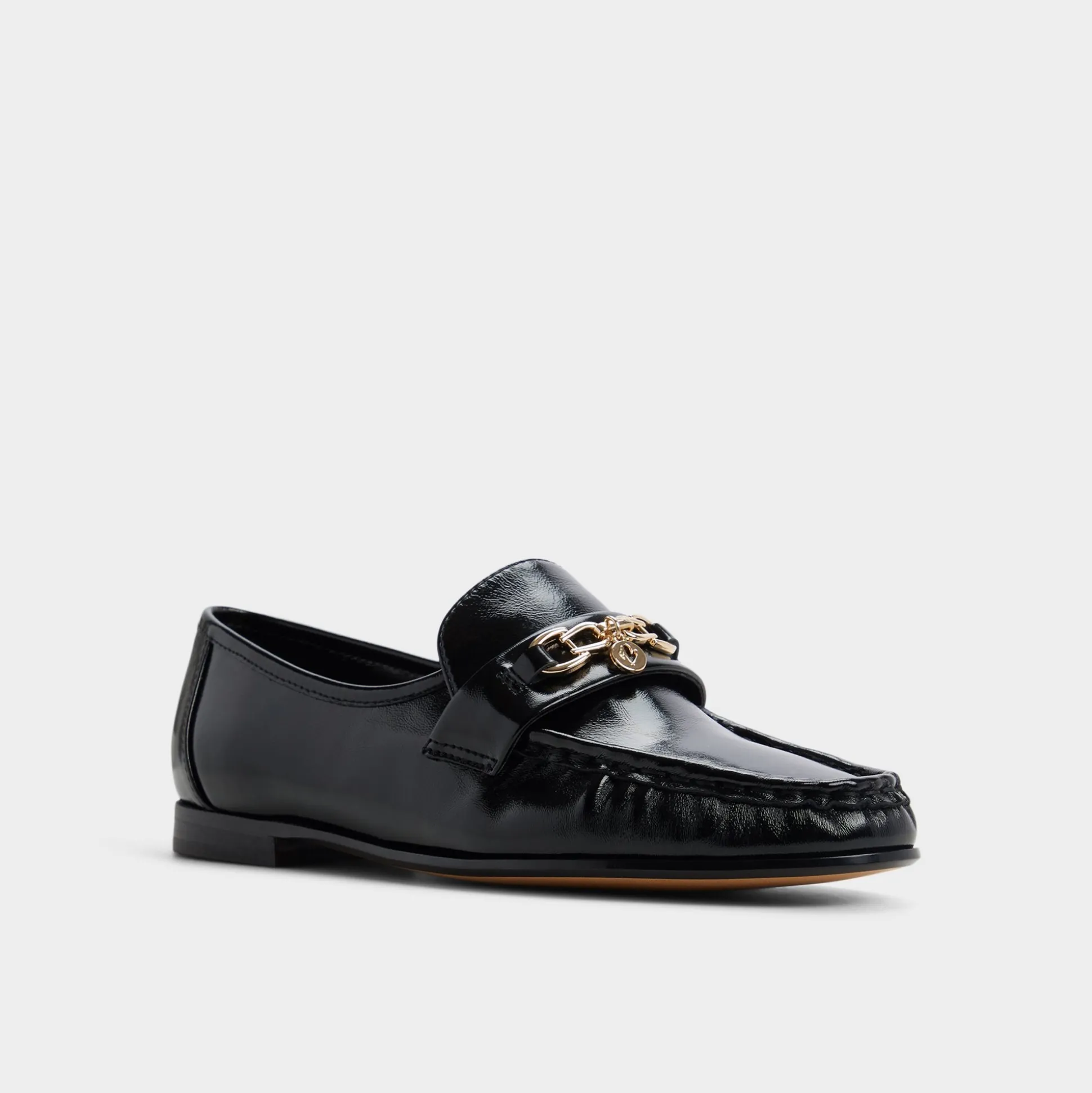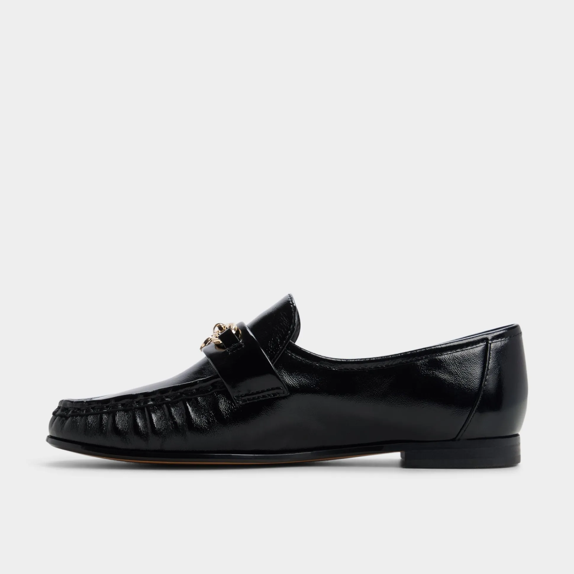 Mirror-gloss patent leather turns these loafers into quiet power moves, with gleaming gold buckles skimming the vamps for a subtle glow that keeps morning meetings feeling pulled-together and polished, ready for the day’s schedule. Pair with tailored trousers for boardroom confidence, or swap in denim for a gallery stroll that leads to candlelit noodles.